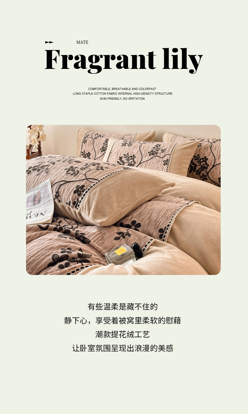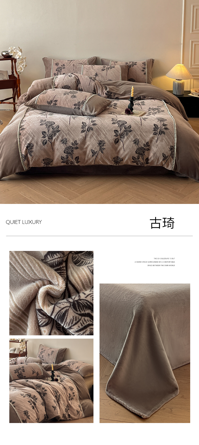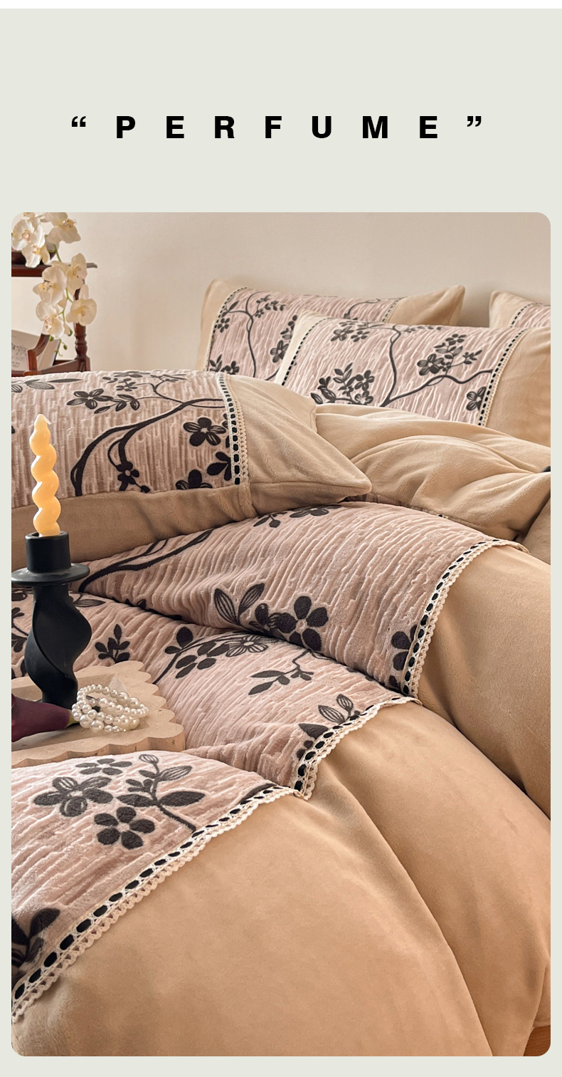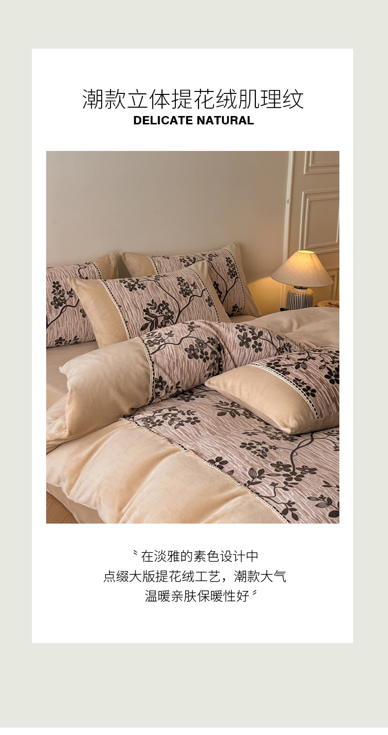 商品名称:慕晨 2025新款立体提花绒工艺款美拉德风格高克重雕花加厚牛奶绒四件套 古琦