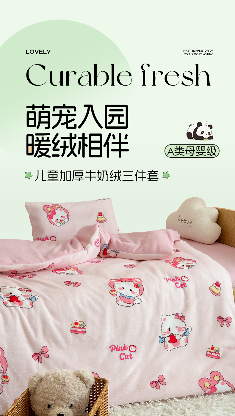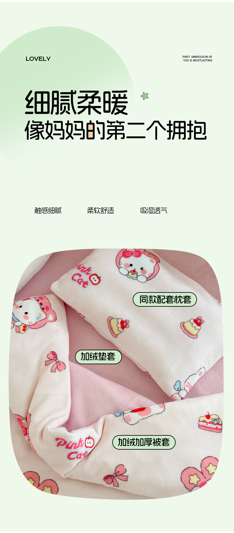 当前位置: 91家纺网 > 商品网购 > 床品套件 > 三件套 > 嗨生活 2025新款加厚牛奶绒三件套儿童套件幼儿园三件套系列 萌萌小猫