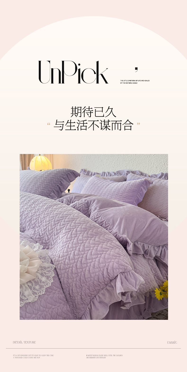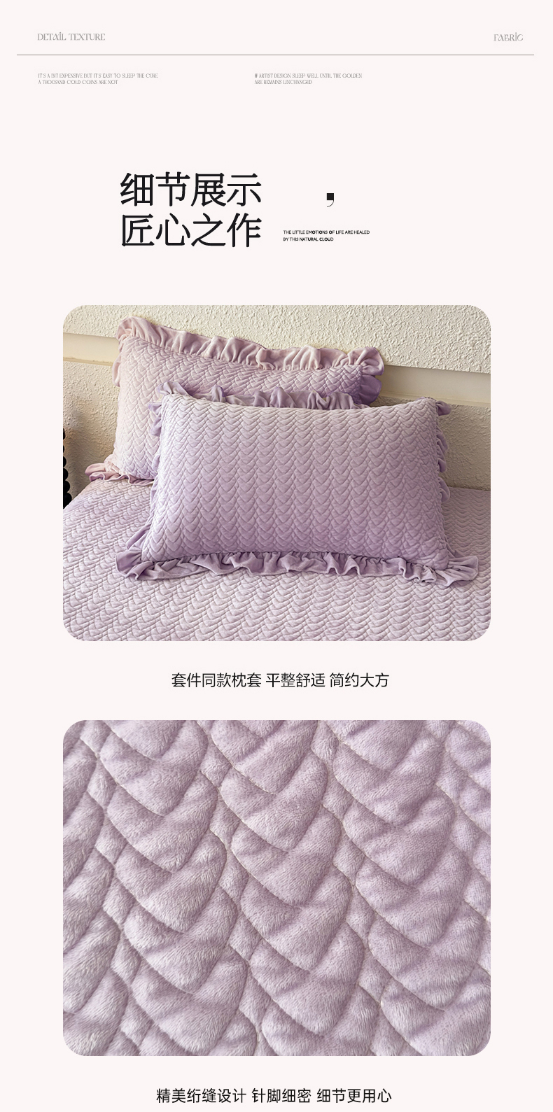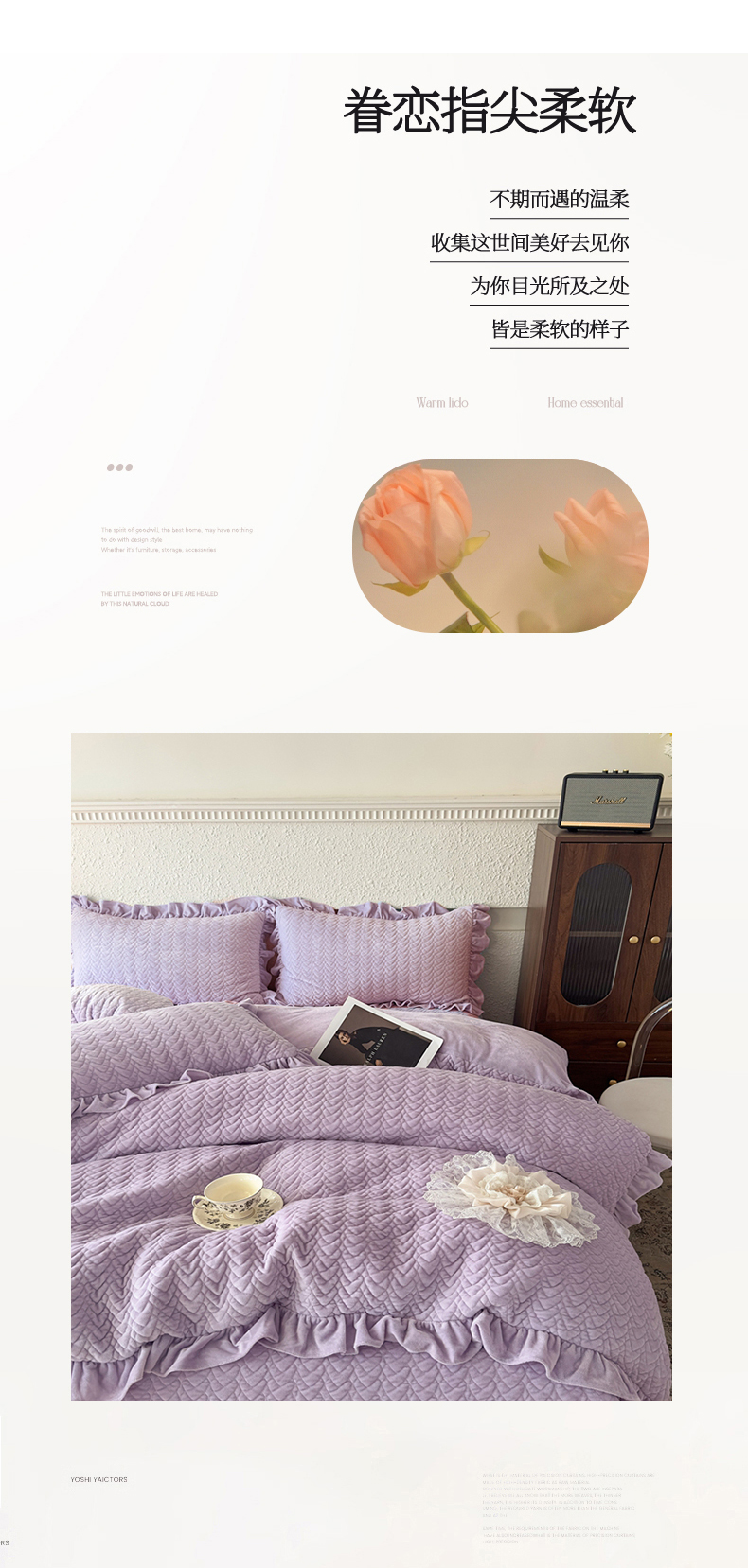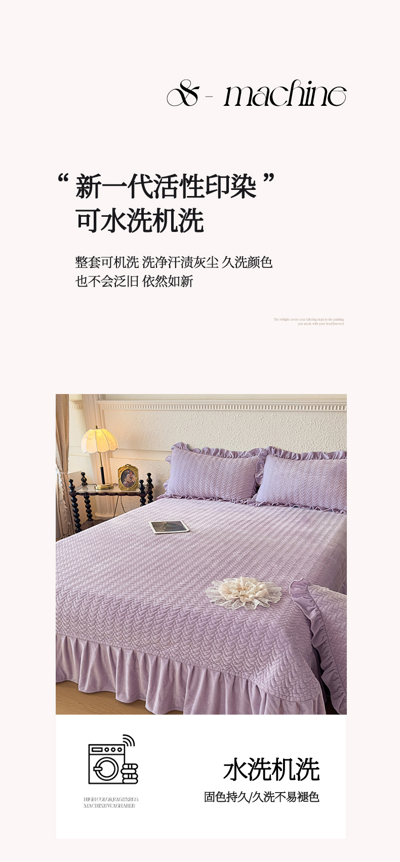 商品名称:乐嘉盈2025年新款纯色刺绣床裙款牛奶绒四件套-云栖 云栖-紫