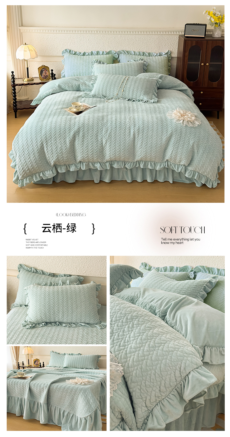 (总)乐嘉盈2025年新款纯色刺绣床裙款牛奶绒四件套-云栖,云栖-豆沙,云栖-粉,云栖-蓝,云栖-绿,云栖-米白,云栖-紫