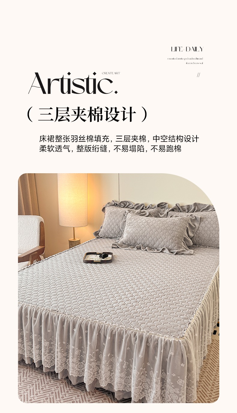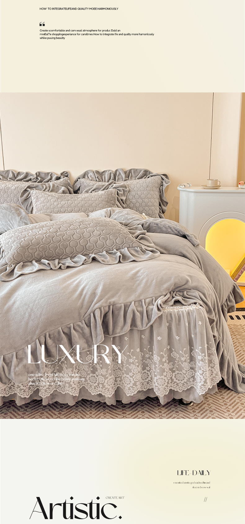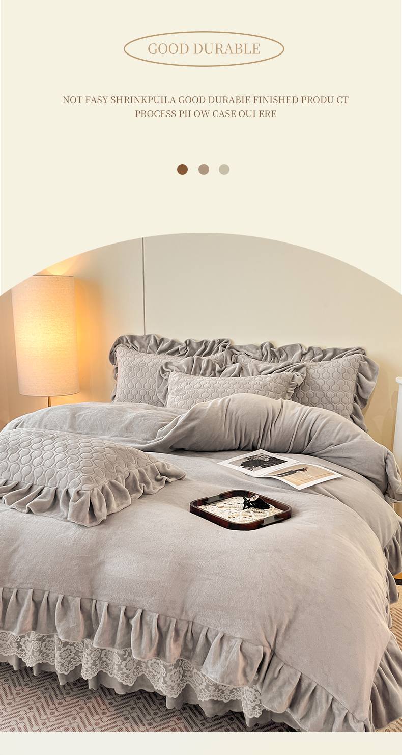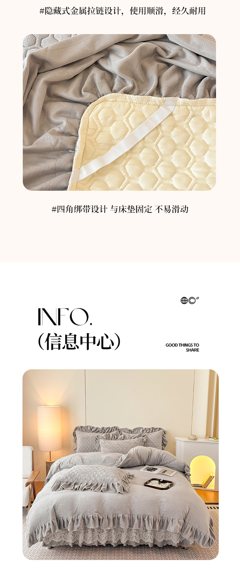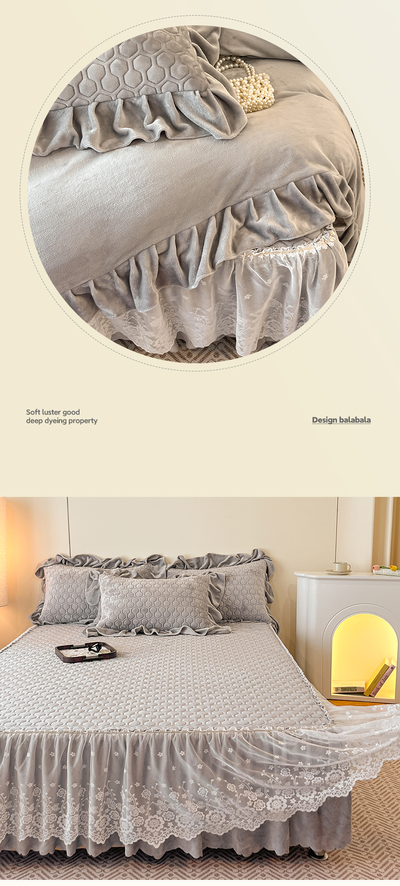 当前位置: 91家纺网 > 商品网购 > 床品套件 > 四件套 > 牛奶绒四件套 > 民新家纺 2025新款牛奶绒花边床裙四件套 浪漫时光-灰