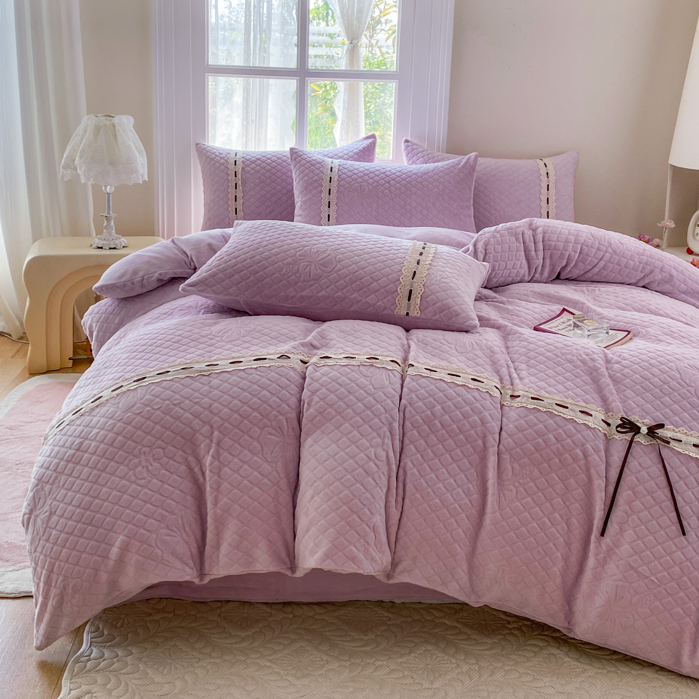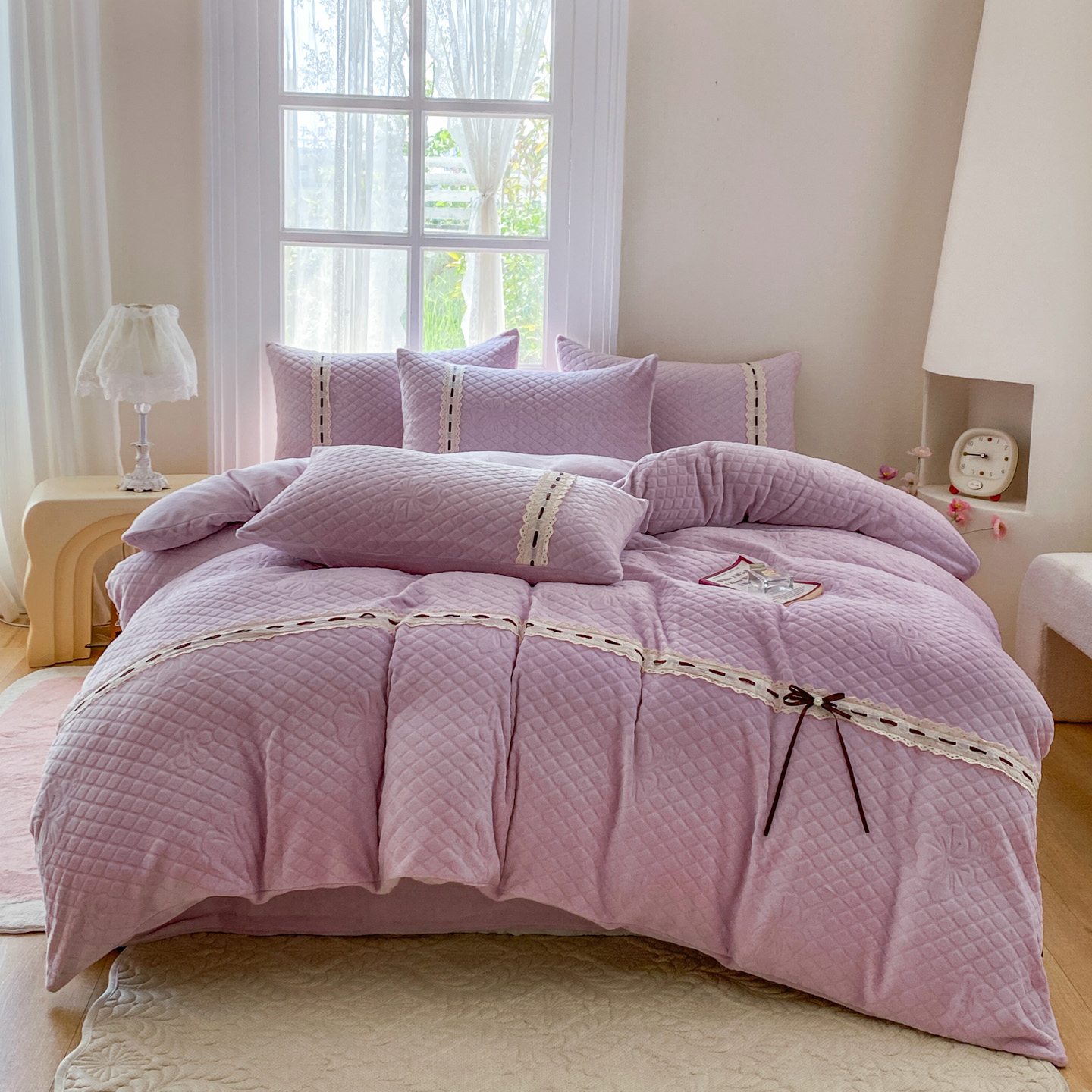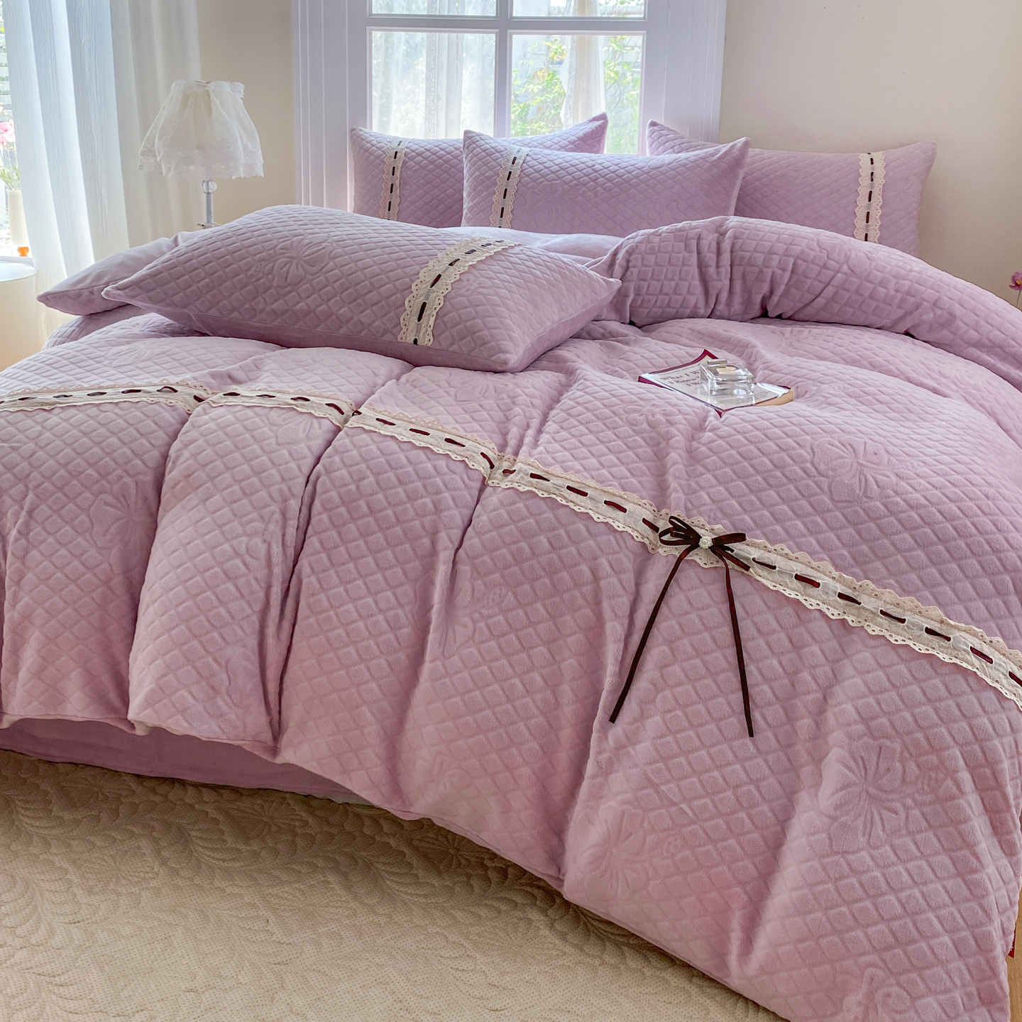 乐嘉盈 2025年新款雕花法式蝴蝶结牛奶绒四件套 蝴蝶结-紫