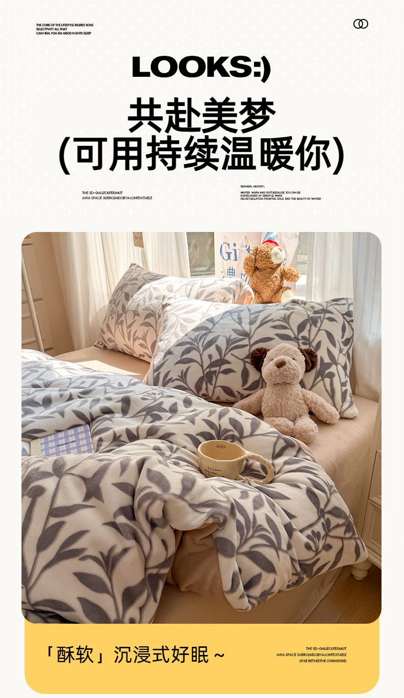 当前位置: 91家纺网 > 商品网购 > 床品套件 > 四件套 > 牛奶绒四件套 > 艾特你 2025新款全工艺200克牛奶绒四件套 花间集