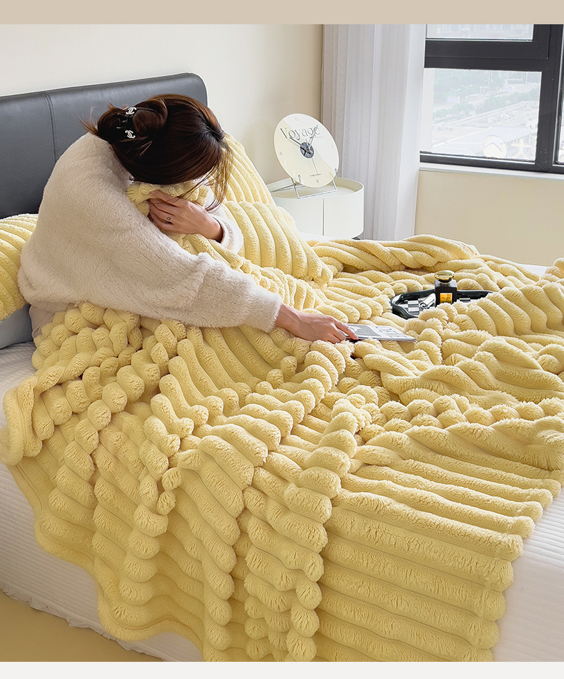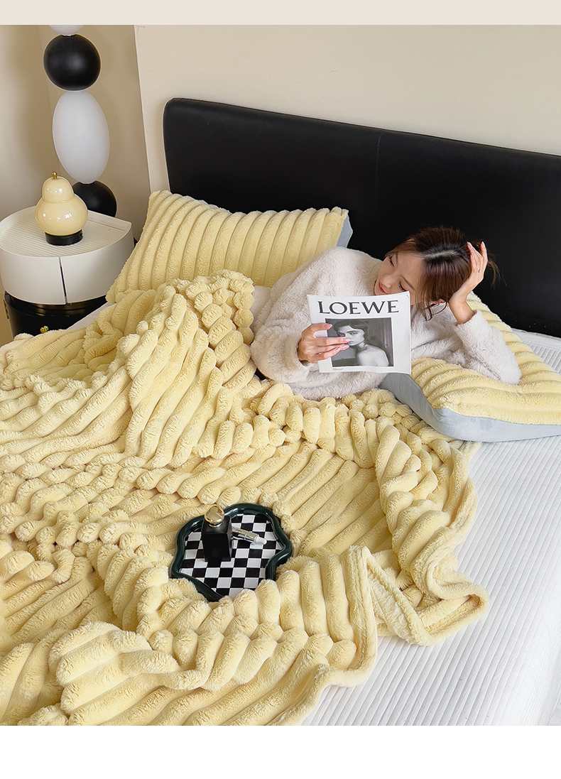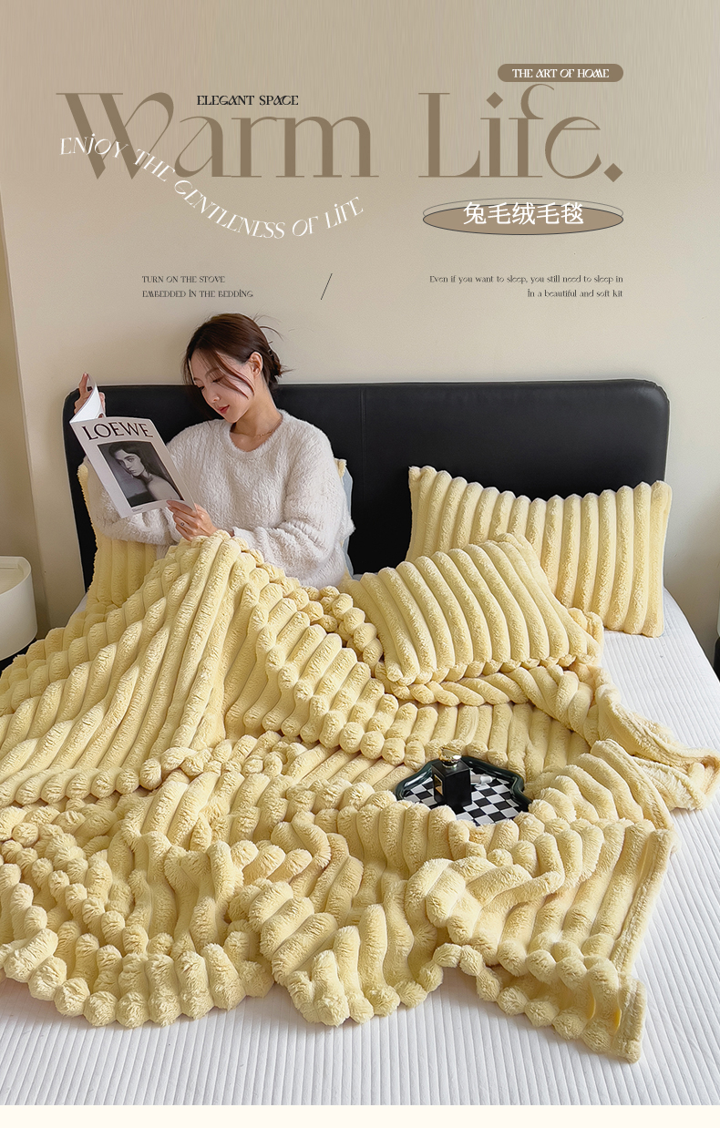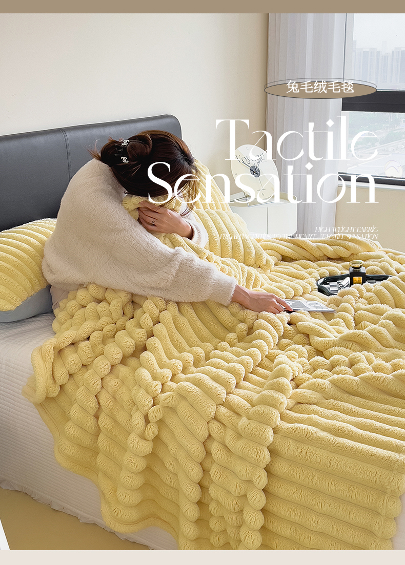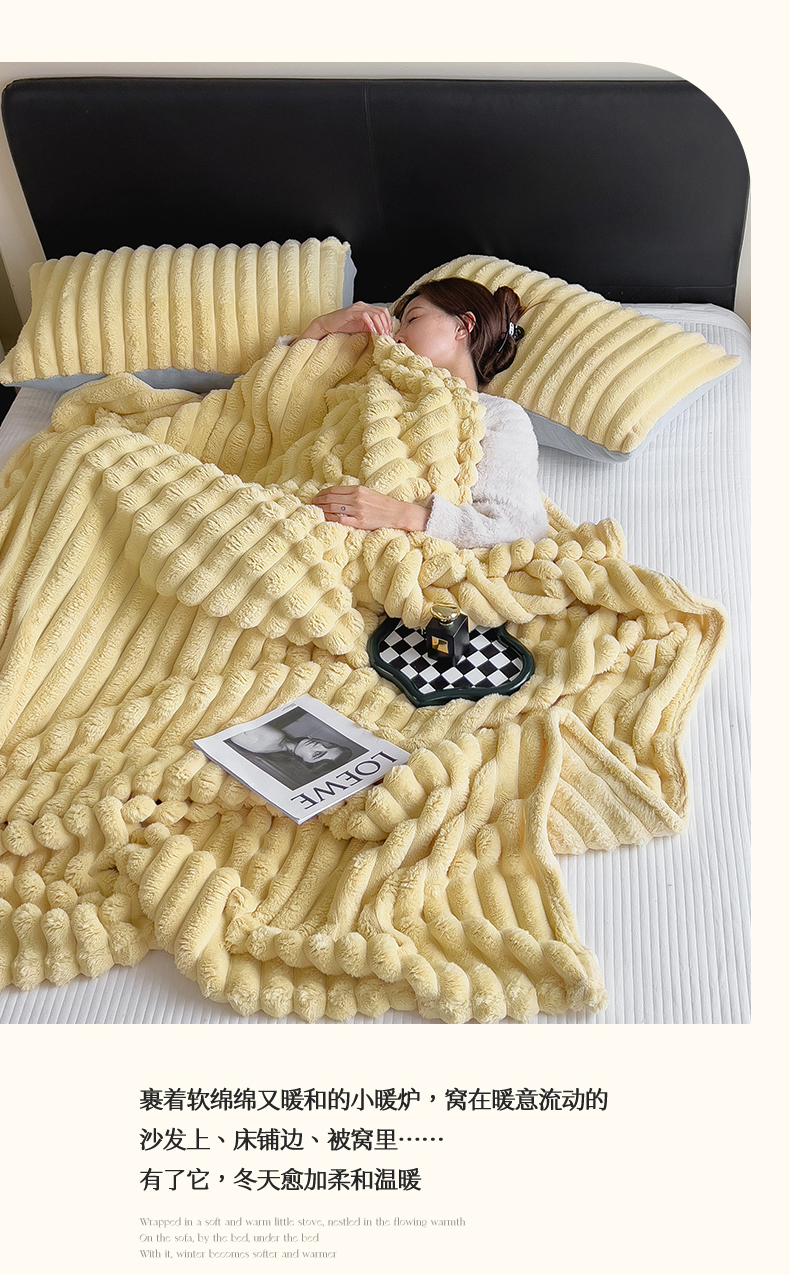 商品名称:亚龙工厂店 2025新款时尚活性抗静电兔绒毛毯毯子 兔毛奶黄