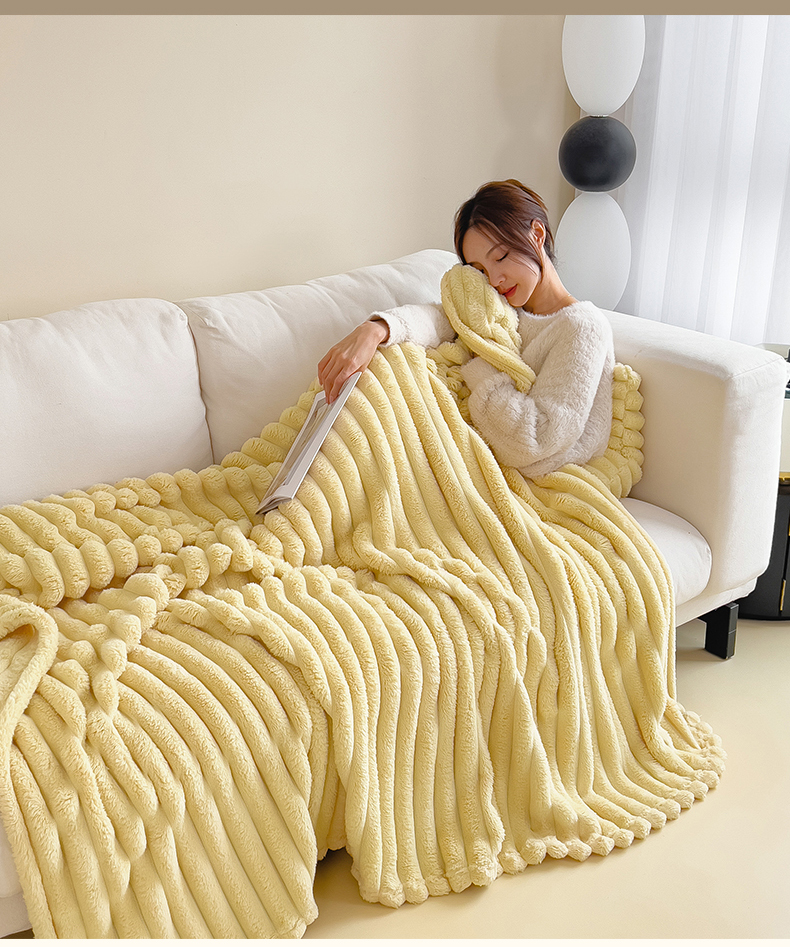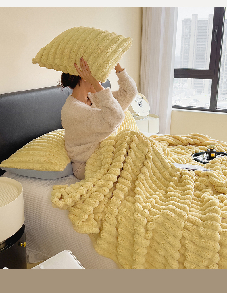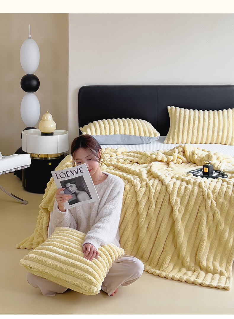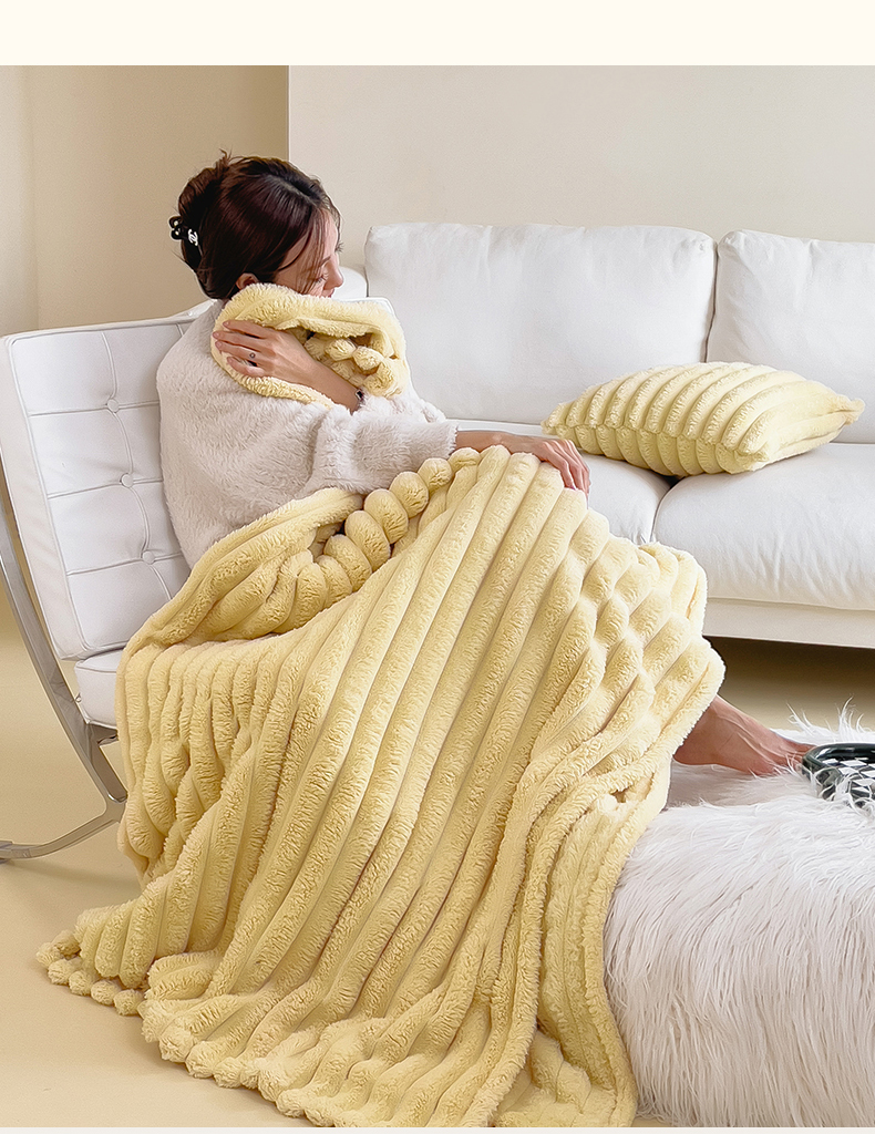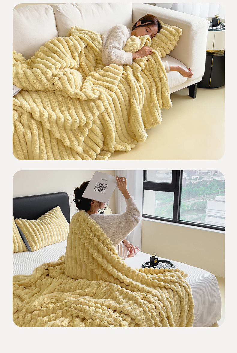 商品名称:亚龙工厂店 2025新款时尚活性抗静电兔绒毛毯毯子 兔毛奶黄