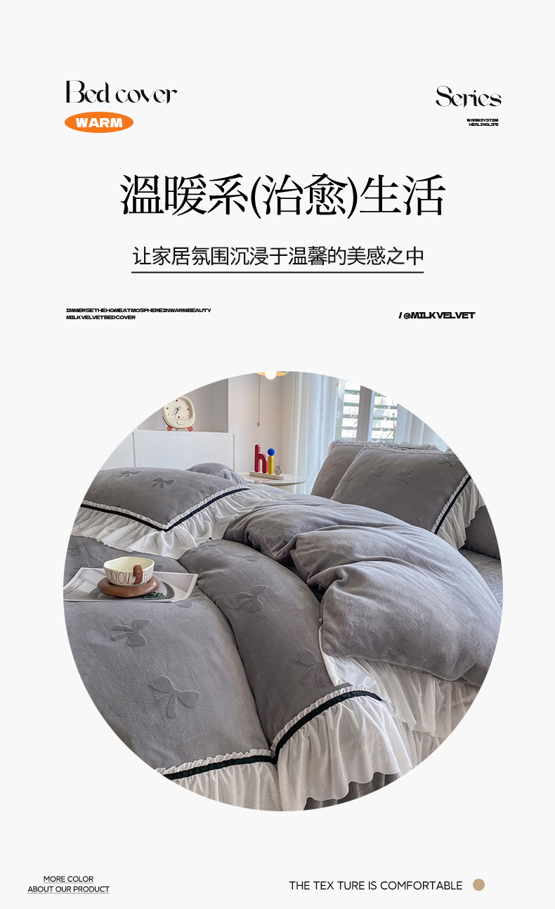 (总)青竹苑 2025新款雕花牛奶绒夹棉床盖款四件套,森野-幻紫,森野-暖白,森野-柔粉,森野-浅灰