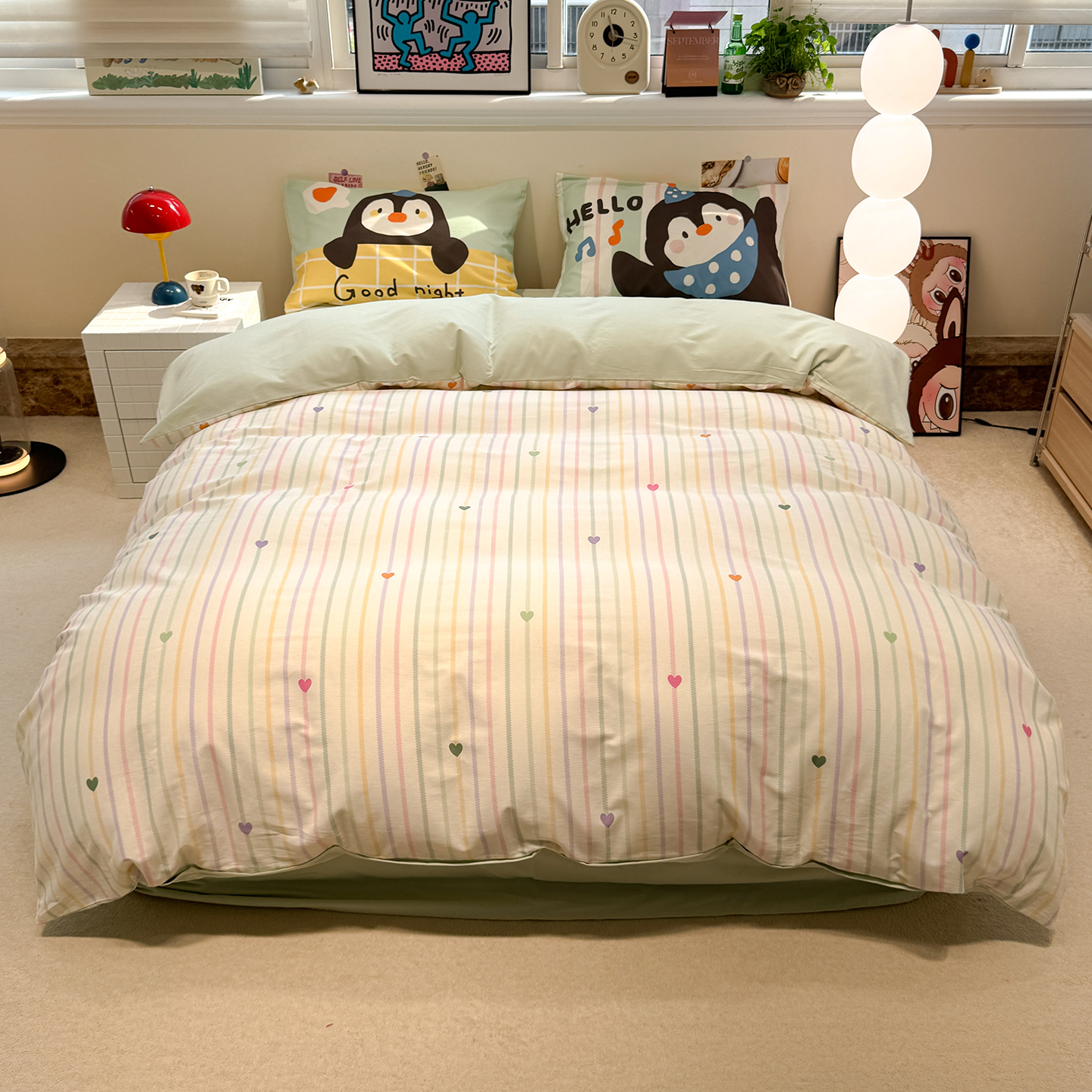 (总)2023新款40支纱全棉13070锁边工艺款四件套系列,格子爱心,嘉兰,咖条,朗尼,小兔兔,星星兔