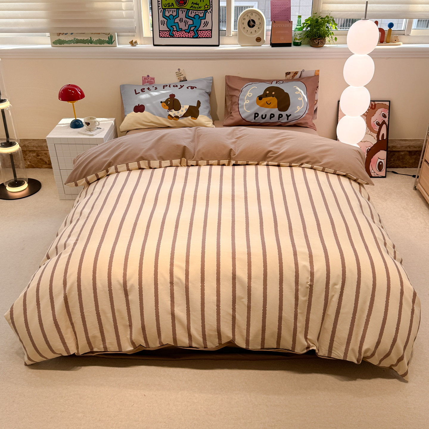 (总)珺柔家纺 2025新款全棉双层纱印花四件套,粉豹纹,焦糖小曲奇,礼物女孩,猫狗日记,奶油星空,线条苹果猫,小飞象,小狗的家,樱桃,樱桃西高地