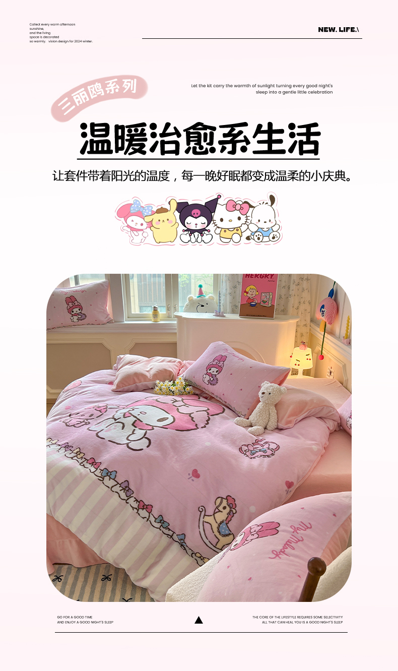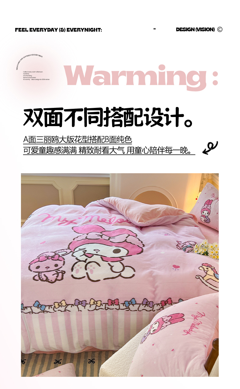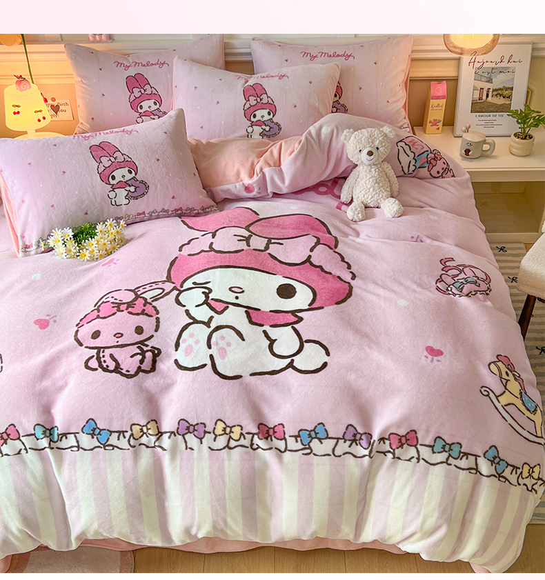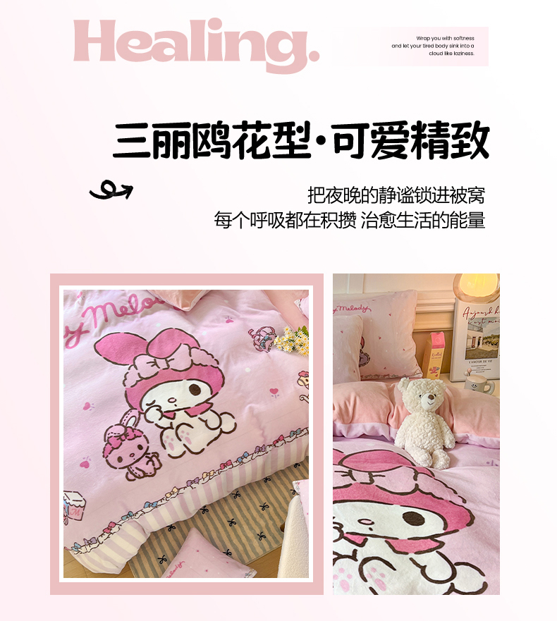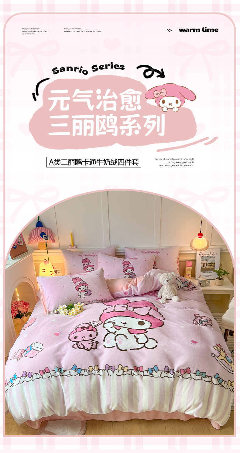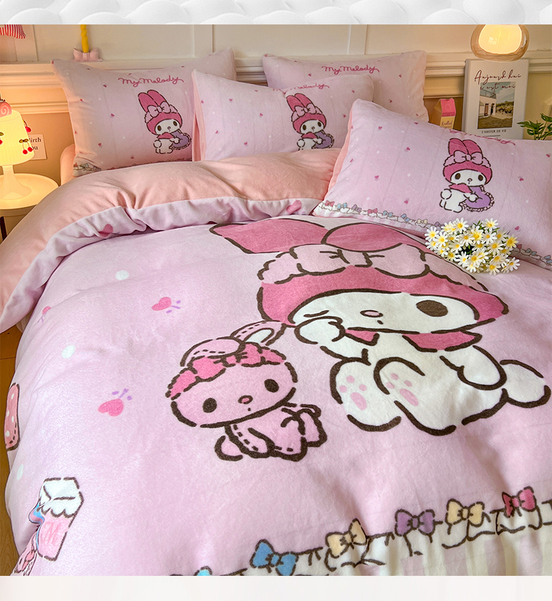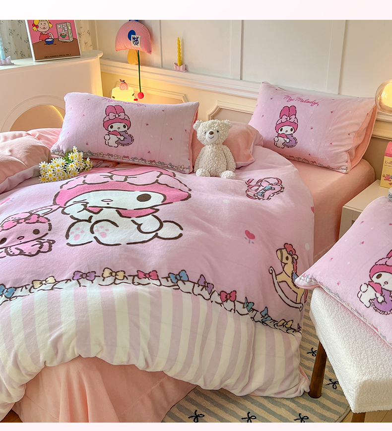 当前位置: 91家纺网 > 商品网购 > 床品套件 > 四件套 > 牛奶绒四件套 > 妖妖家纺 2025新款高克重牛奶绒三丽鸥大版四件套 兔兔与美乐蒂
