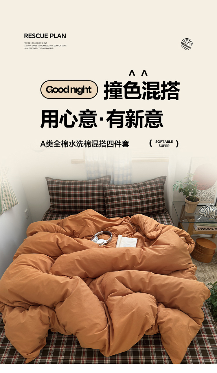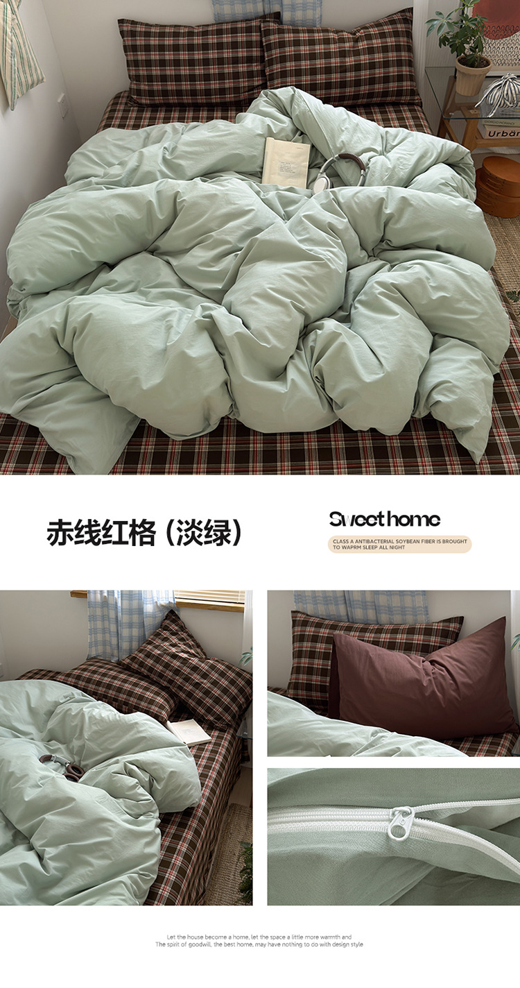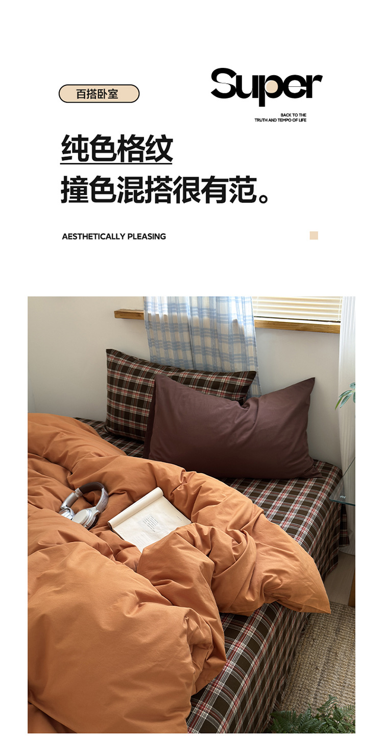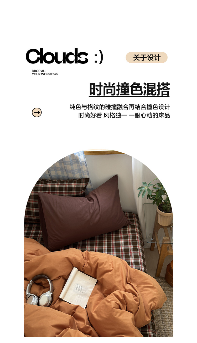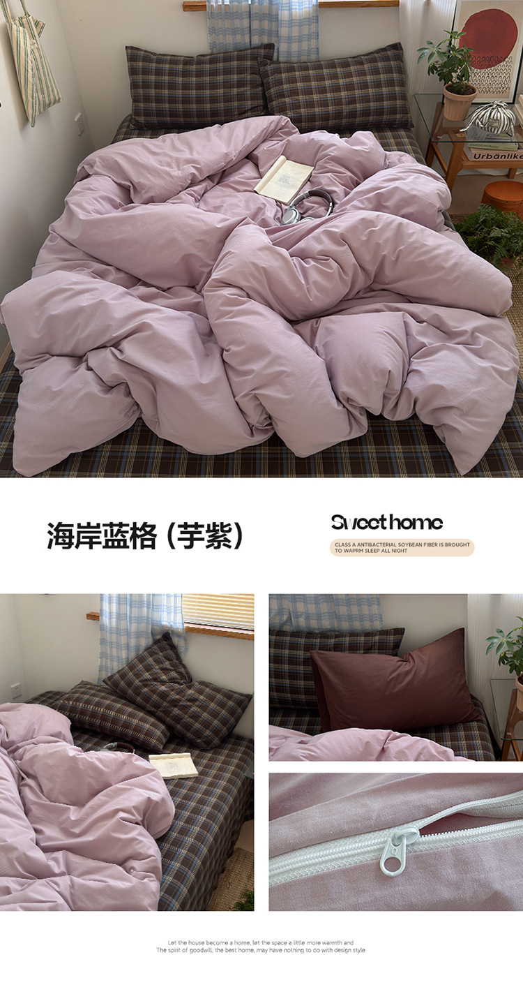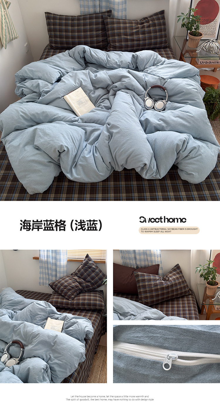当前位置: 91家纺网 > 商品网购 > 床品套件 > 四件套 > 水洗棉四件套 > 良品汇馆 2025【水洗棉混搭格子四件套】混搭纯色格子学生民宿床品套件格纹 海岸蓝格(浅蓝配格子枕套)