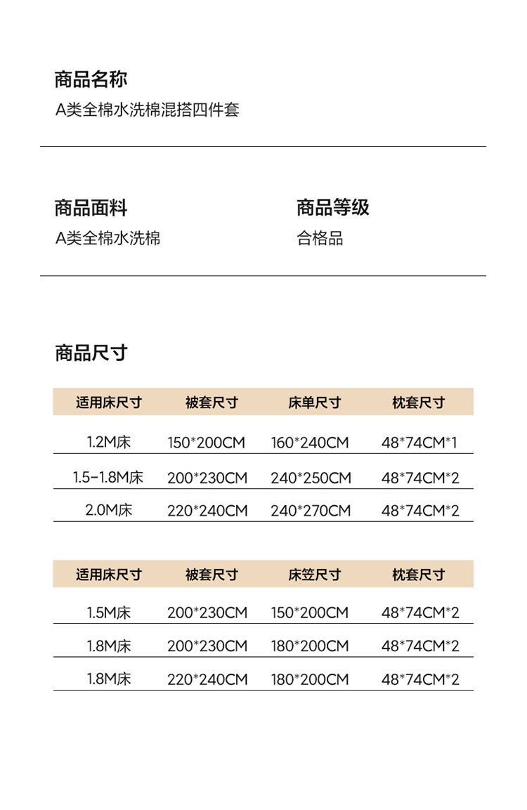 1.8m床笠款四件套 | ¥155.00 |