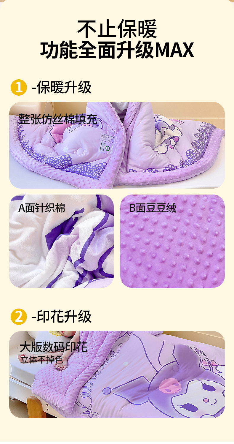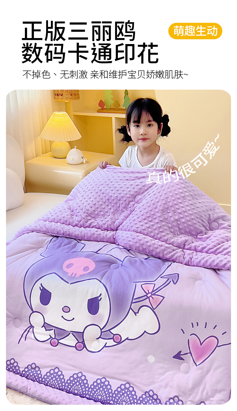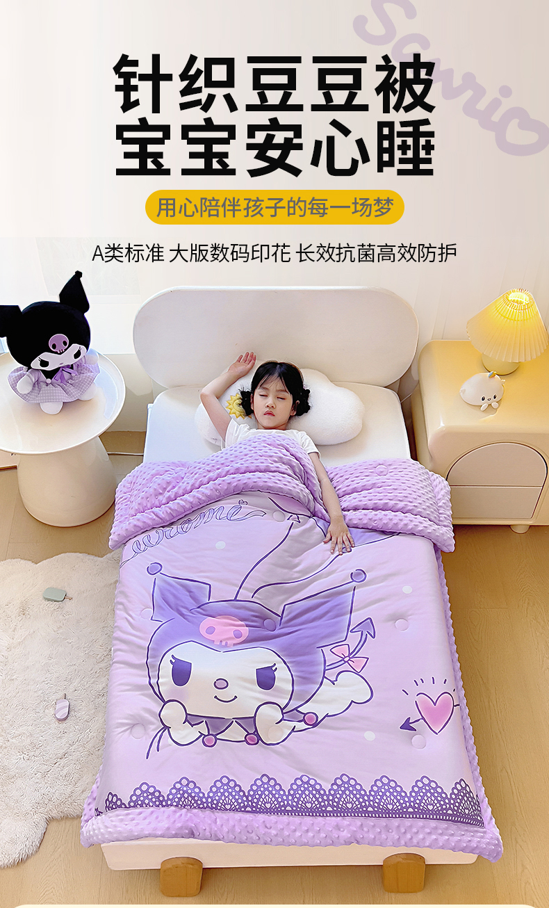 (总)吉咪兔家纺 2025新款大版三丽鸥库洛米儿童豆豆被针织棉幼儿园宝宝午睡春秋四季婴儿被子被芯,草莓美乐蒂,蛋糕库洛米,汉堡玉桂狗,花花美乐蒂,奶茶美乐蒂,气球库洛米,梳妆库洛米,云朵玉桂狗