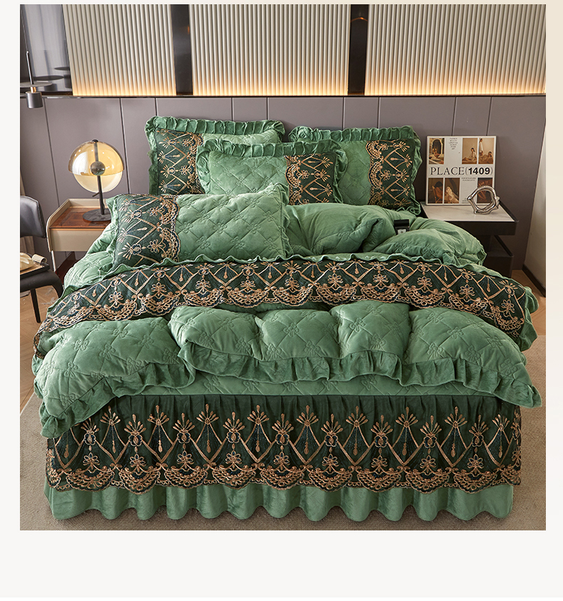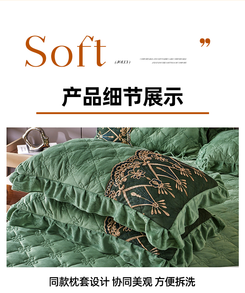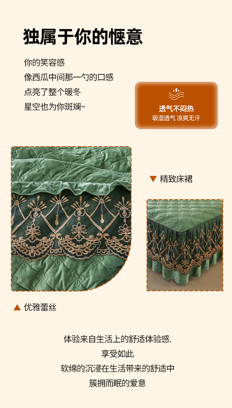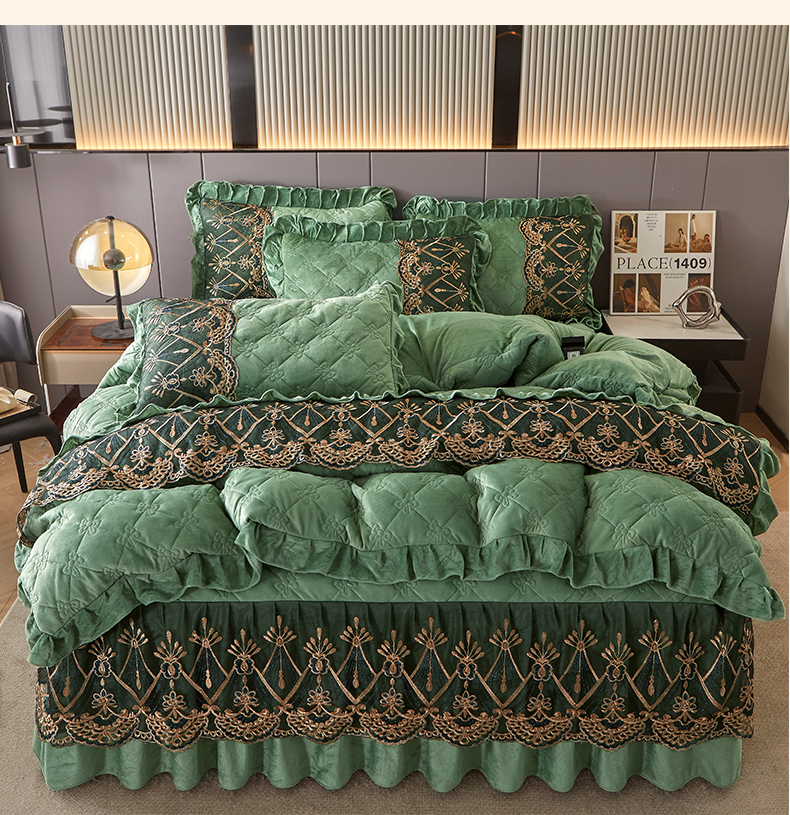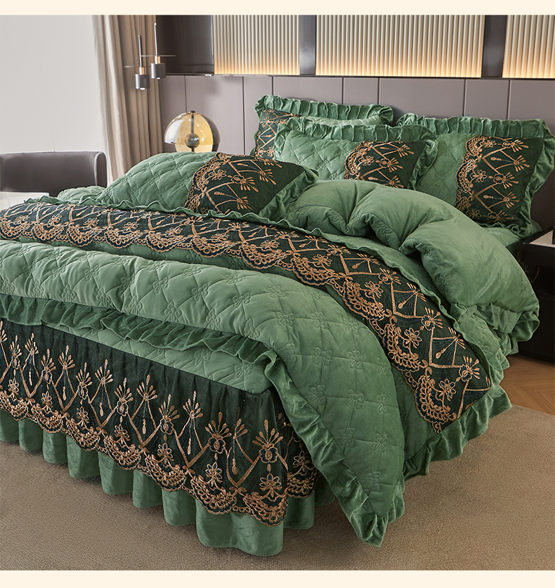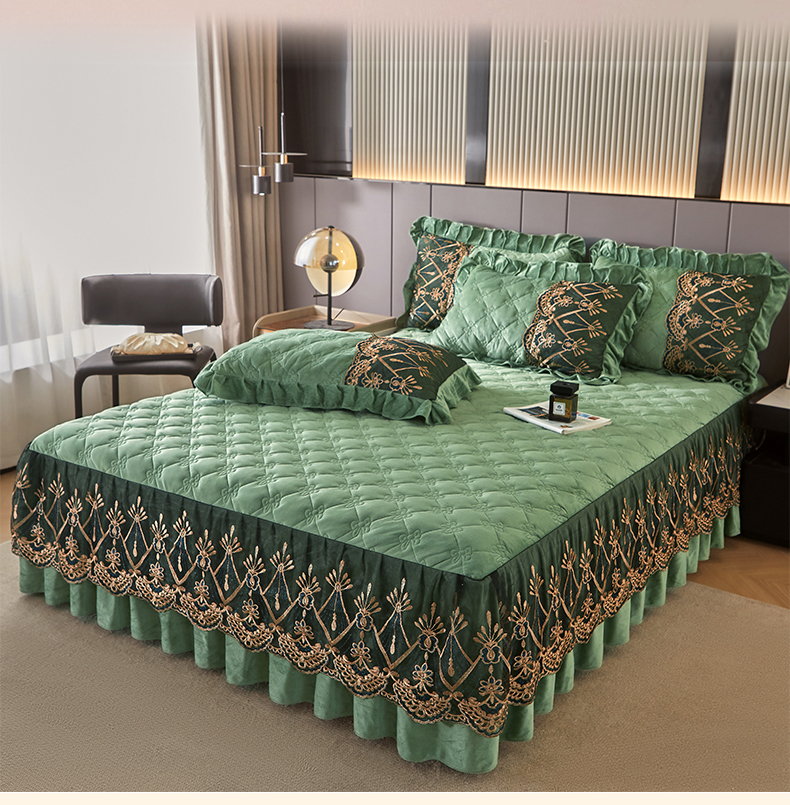 当前位置: 91家纺网 > 商品网购 > 床品套件 > 四件套 > 水晶绒四件套 > 屹成家纺2025新款水晶绒夹棉绗缝床裙四件套(塞纳河畔)四件套起售价不低于230元 橄榄绿