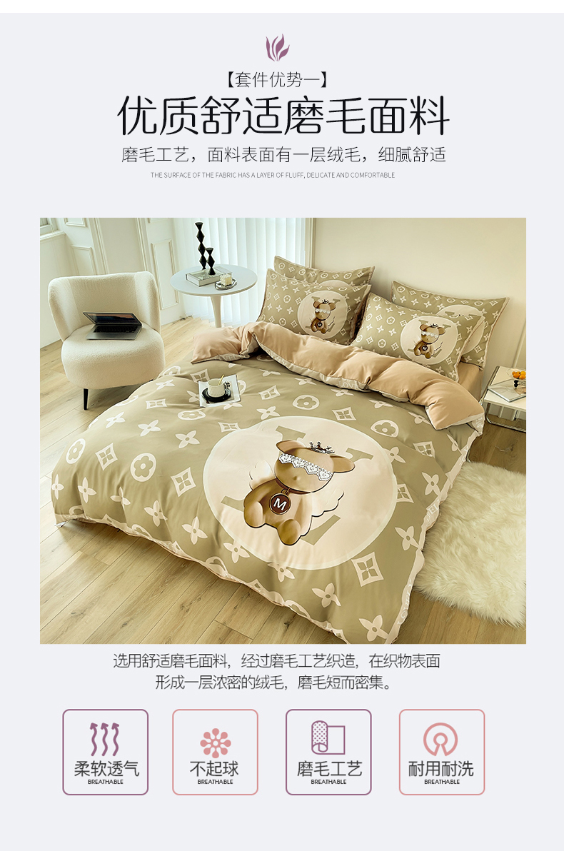 (总)色鬼布艺高端家居主号 2025秋冬新款网红款水洗棉四季款四件套,豹纹熊-粉,豹纹熊-绿,彩虹兔,格子熊,公仔蓝,梦幻粉,梦幻蓝,棋盘格公仔,太阳花粉,天使熊-粉,天使熊-咖,小熊头,熊头白,熊头橙,熊头咖,熊仔白