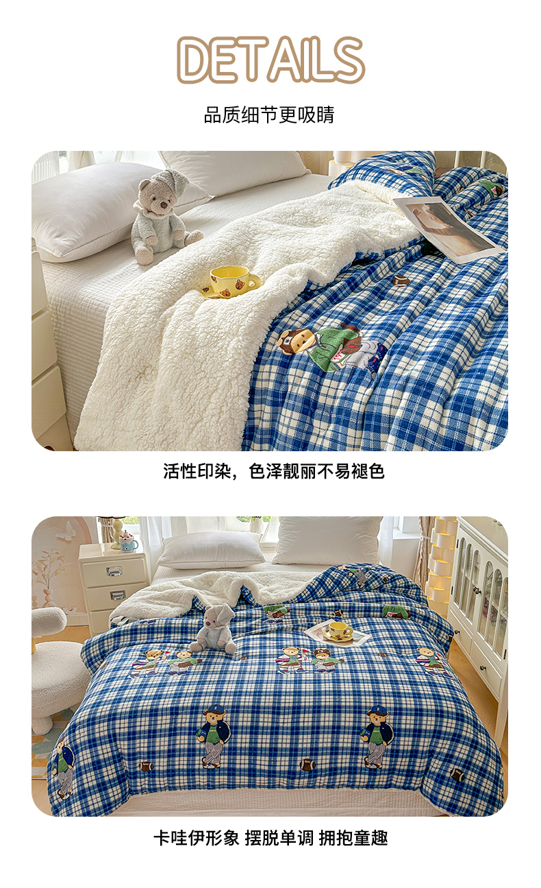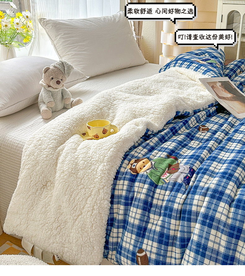 商品名称:爱彼家纺 2025新款日韩奶油风羊羔绒+牛奶绒可爱卡通被子被芯秋被冬被被子被芯 浅蓝甜点小狗