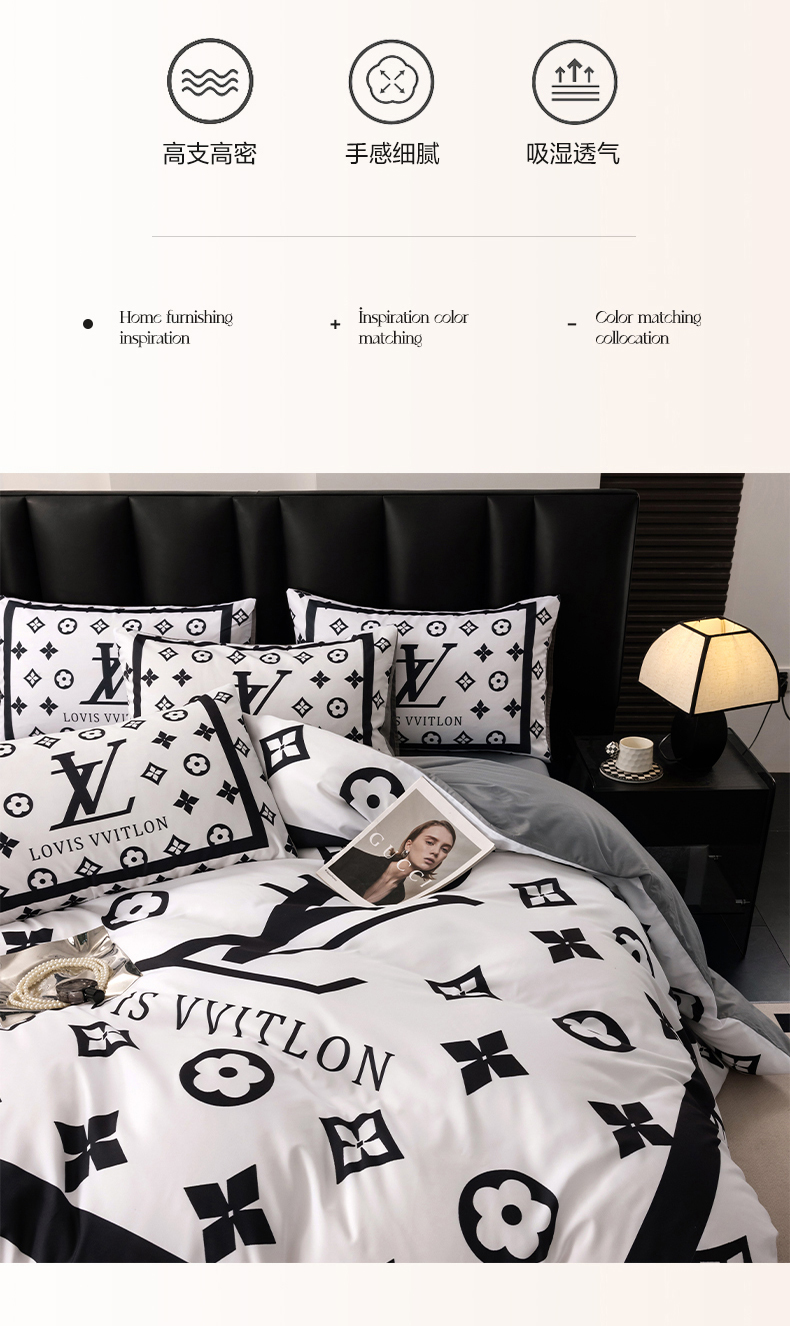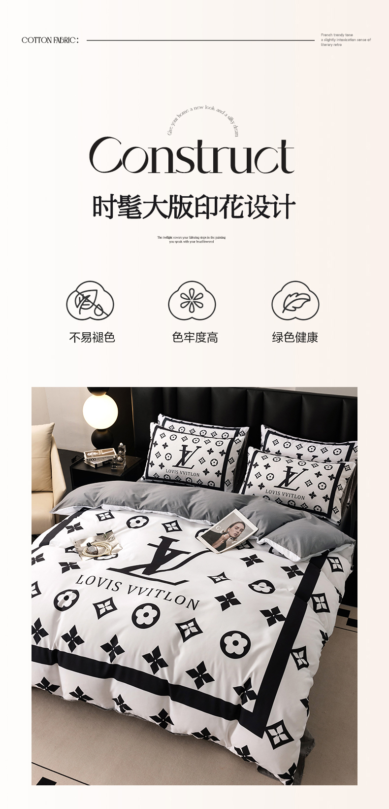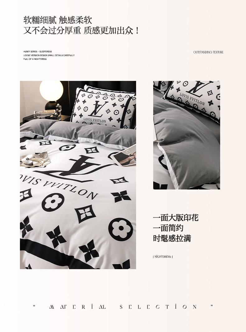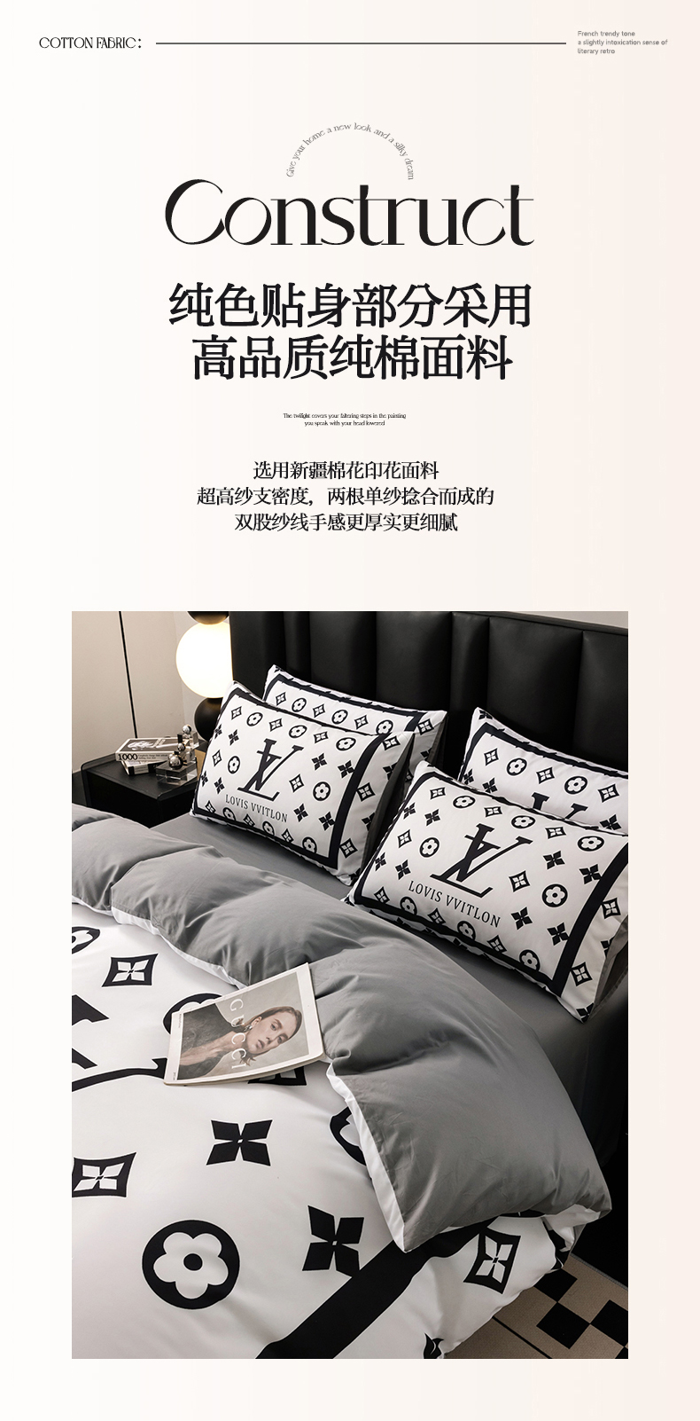 (总)色鬼布艺高端家居主号 2025新款轻奢亲肤纯棉数码印花网红热款四件套,豹纹香,白金V,白香花,大H,黑白迪,黑白V,灰迪,咖古,克莱因,慕斯小姐,山茶花,星空