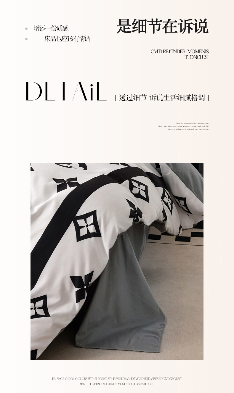商品名称:色鬼布艺高端家居主号 2025新款轻奢亲肤纯棉数码印花网红热款四件套 黑白V