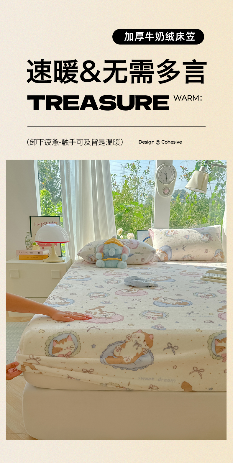 商品名称:(总)沐芷 2025 加厚高克重牛奶绒床笠单件/床笠三件套 床笠款床罩床垫保护套罩