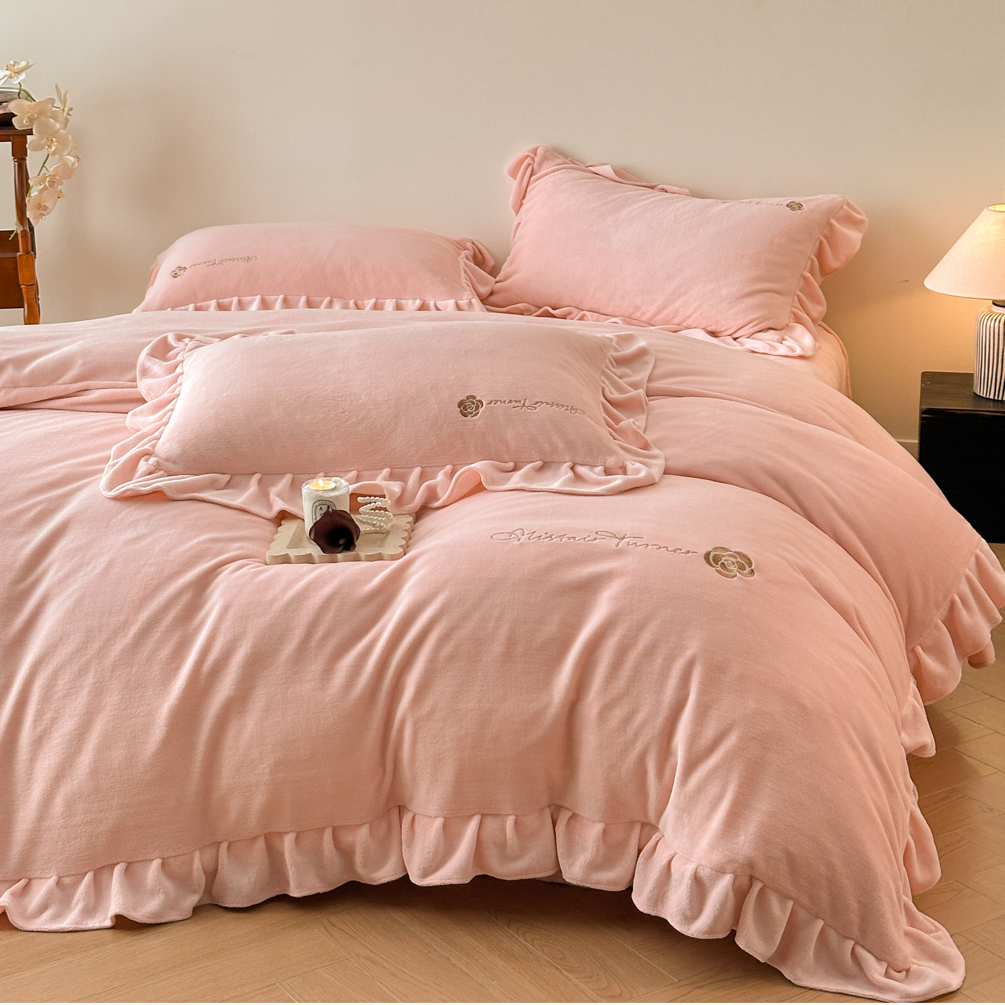 商品名称:花满路 2025新款亲肤舒适绒四件套-山茶花系列 山茶花-紫