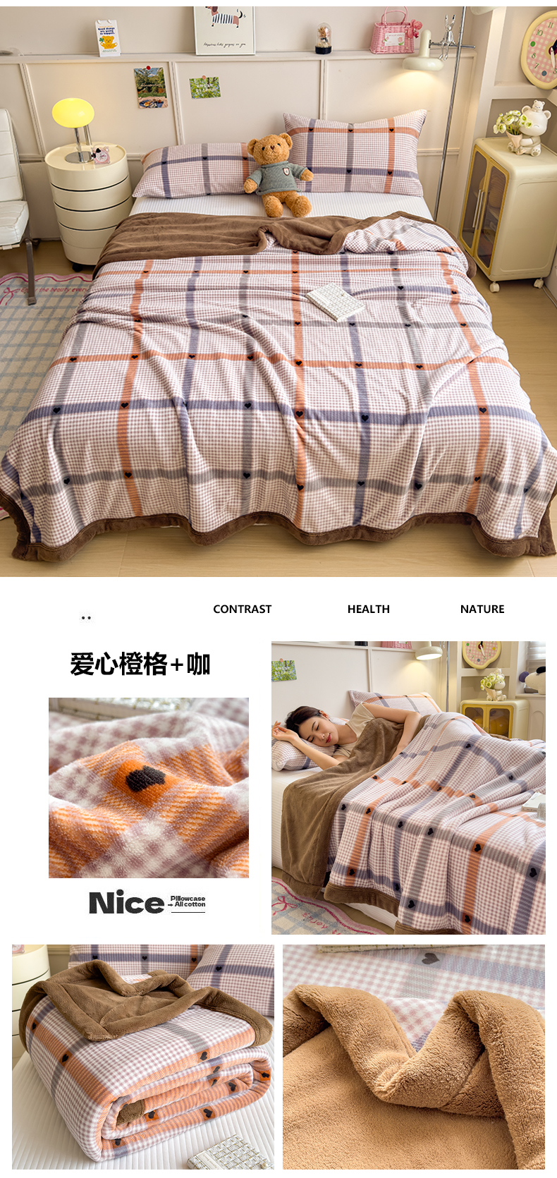 当前位置: 91家纺网 > 商品网购 > 毛毯休闲毯绒毯 > 毛毯 > 慕木家纺 2025新款高克重印花牛奶绒云锦绒双层毛毯毛毯毯子(可供跨境提供买家秀) 双层毛毯-爱心橙格+咖