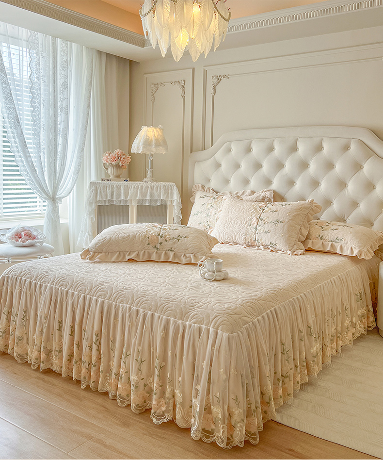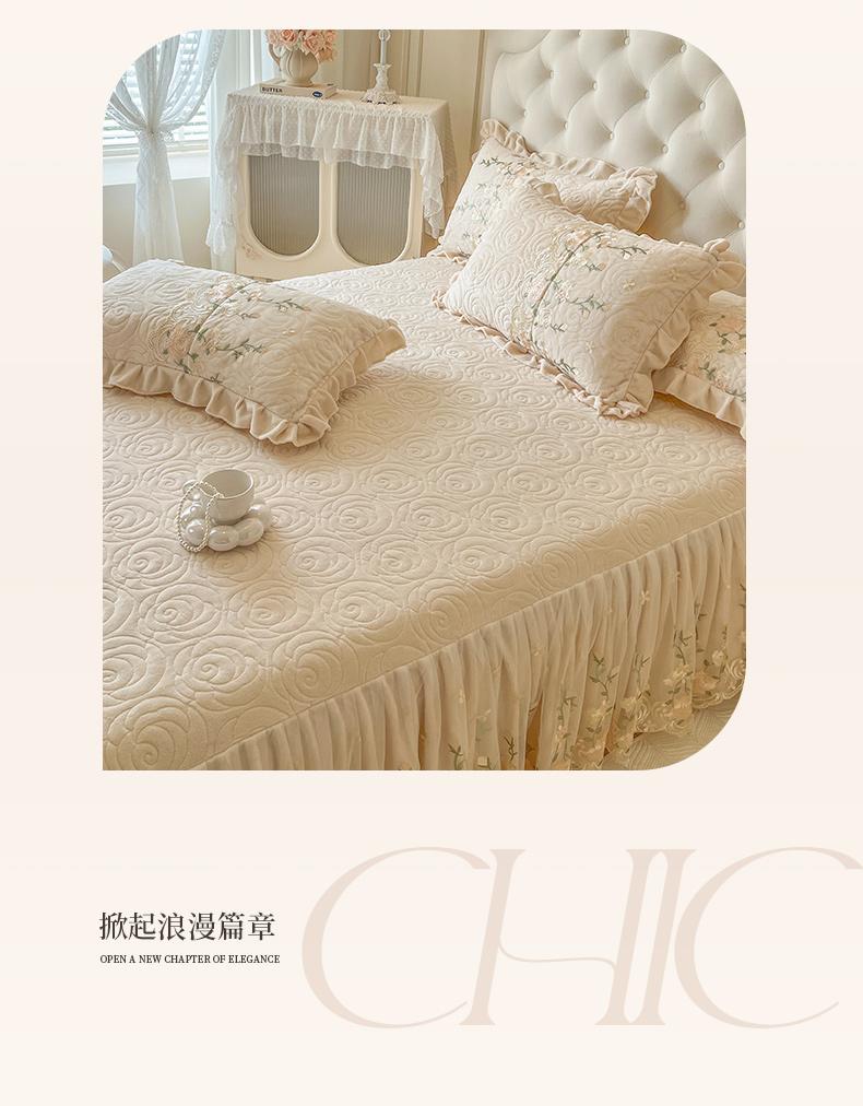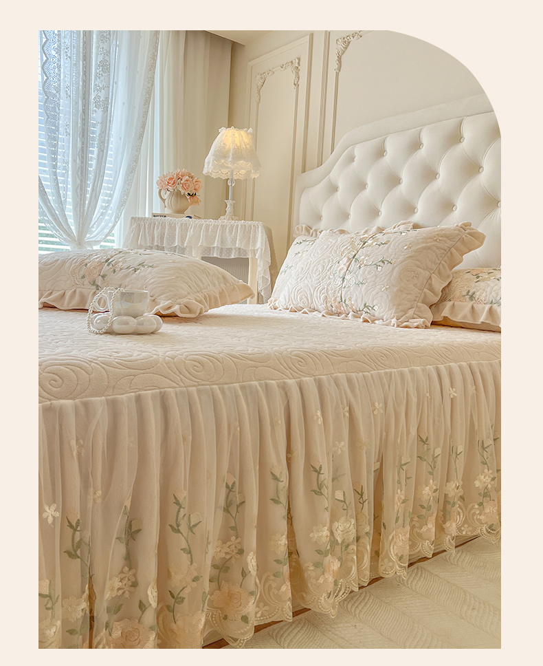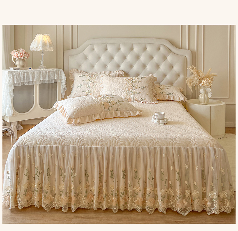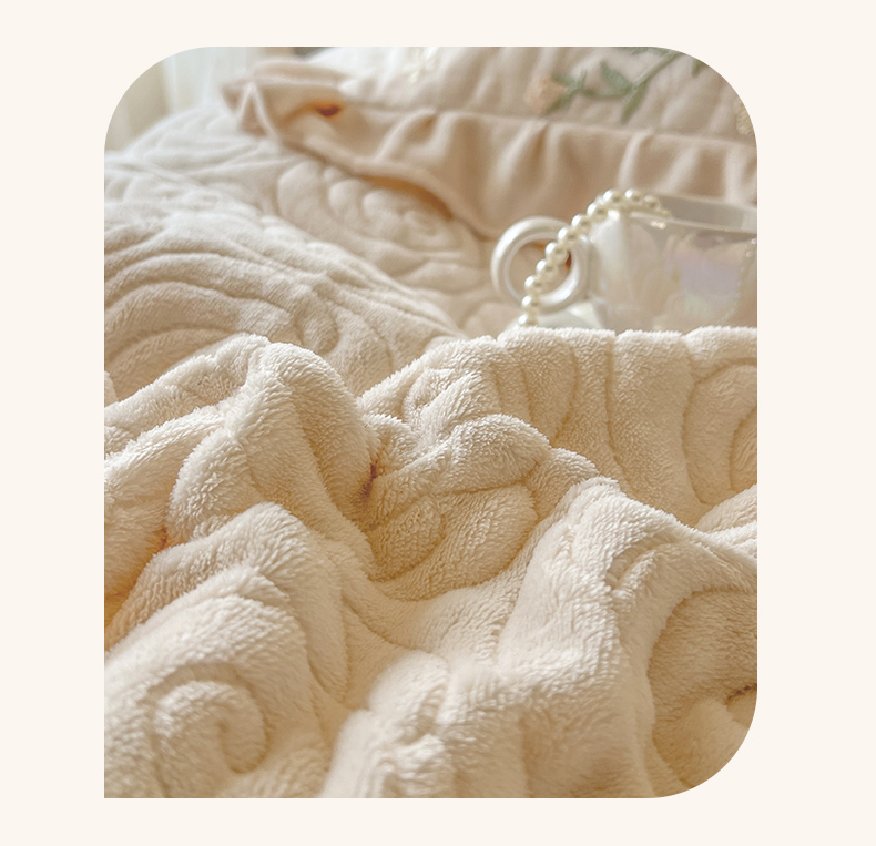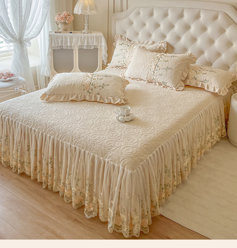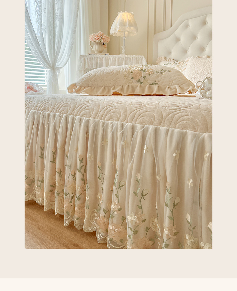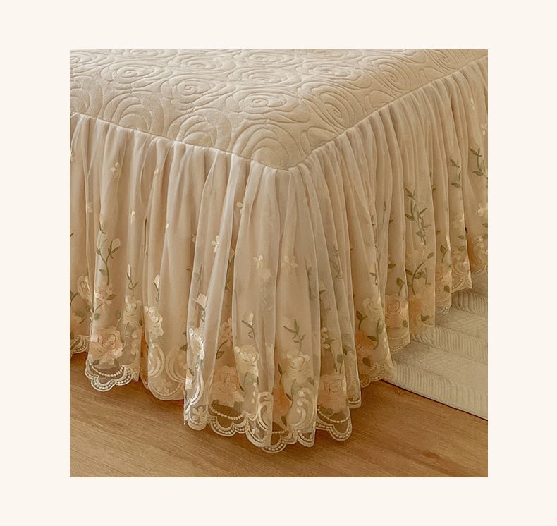 恋尚 2025新款柔软牛奶绒保暖蕾丝床裙单品-玫瑰故事(控价150) 玫瑰故事-奶茶色