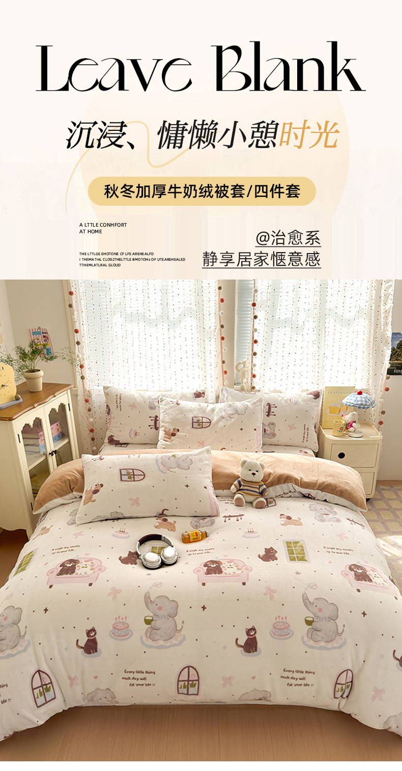当前位置: 91家纺网 > 商品网购 > 床品套件 > 四件套 > 牛奶绒四件套 > 沐芷 2025 高克重加厚A类牛奶绒四件套珊瑚绒卡通简约三件套 【绒】软萌小象