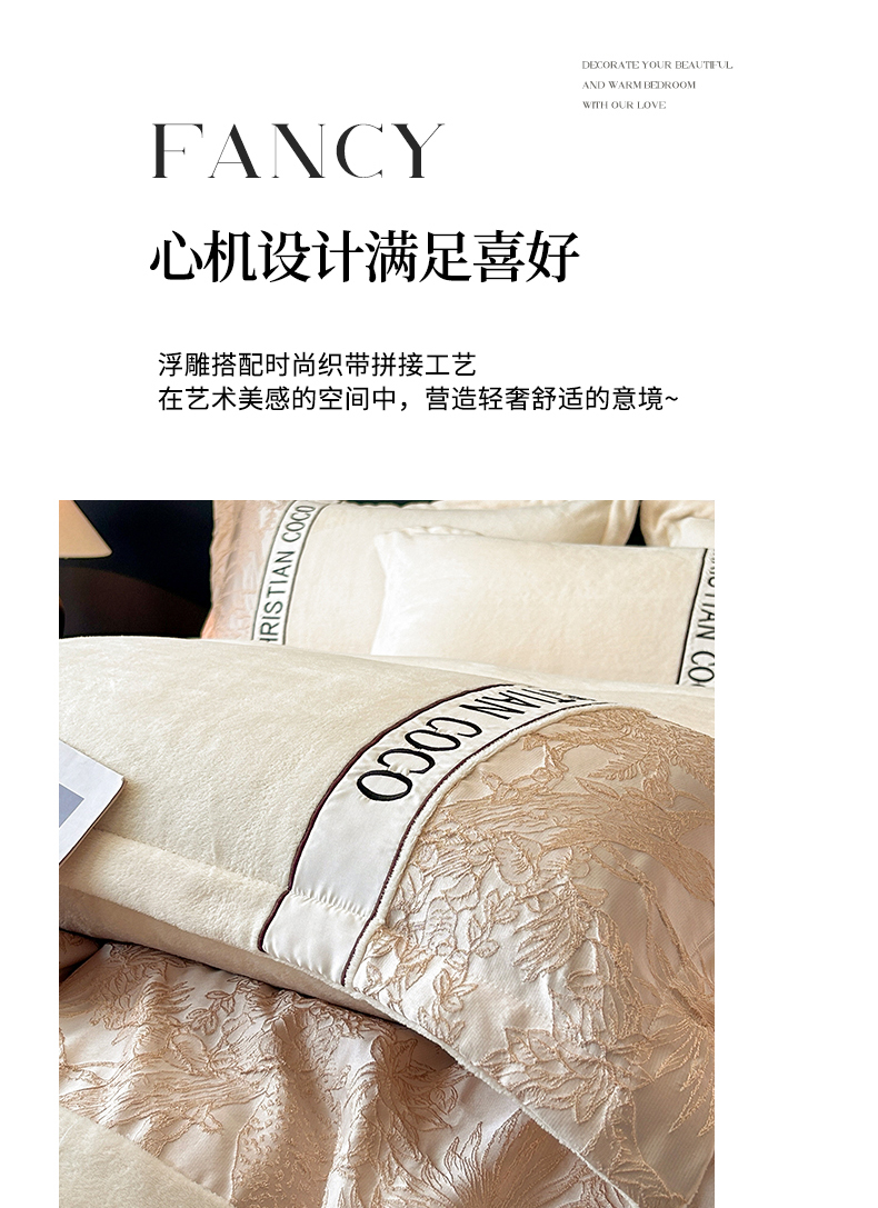 商品名称:苏源家居 2025新款加厚牛奶绒拼浮雕冬款四件套-幽境 幽境-深灰