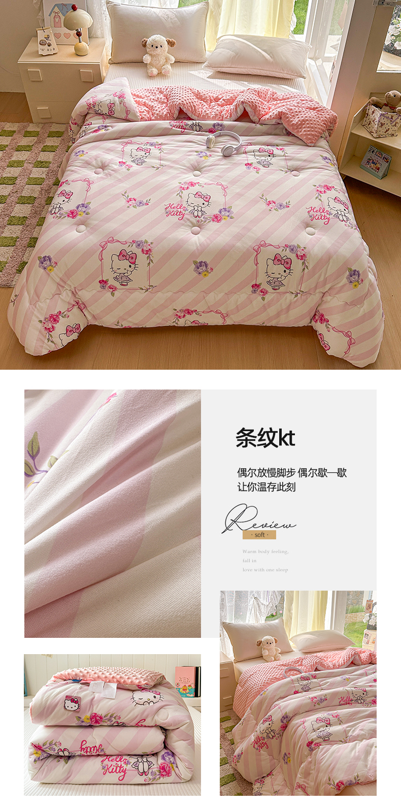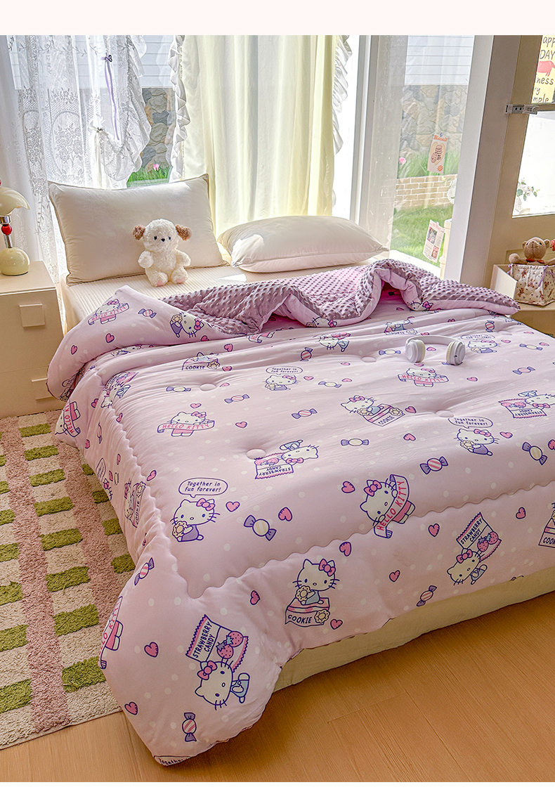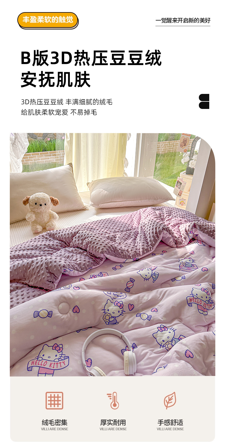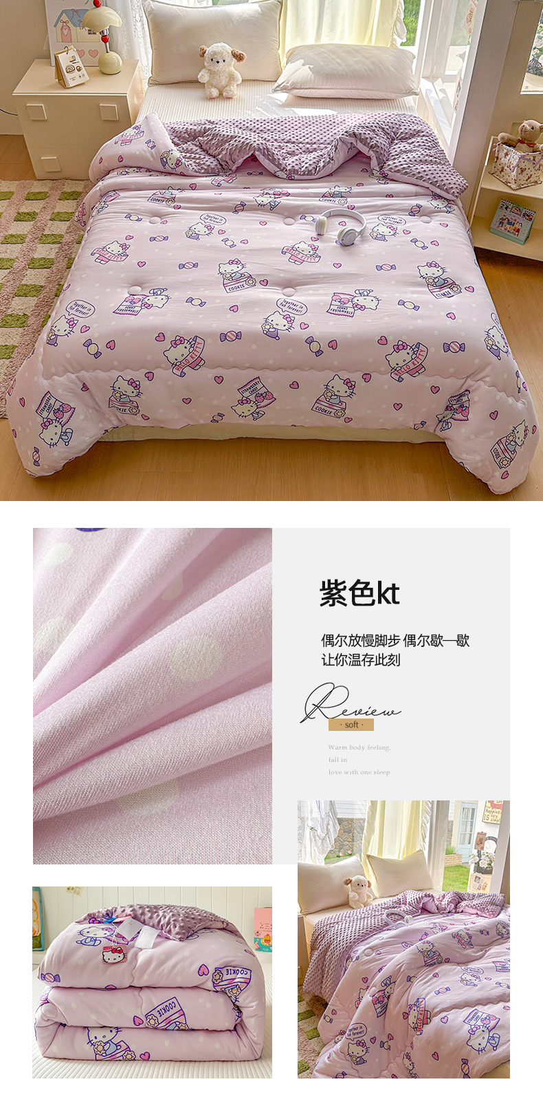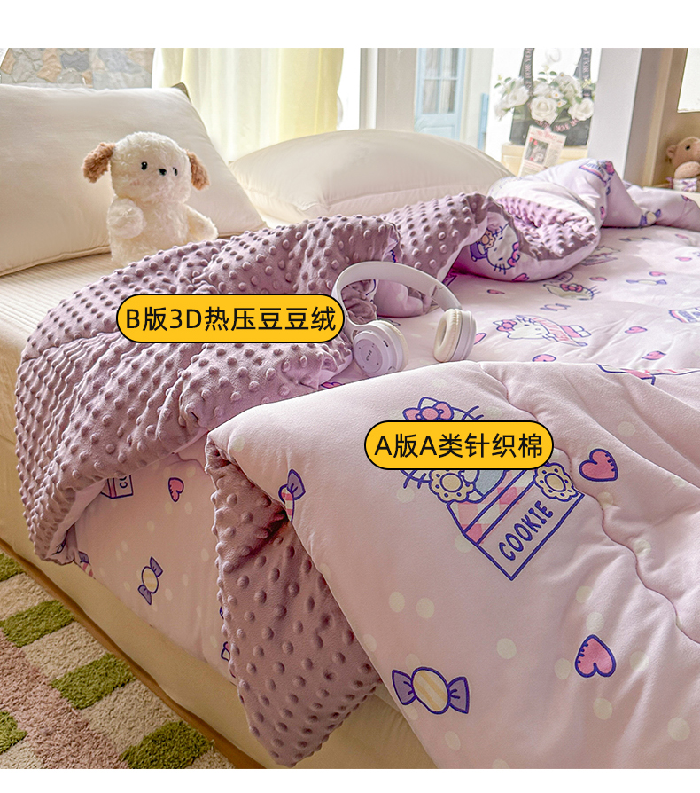 (总)希诺家居 2025新款正版授权三丽鸥秋冬针织棉豆豆被儿童被被子被芯,爱心美乐蒂,调皮帕恰狗,汽车库洛米,条纹kt,云朵大耳狗,紫色kt