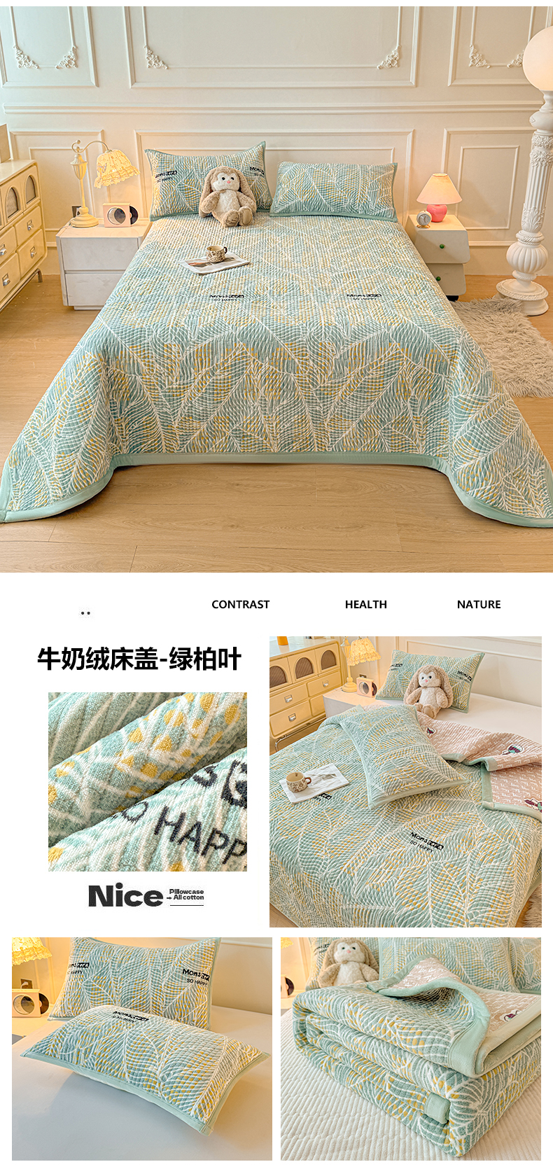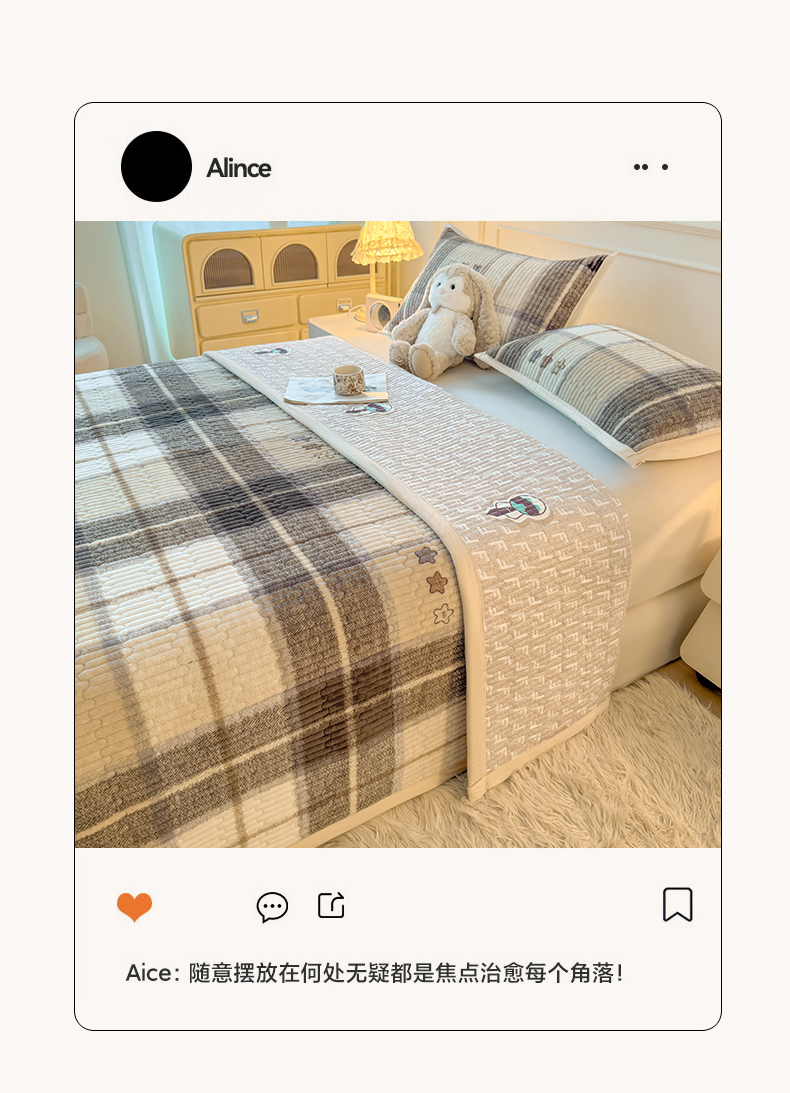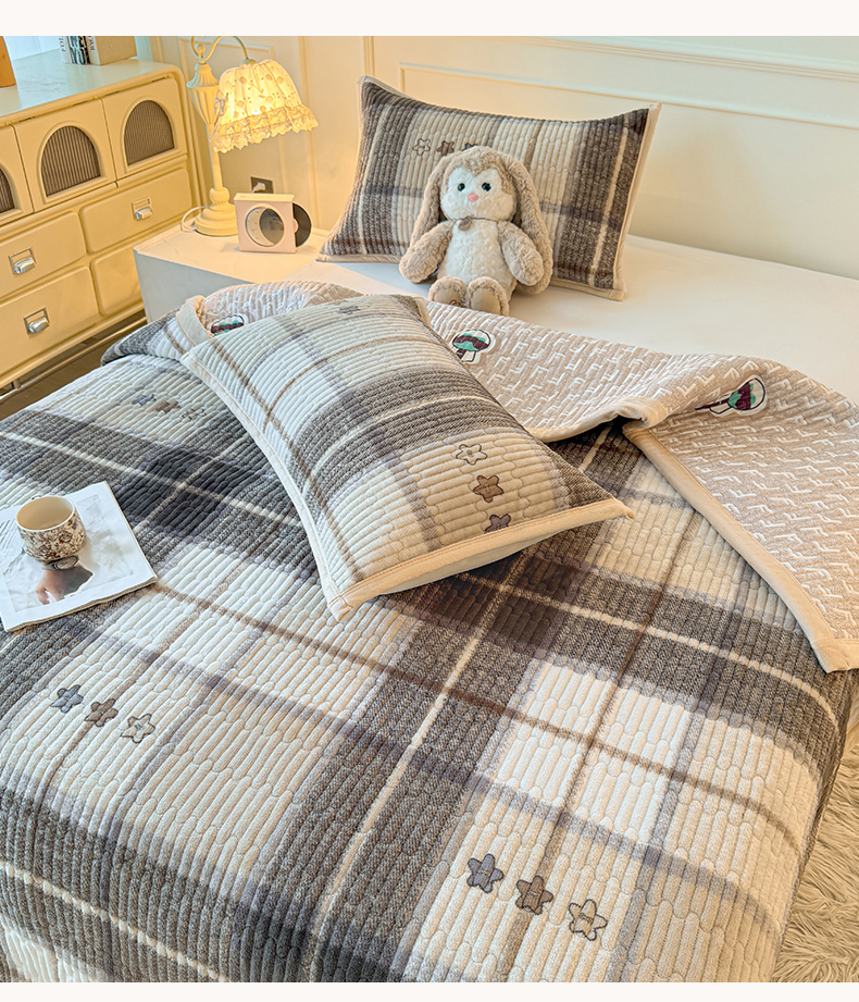 (总)慕木家纺 2025新款高克重牛奶绒小清新印花卡通夹棉单床盖床盖单件(提供买家秀)