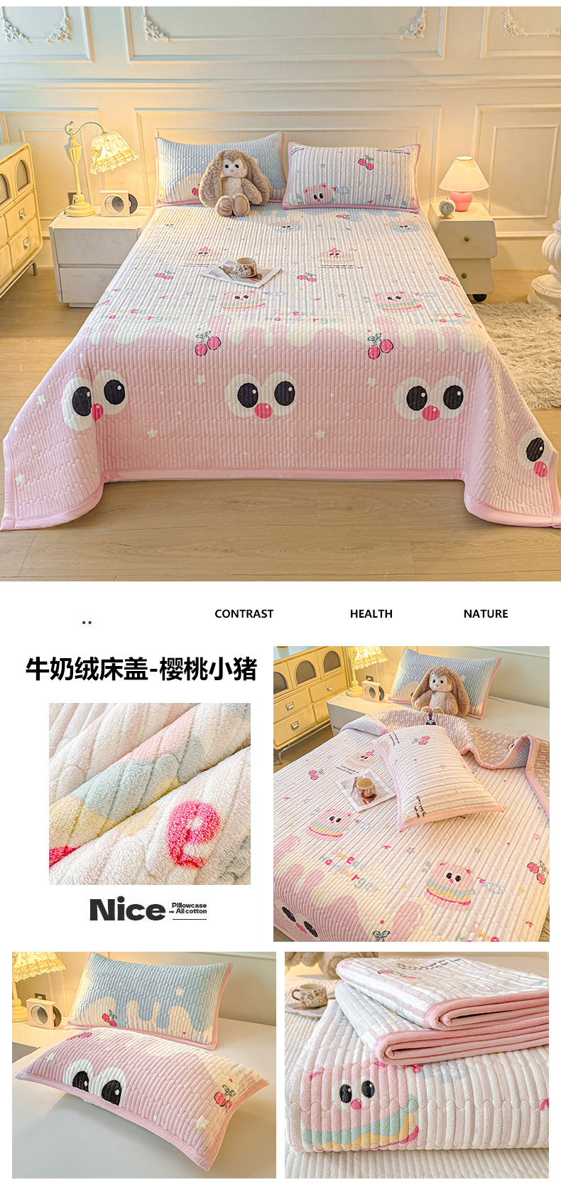 商品名称:(总)慕木家纺 2025新款高克重牛奶绒小清新印花卡通夹棉单床盖床盖单件(提供买家秀)