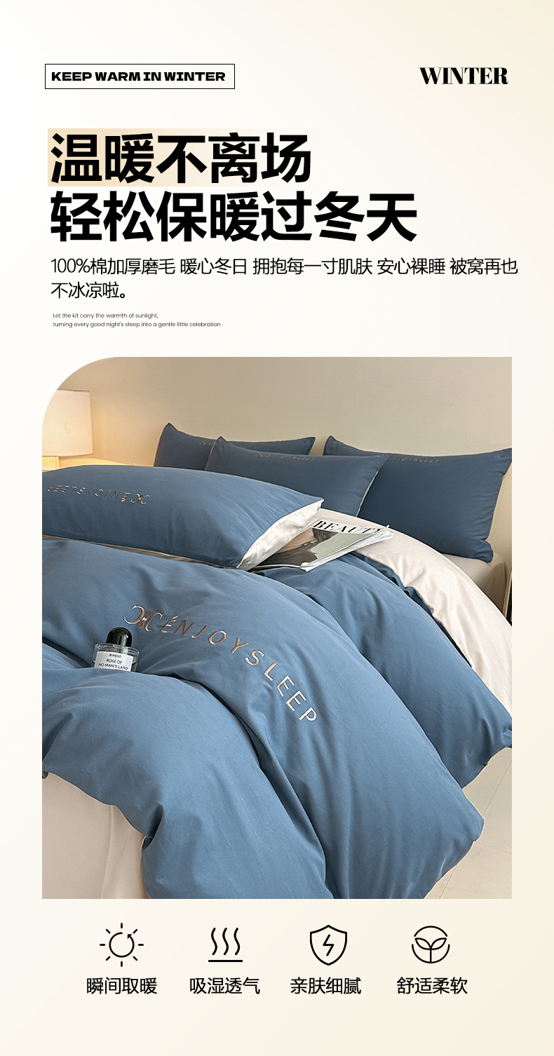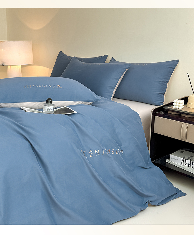 当前位置: 91家纺网 > 商品网购 > 床品套件 > 四件套 > 长绒棉四件套 > 拼社家纺 2025秋冬A类全棉加厚磨毛四件套刺绣纯棉不掉毛四件套-缪斯(提供买家秀) 缪斯-迷雾蓝+印月灰