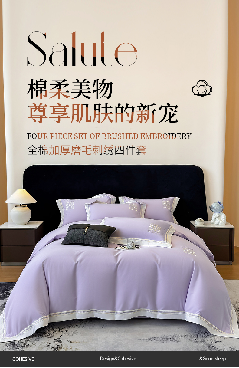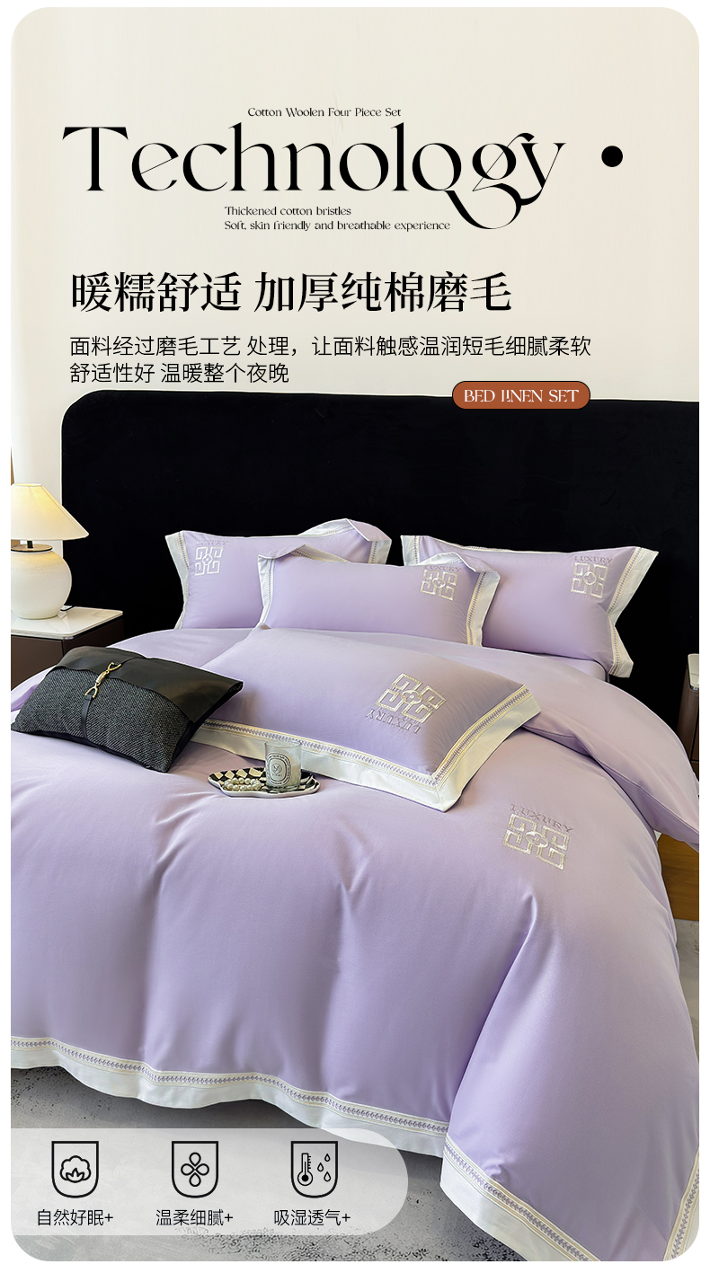 商品名称:家居1号家纺 2025新款超细旦全棉磨毛四件套-梵西(控价标准288加大308 会员优惠10元) 梵西-糖果紫