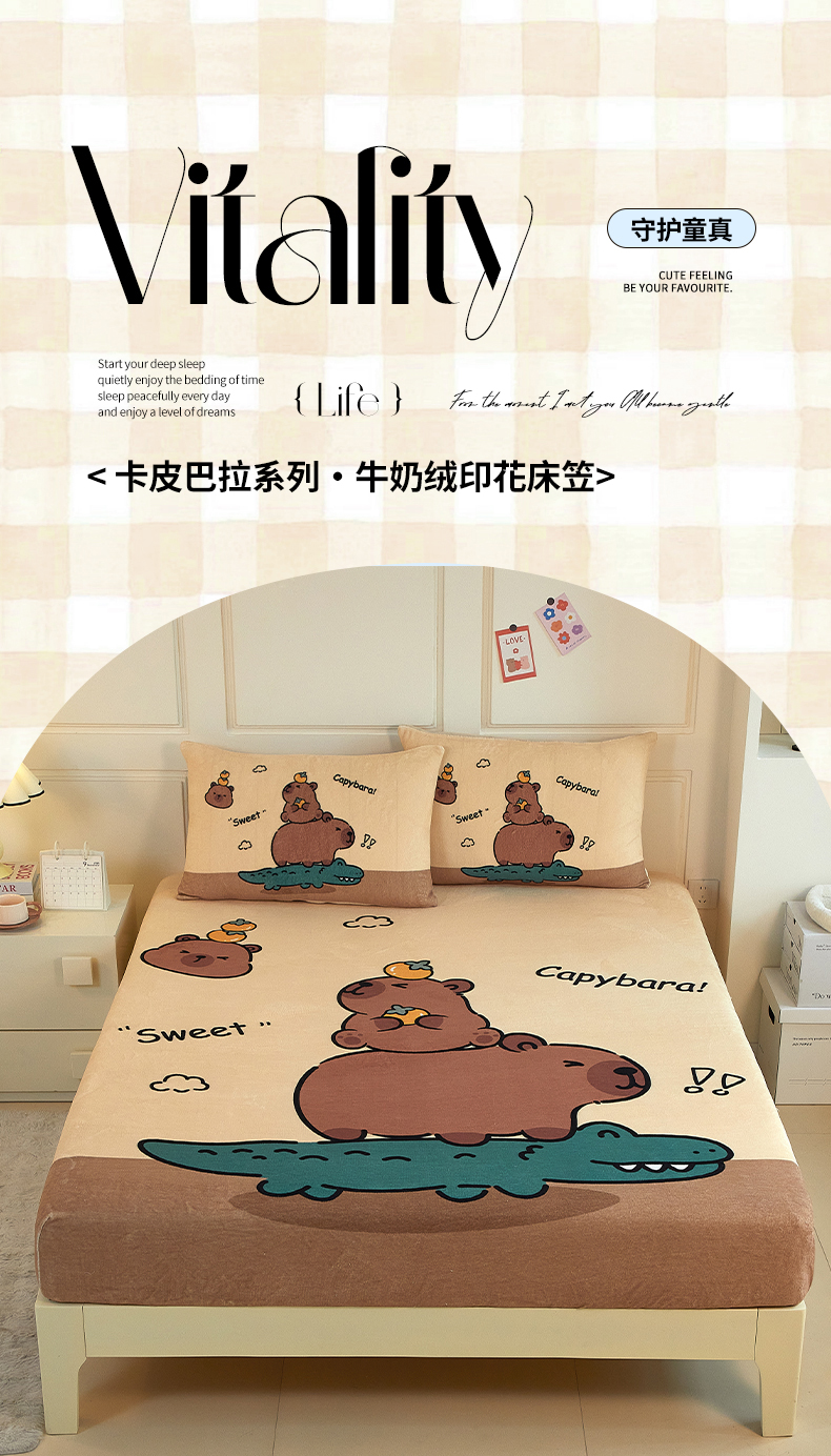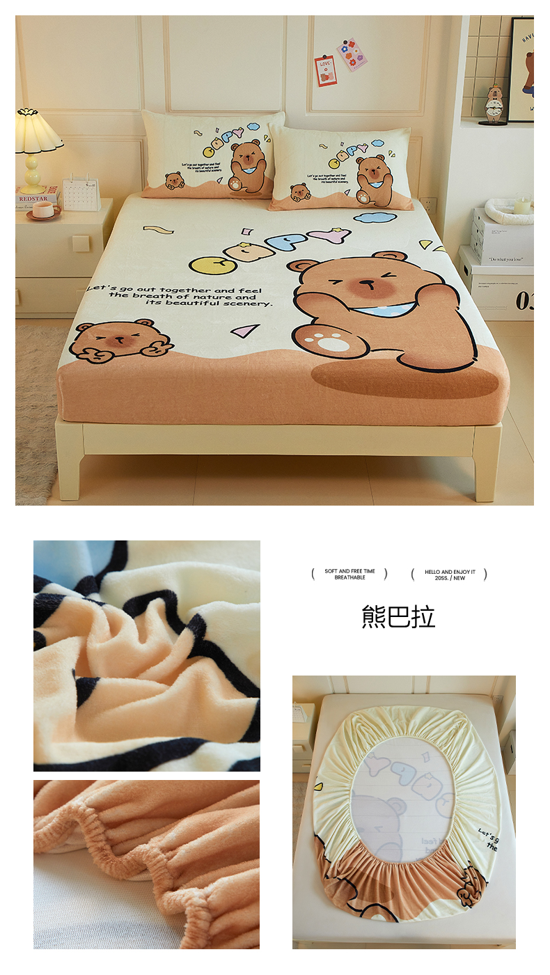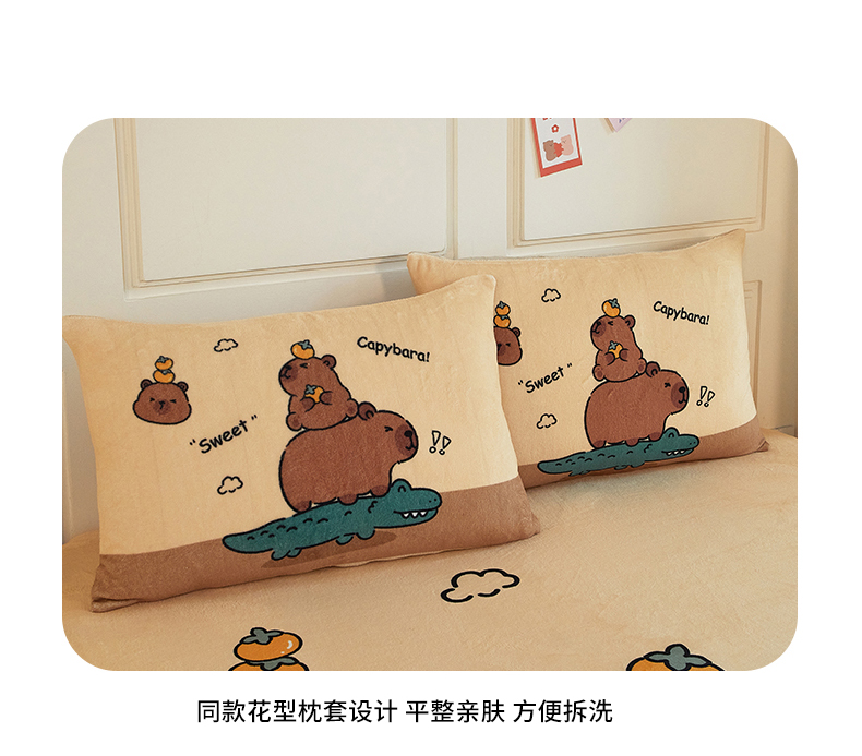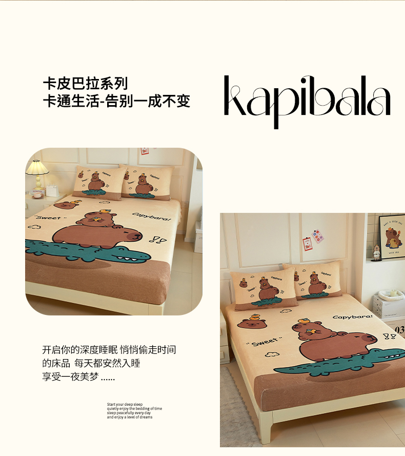 商品名称:蘭菲家纺 2025新款保暖舒适卡皮巴拉牛奶绒系列单品床笠 征服拉