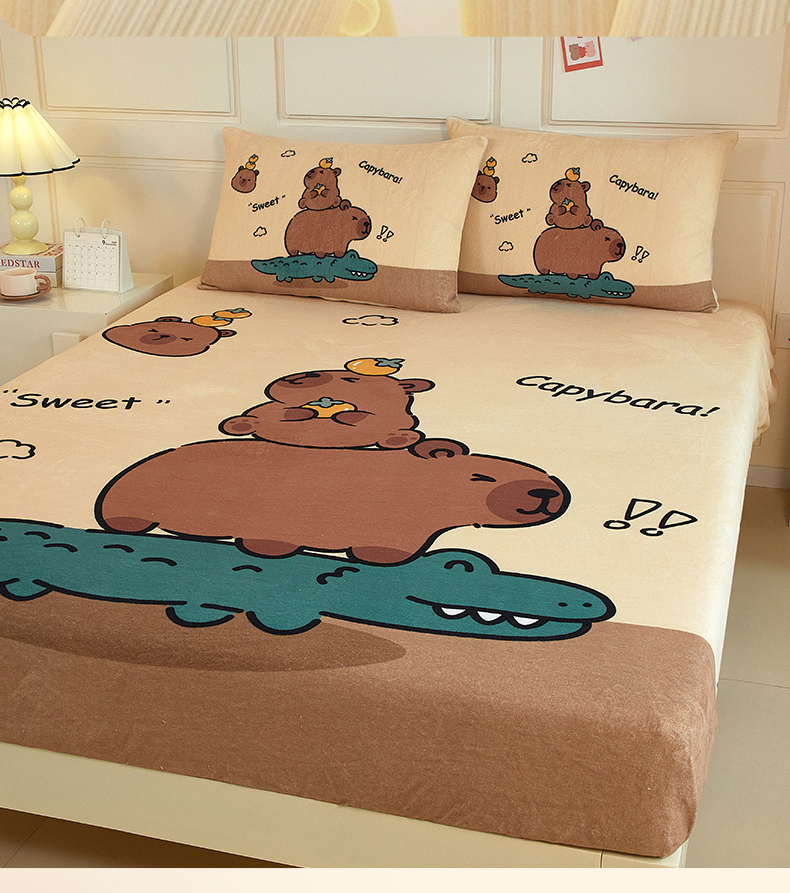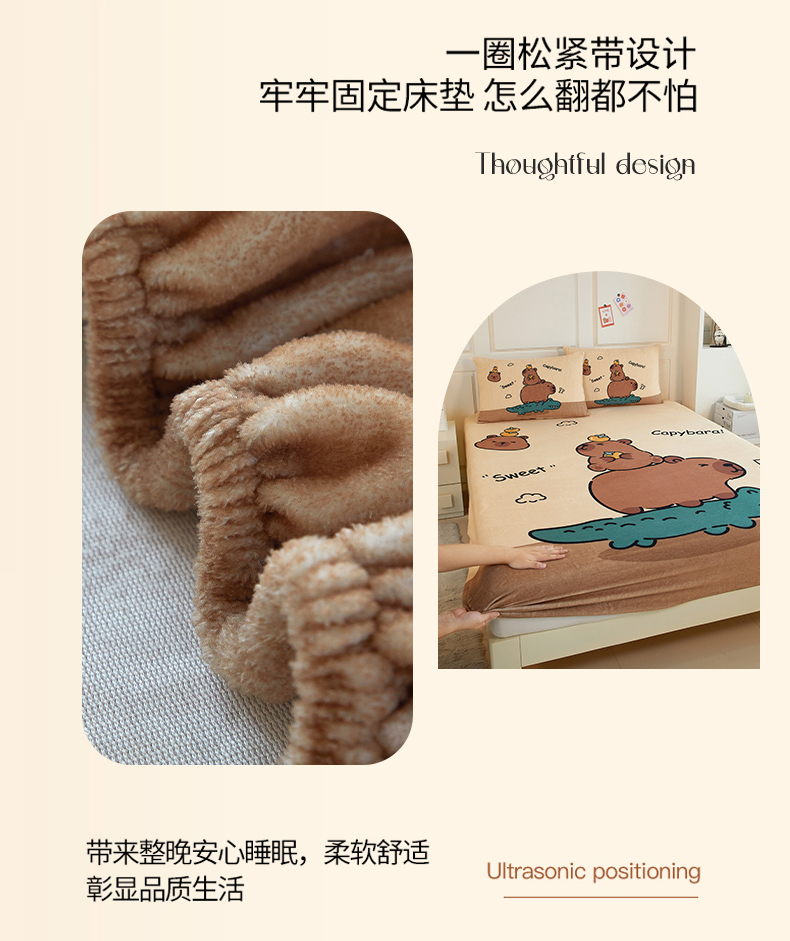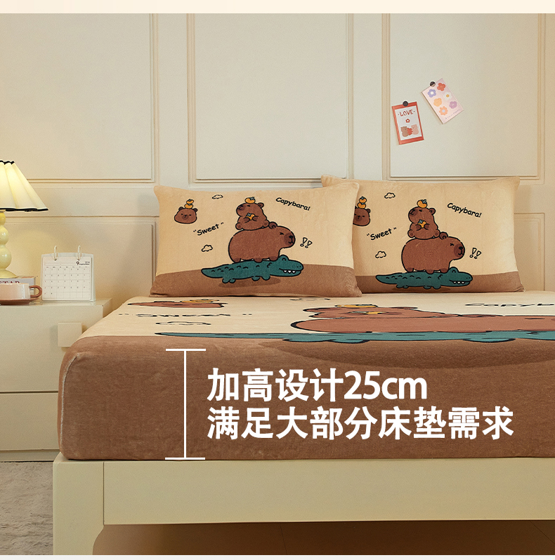 蘭菲家纺 2025新款保暖舒适卡皮巴拉牛奶绒系列单品床笠 征服拉