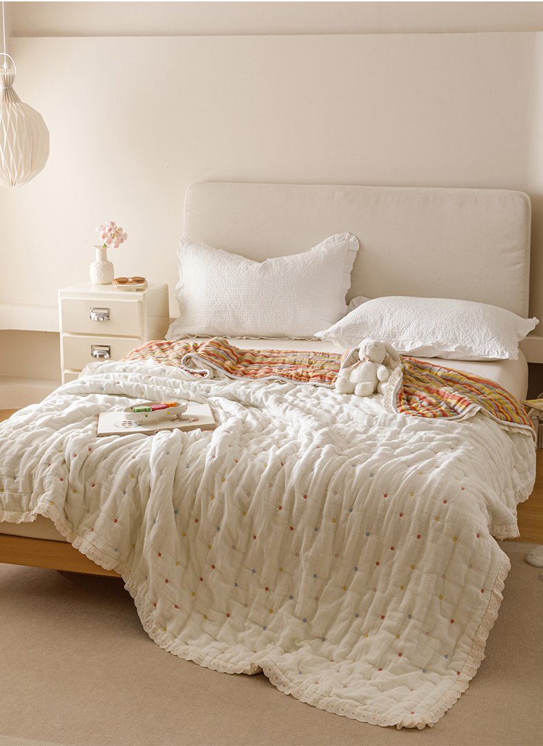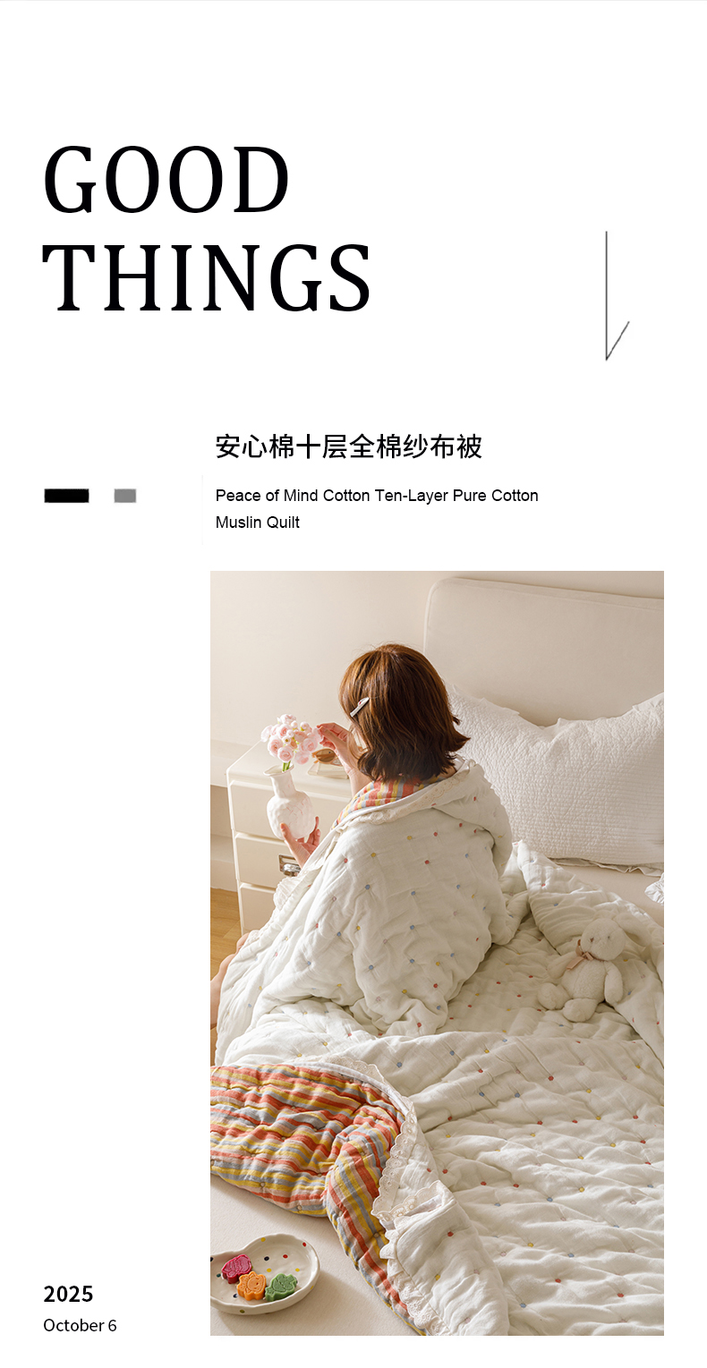 麻依 2025新款安心棉十层纱布泡芙被全棉纱布被子被芯 点点蝴蝶结-米白