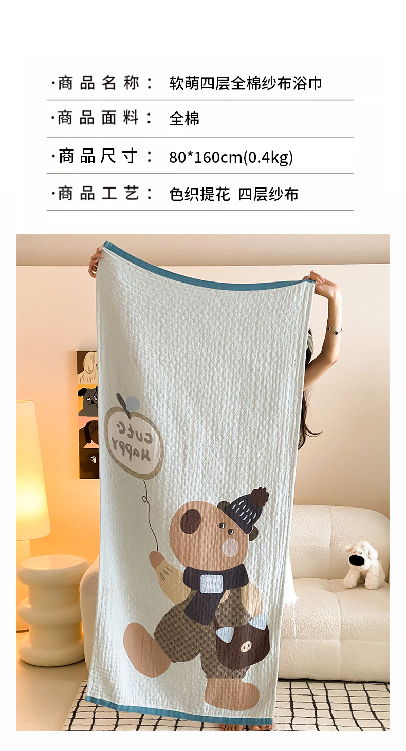商品名称:(总)麻依 2025新款软萌纱布浴巾四层全棉纱布浴巾