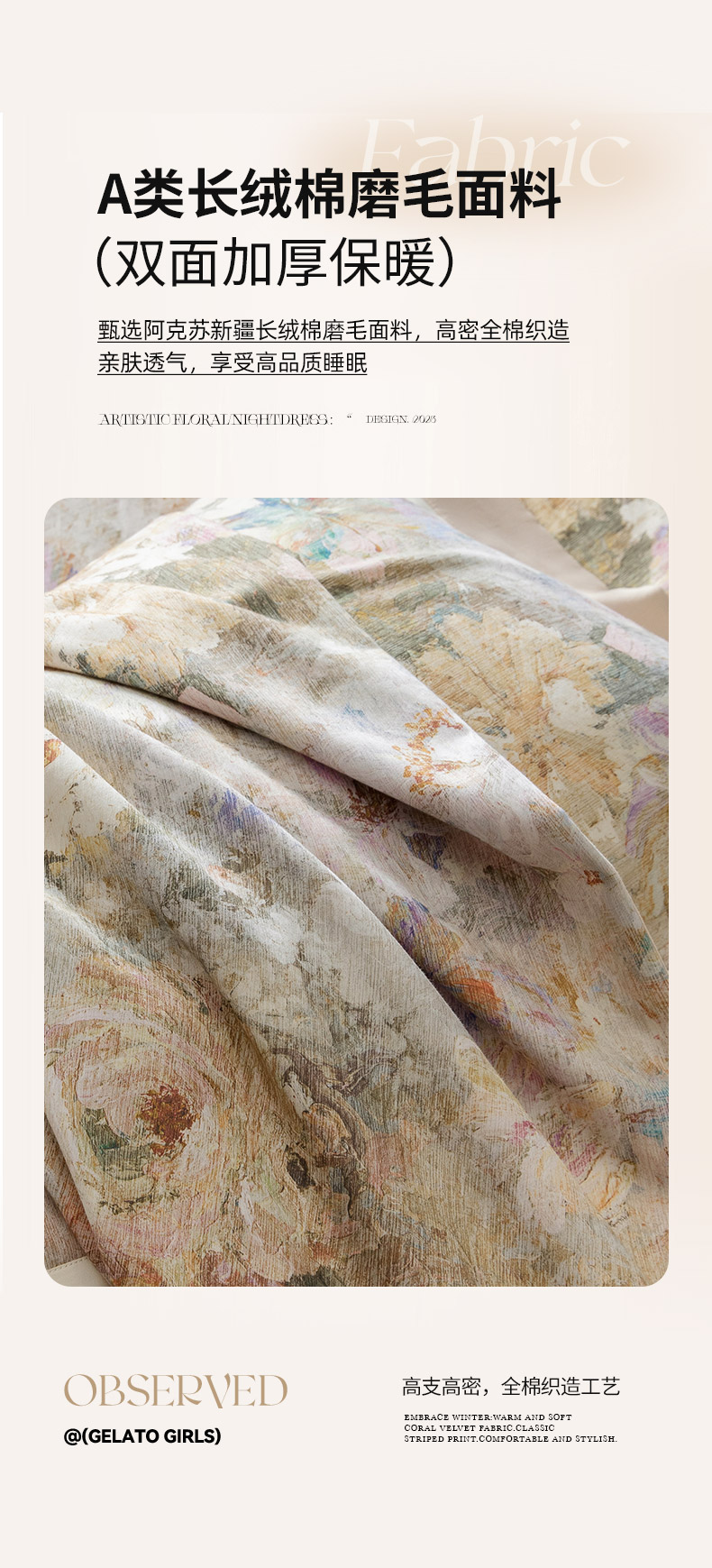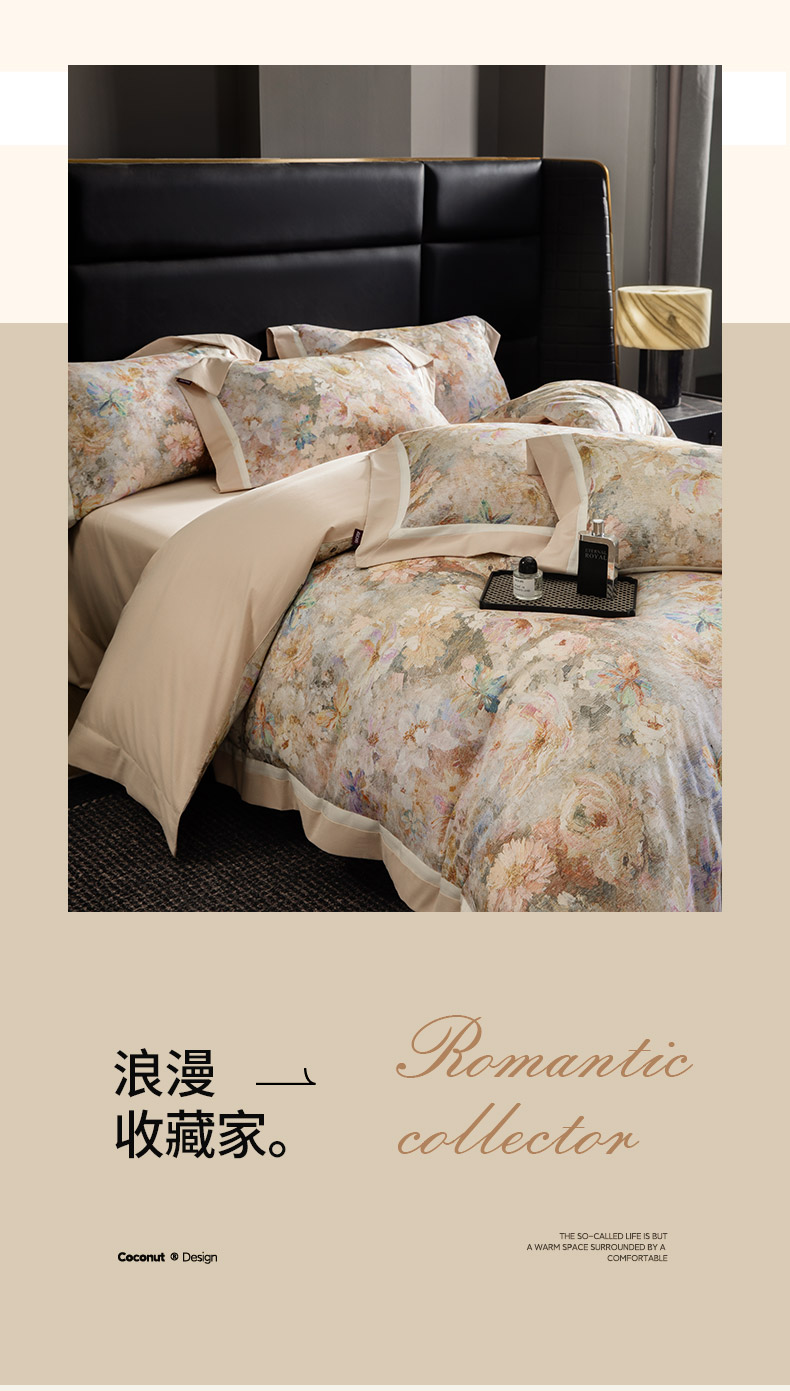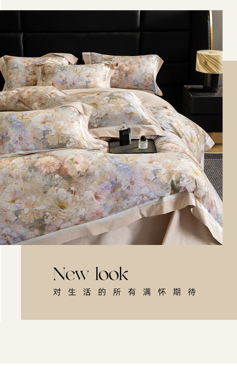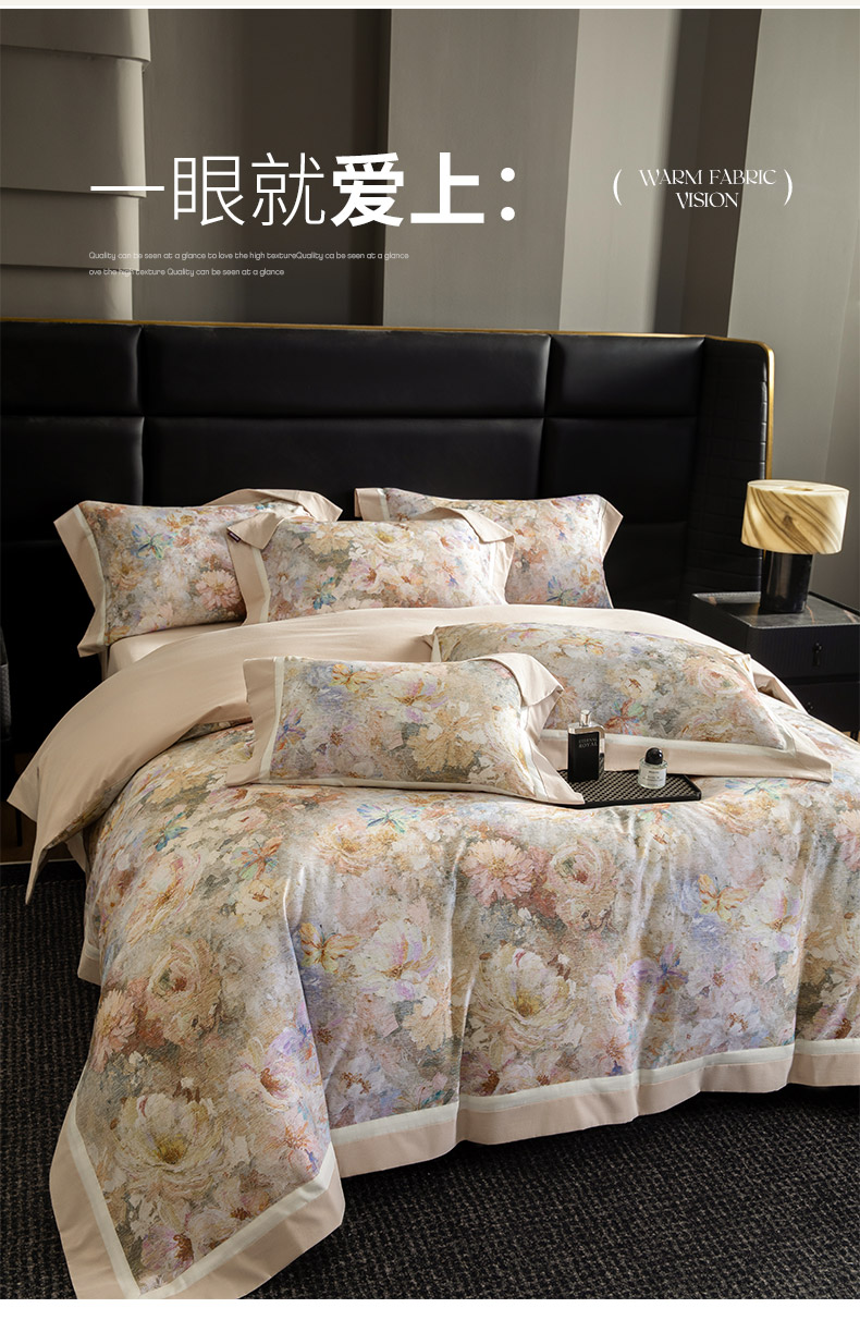 商品名称:2025秋冬季A类加厚全棉磨毛四件套纯棉保暖美式轻奢长绒棉数码印花高端床上用品 花弄影-米