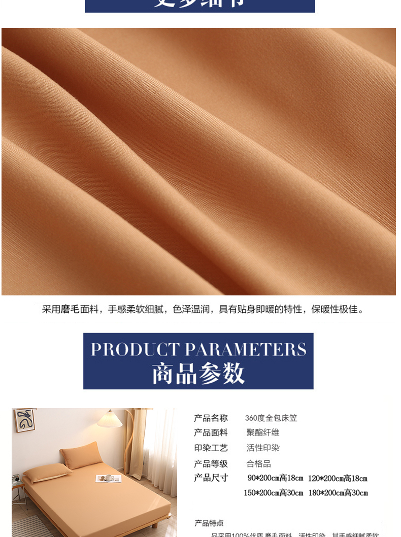 商品名称:啊雅家居 2025(外贸)新款简约单人床笠双人床笠水洗磨毛床笠跨境电商 咖色