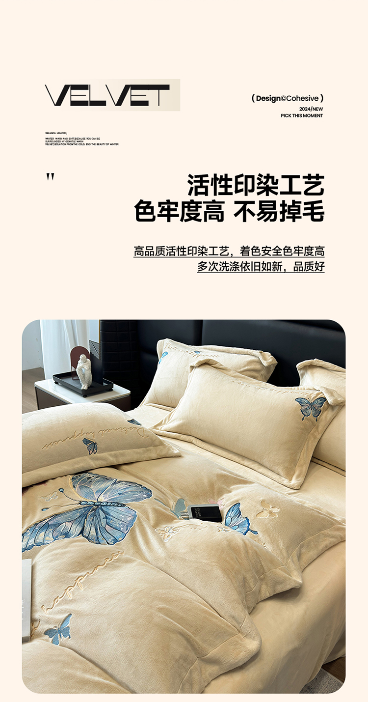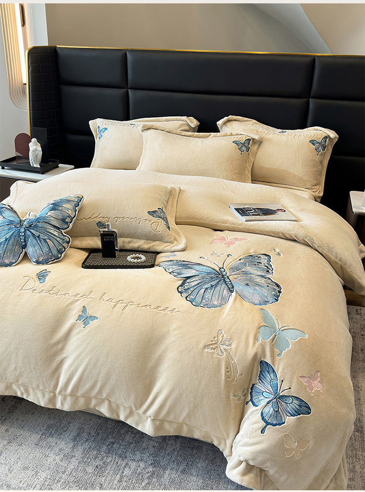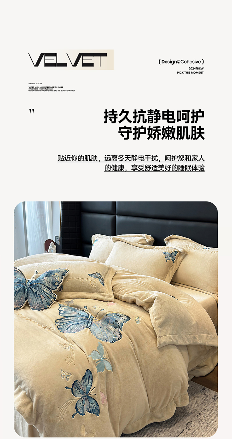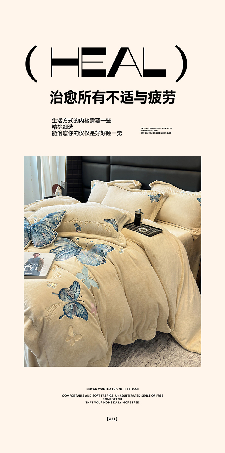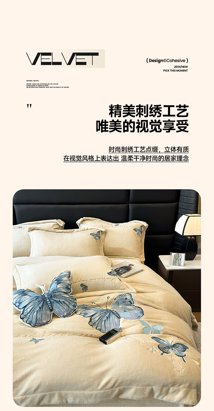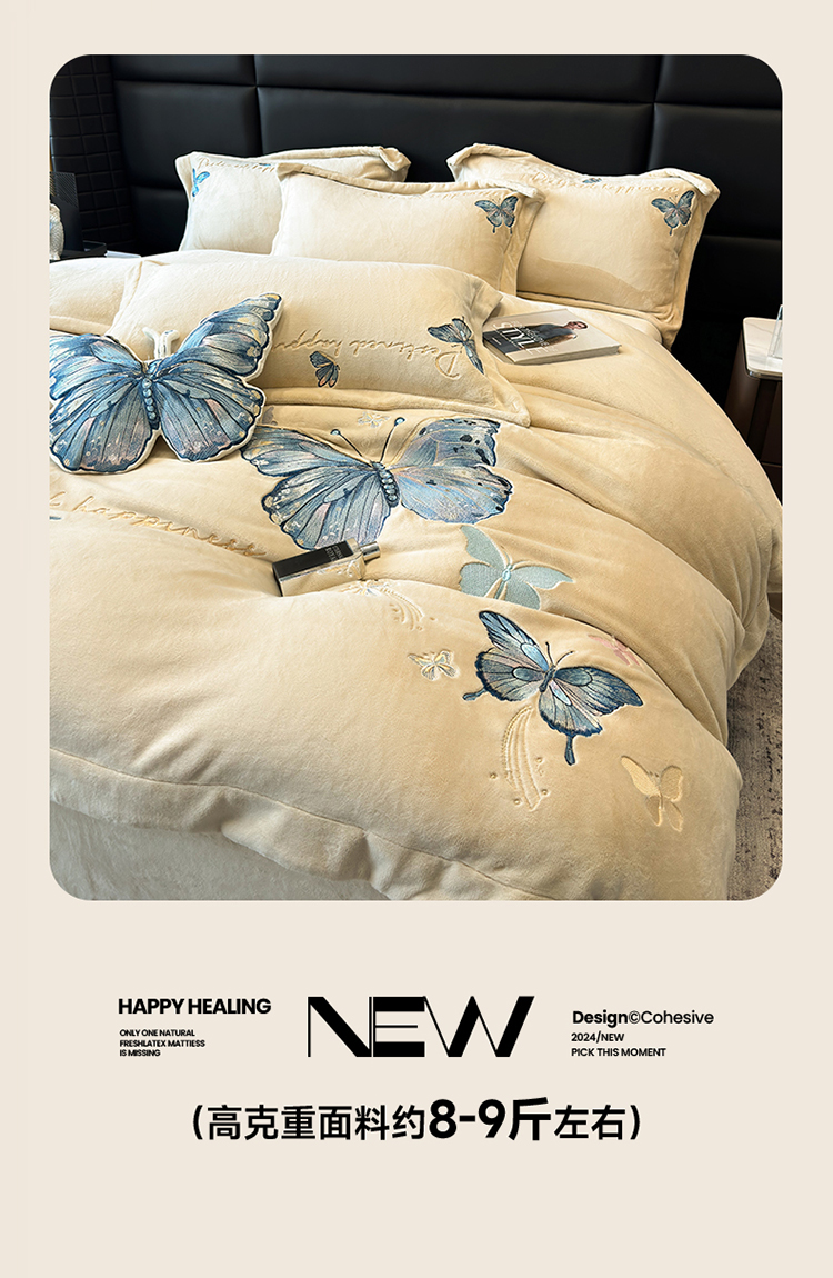 当前位置: 91家纺网 > 商品网购 > 床品套件 > 四件套 > 牛奶绒四件套 > 手提包九斤重超厚绵密有肌氧绒刺绣四件套秋冬加厚保暖牛奶绒宝宝绒床上用品 浅米灰-绒蝶舞-A类超厚绵密有肌氧绒