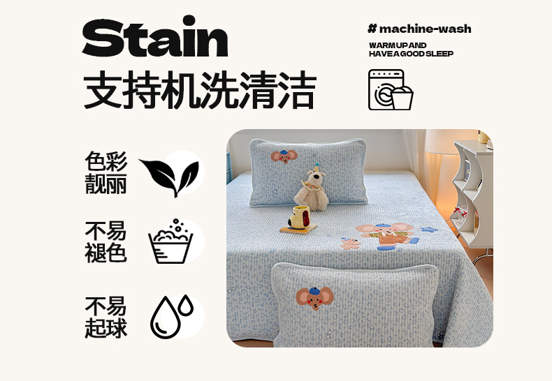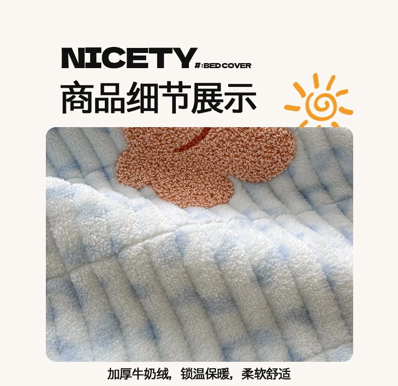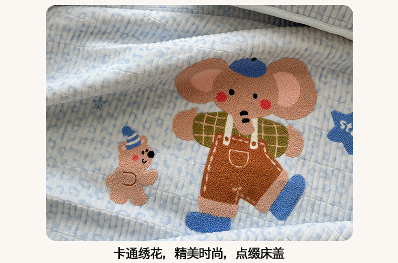 商品名称:寐居家纺 2025新款A类牛奶绒毛巾绣床盖 星伴小象