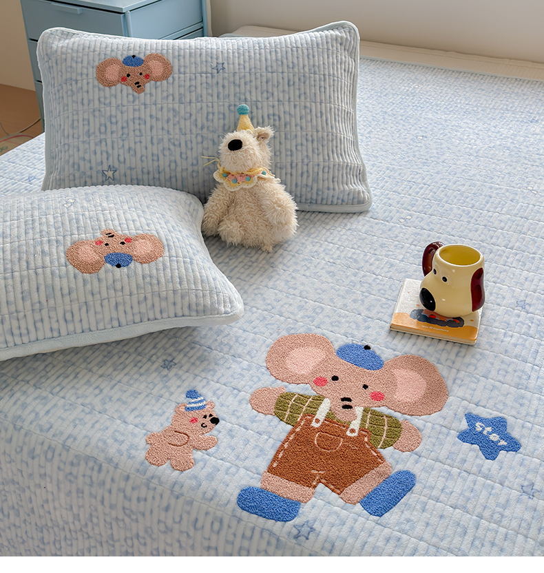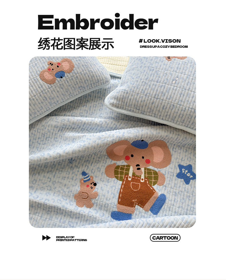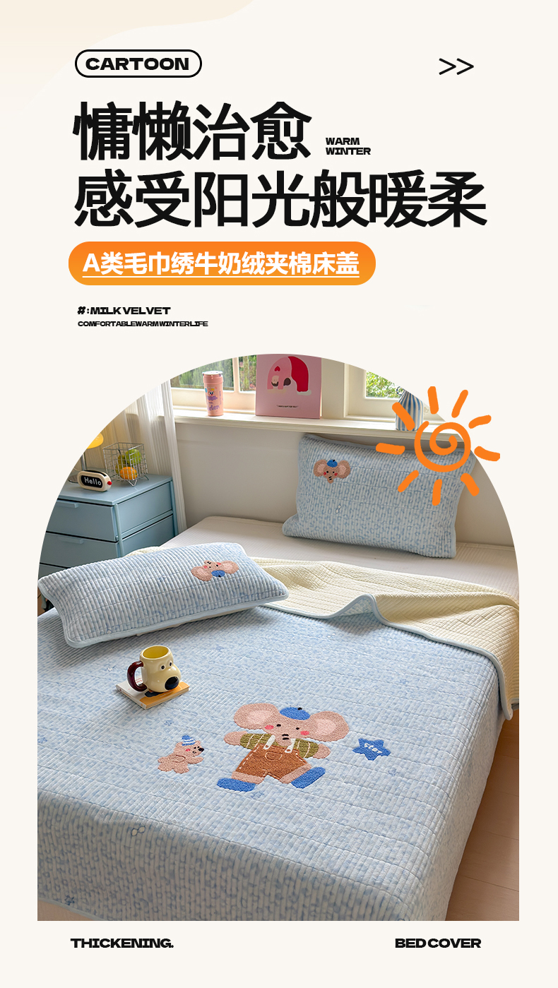 寐居家纺 2025新款A类牛奶绒毛巾绣床盖 星伴小象