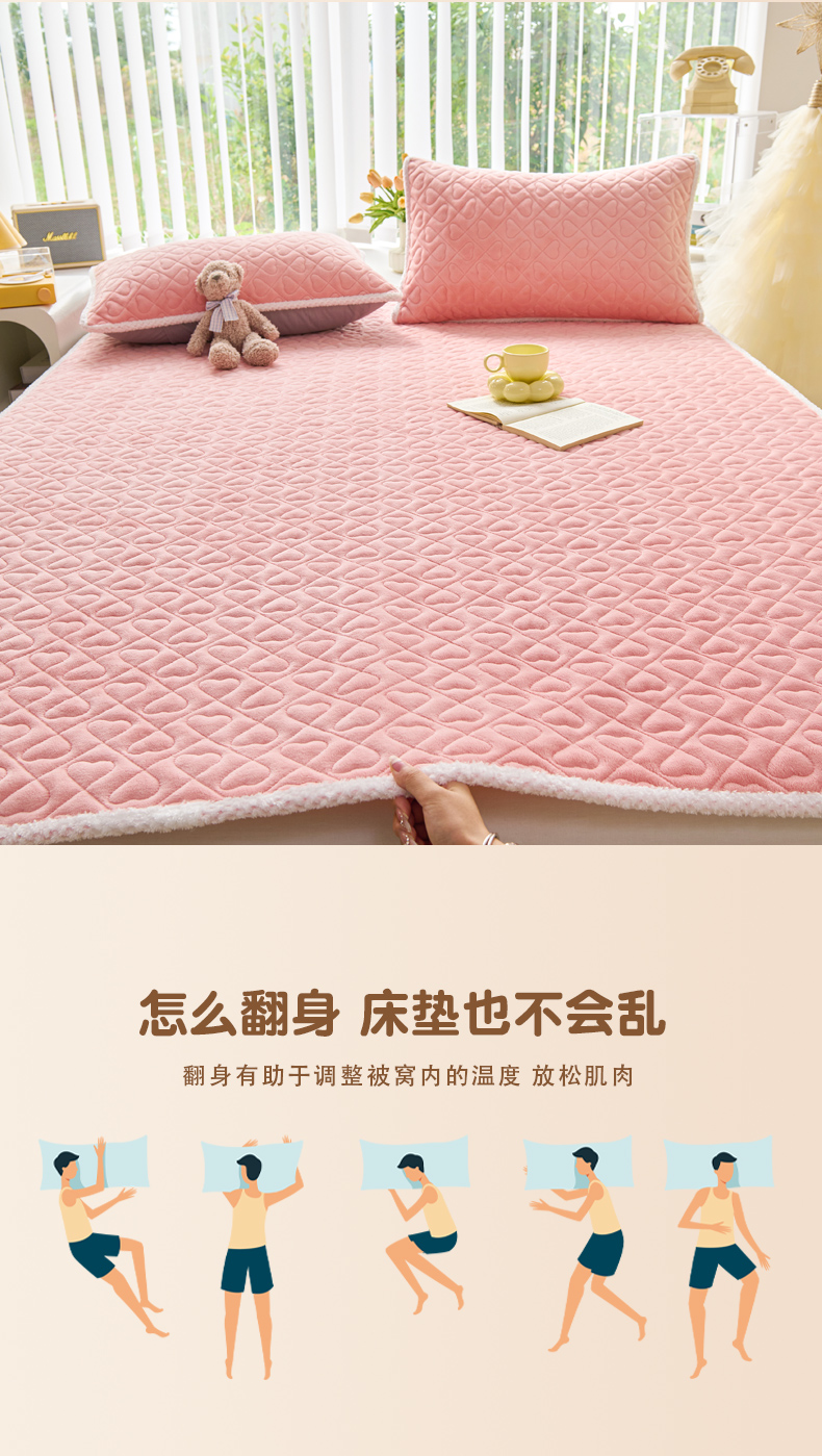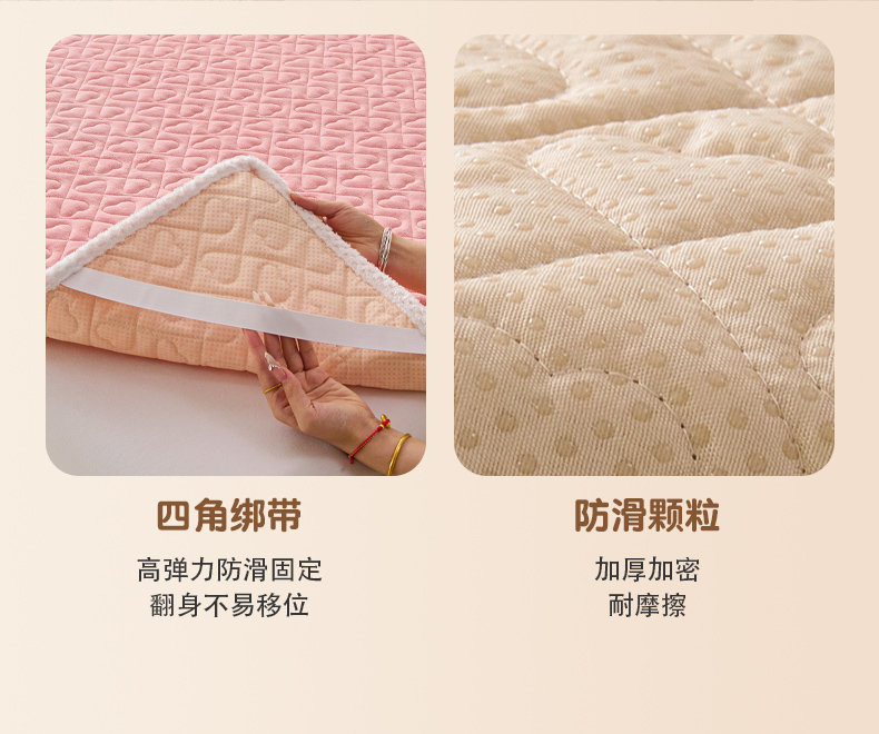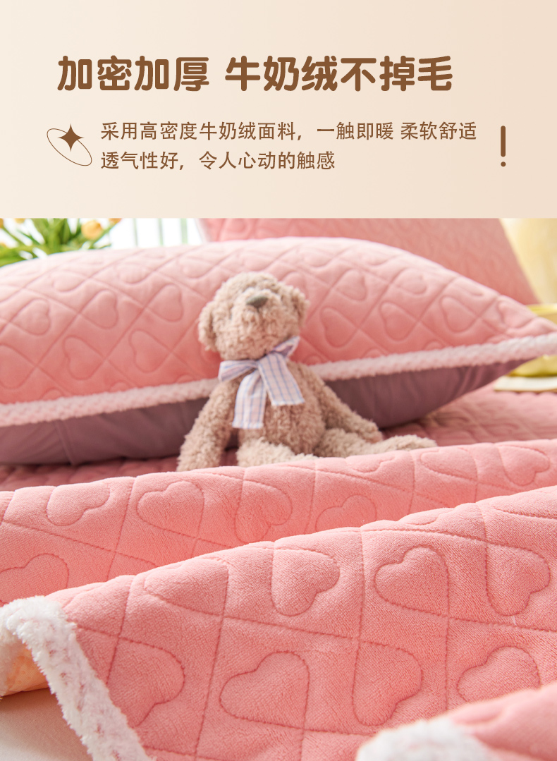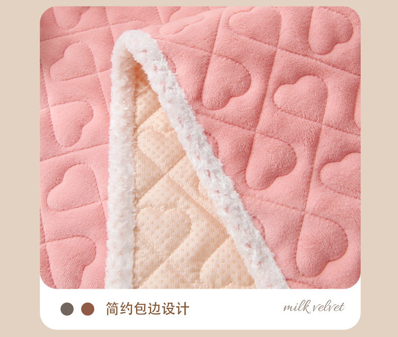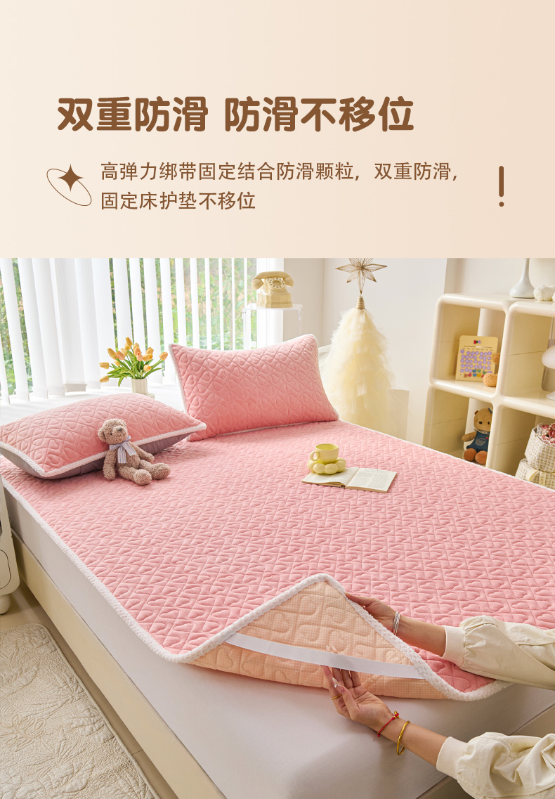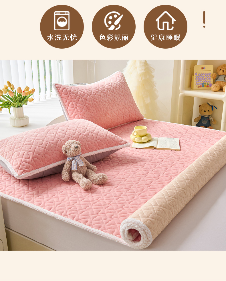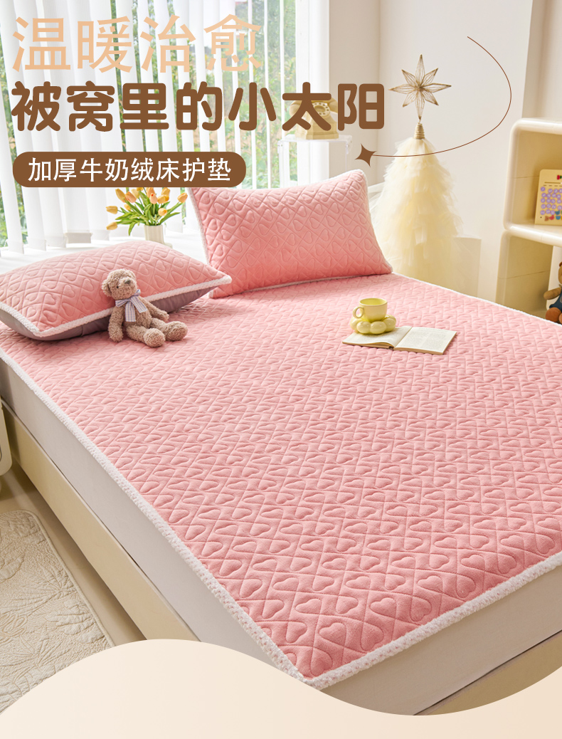 • 91家纺网 家纺一手货源 找家纺 拾小柒 2025年新款牛奶绒防滑床护垫加厚床垫隔脏垫冬季褥子床盖三件套 浅粉