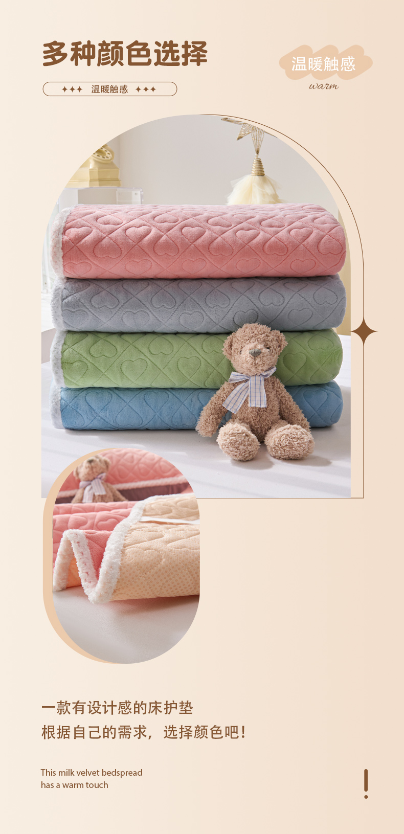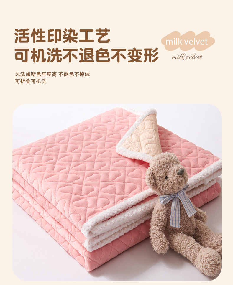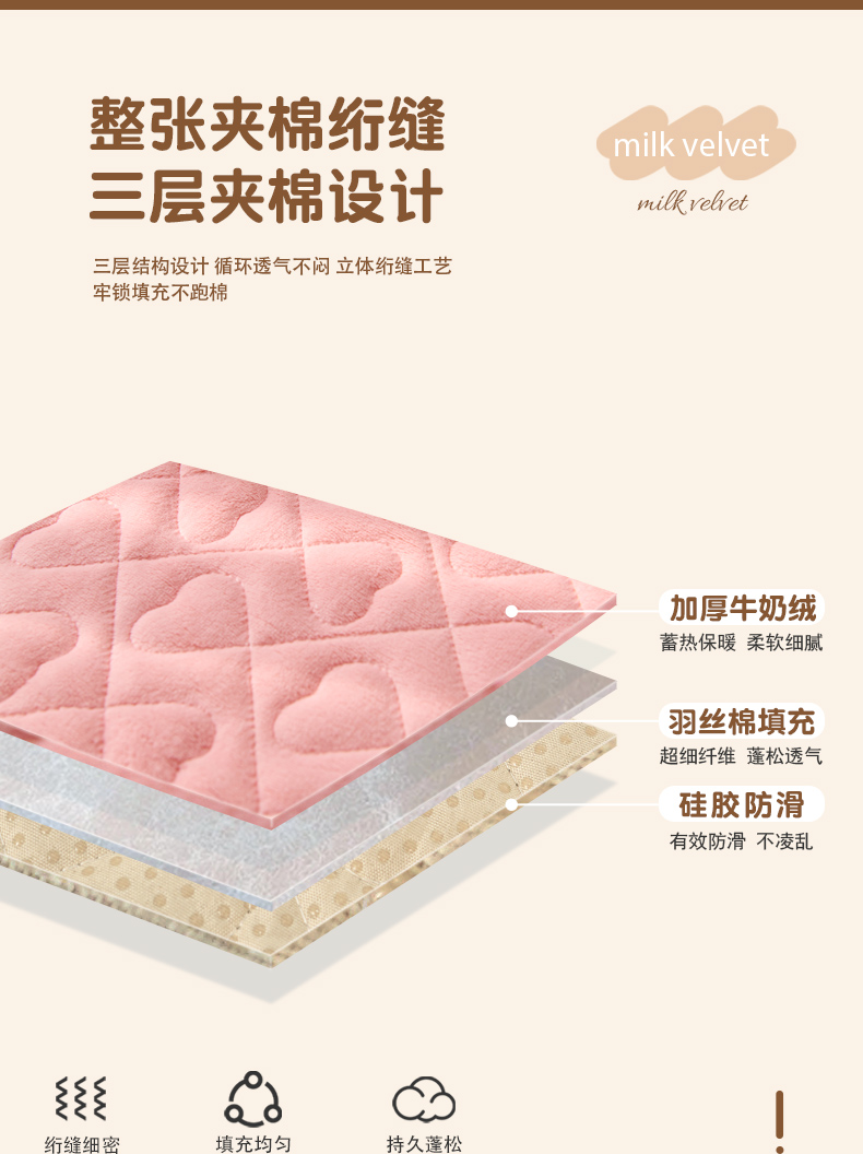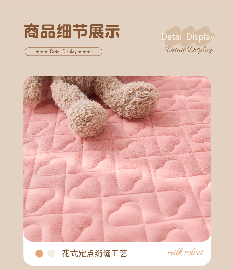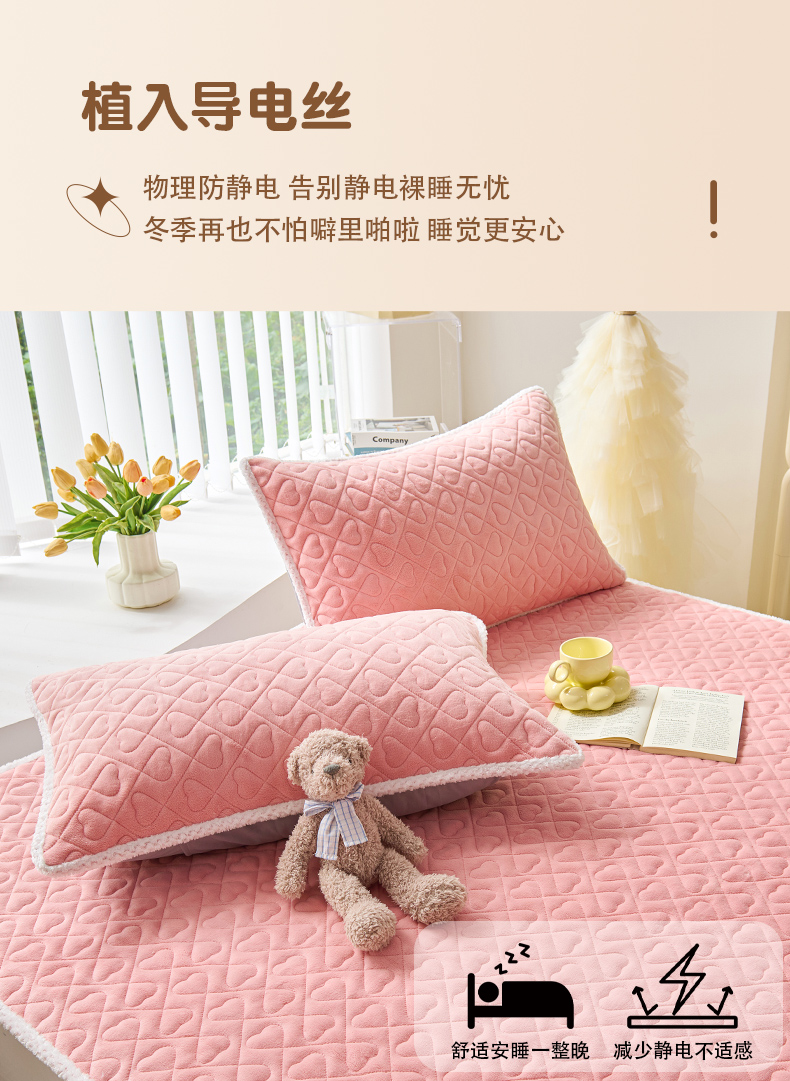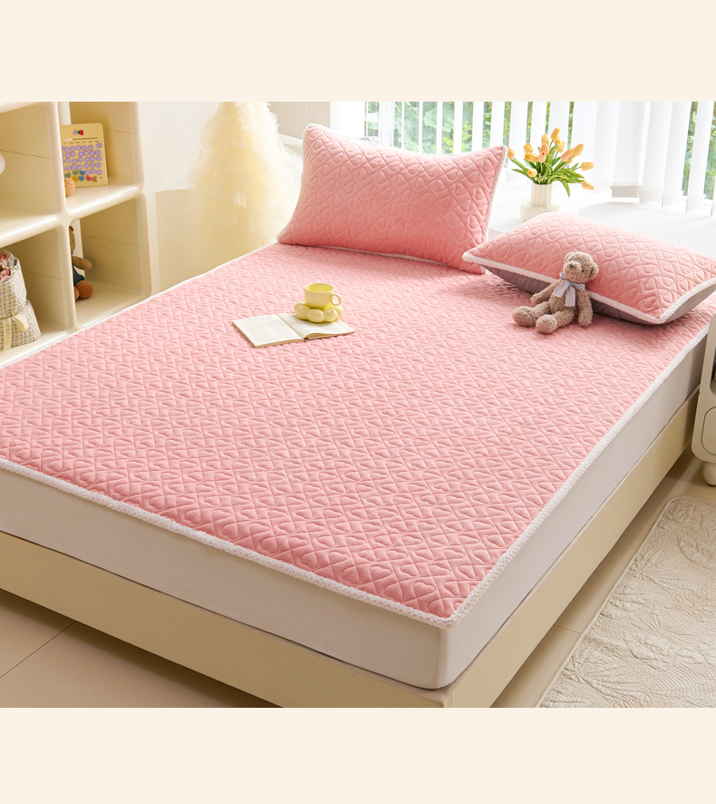 • 91家纺网 家纺一手货源 找家纺 拾小柒 2025年新款牛奶绒防滑床护垫加厚床垫隔脏垫冬季褥子床盖三件套 浅粉