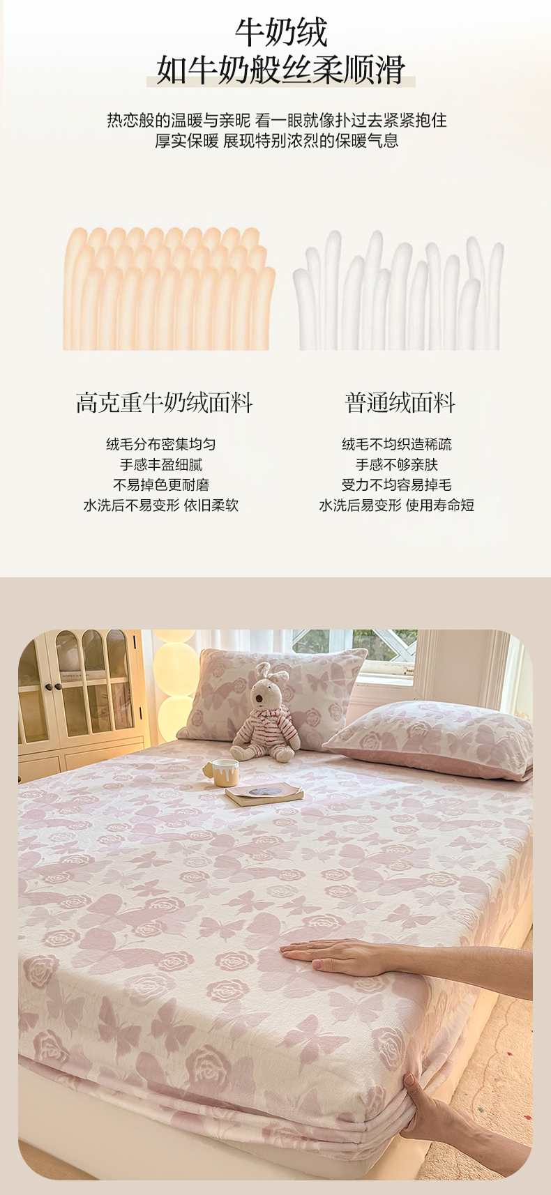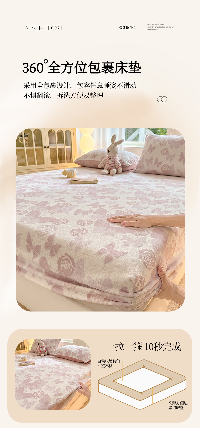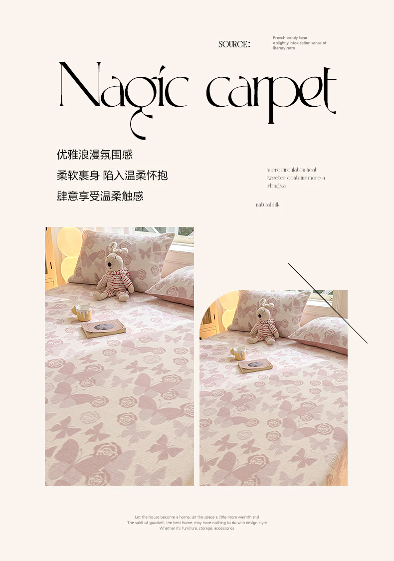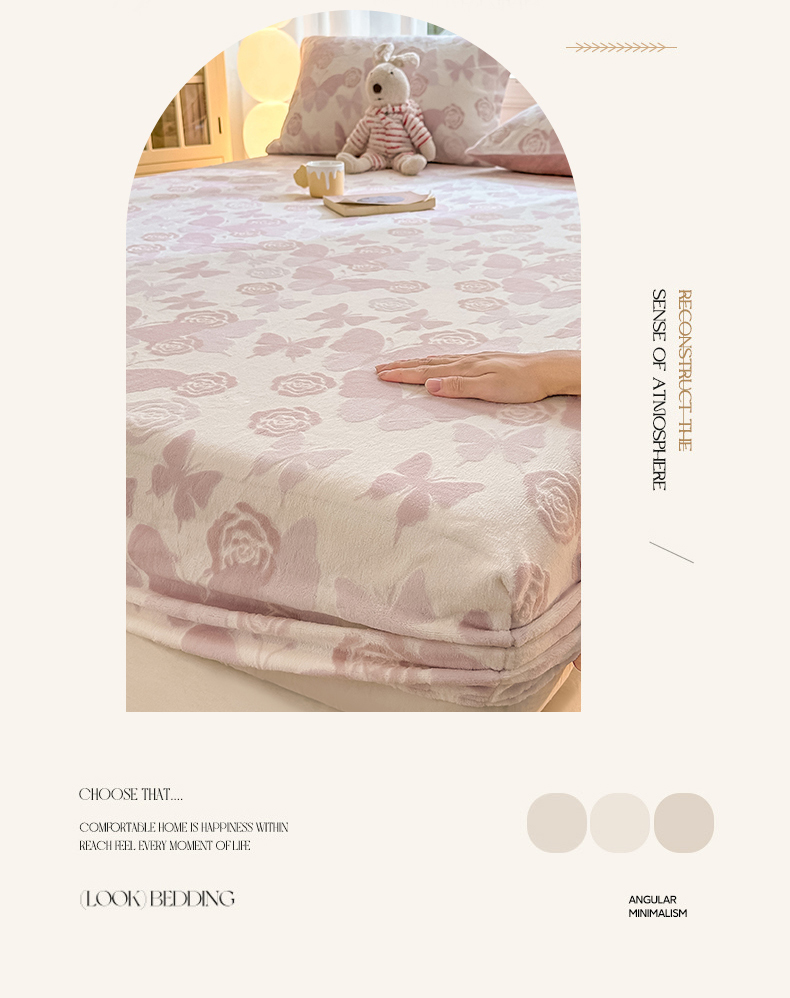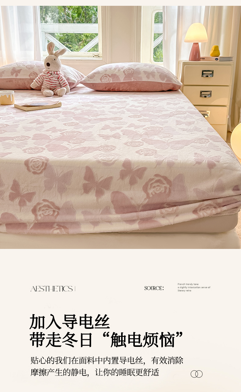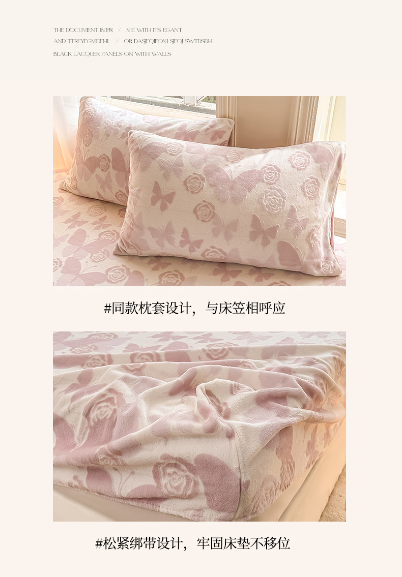 • 91家纺网 家纺一手货源 找家纺 灰鲸 2025新款立体雕花牛奶绒床笠 蝶花-粉