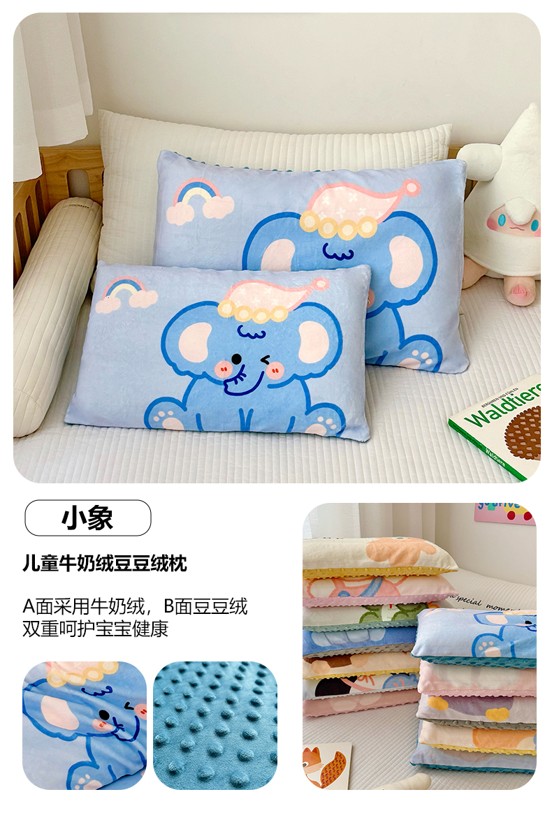 (总)萌宝家纺 2025新款儿童牛奶绒豆豆单品枕套,大象,粉色小狗,灰企鹅,考拉,小狗,小恐龙,小企鹅,小狮子,小兔子,小象,小熊,小猪,组合图仅供参考不可下单