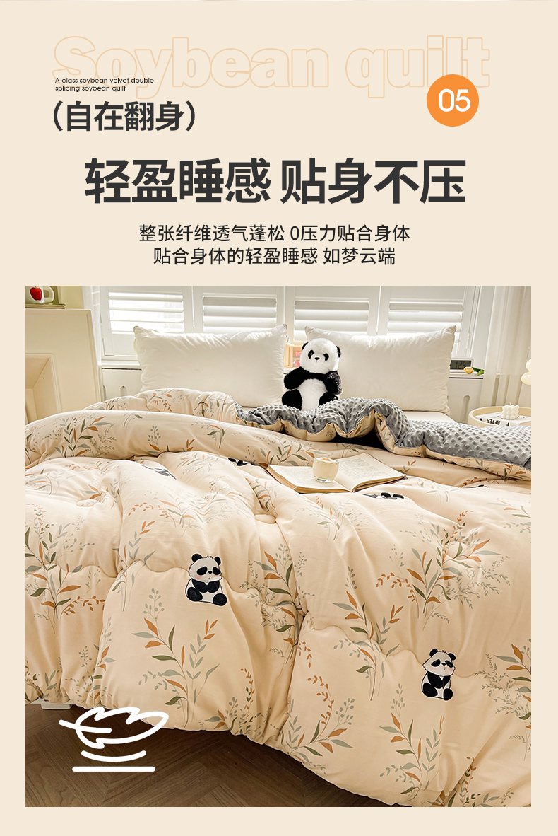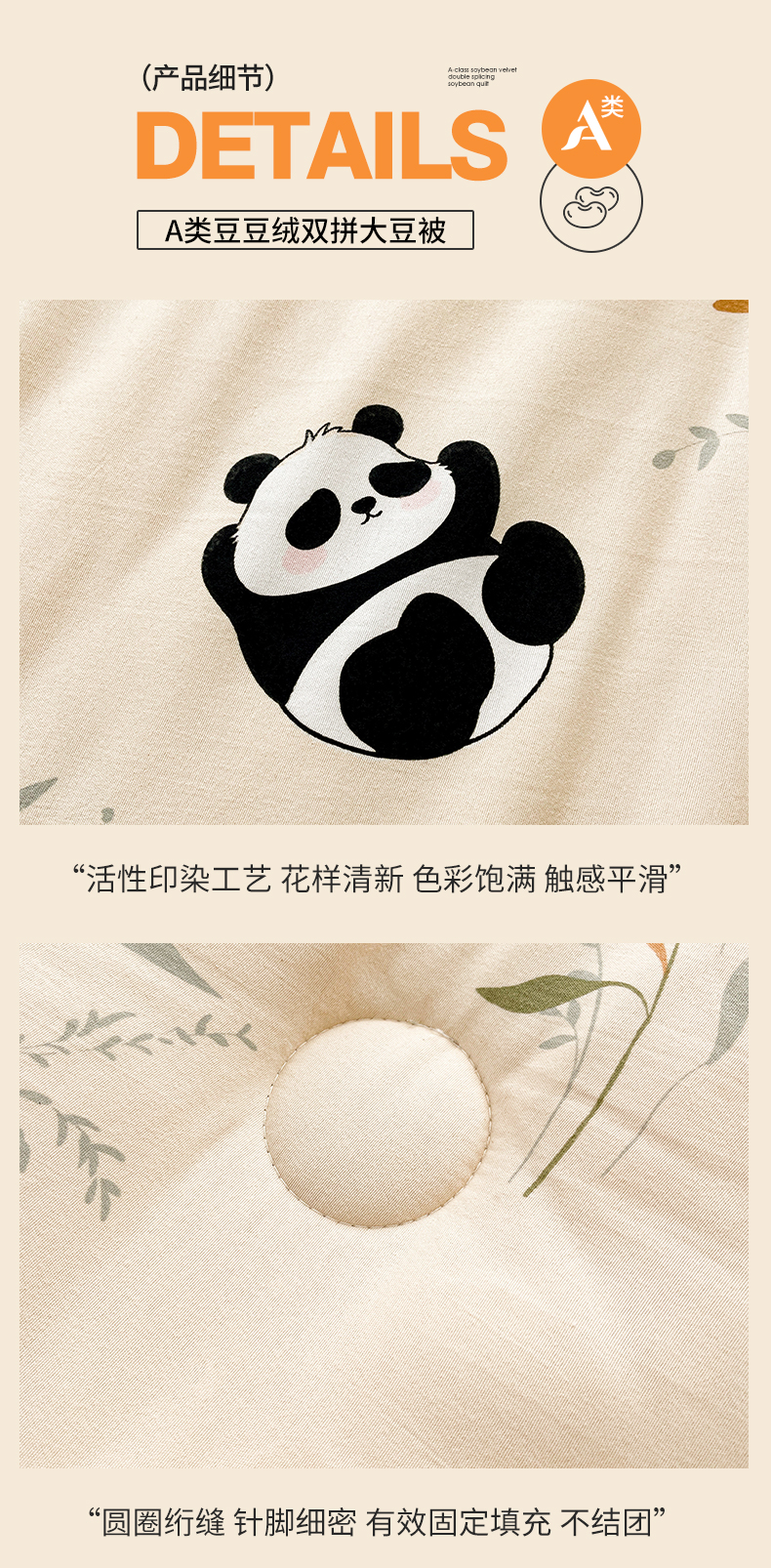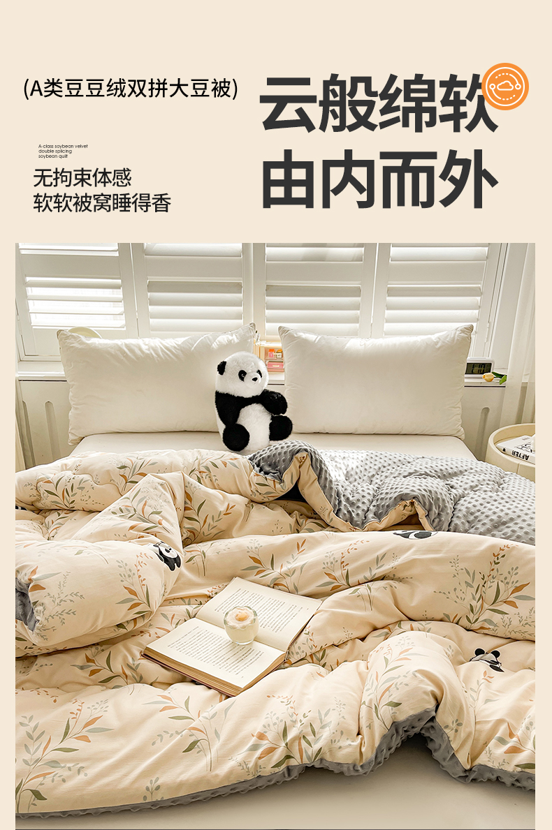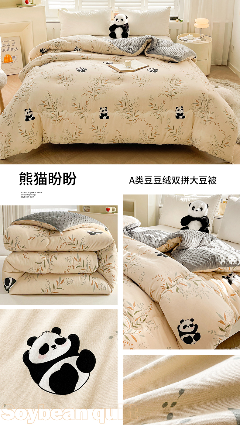 商品名称:鑫缘家纺 2025新款亲肤舒适豆豆绒双面大豆被被子被芯 熊猫盼盼