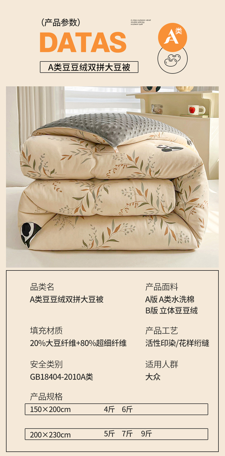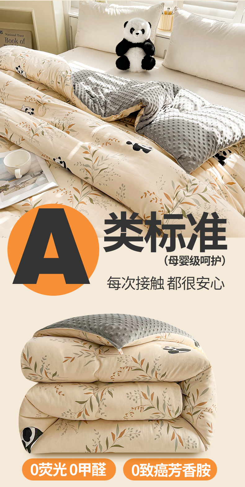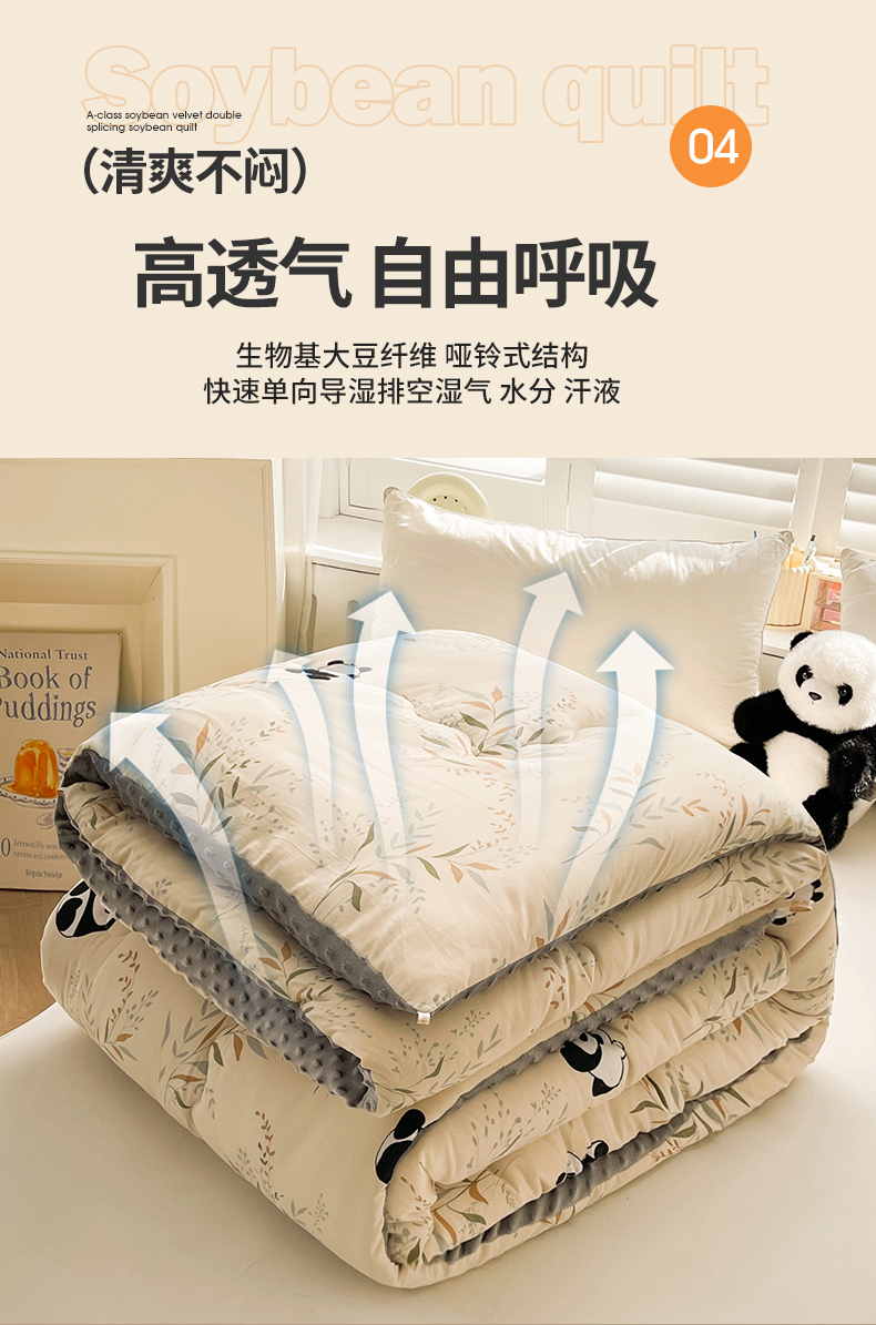 商品名称:鑫缘家纺 2025新款亲肤舒适豆豆绒双面大豆被被子被芯 熊猫盼盼