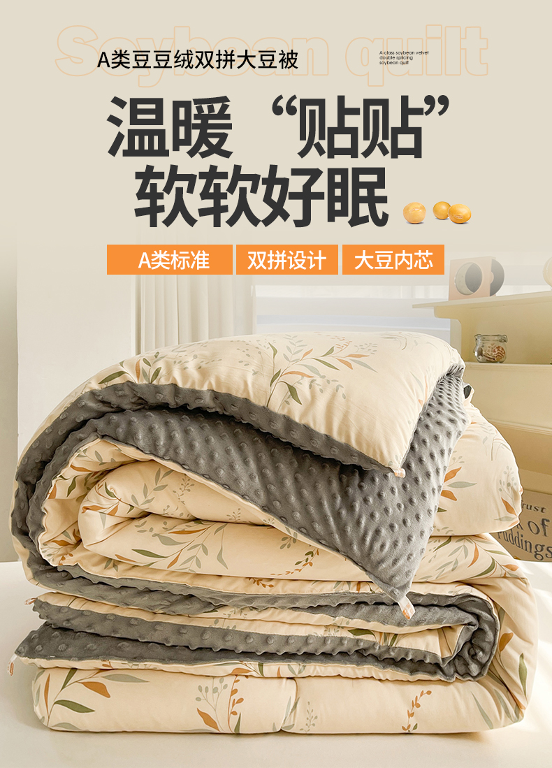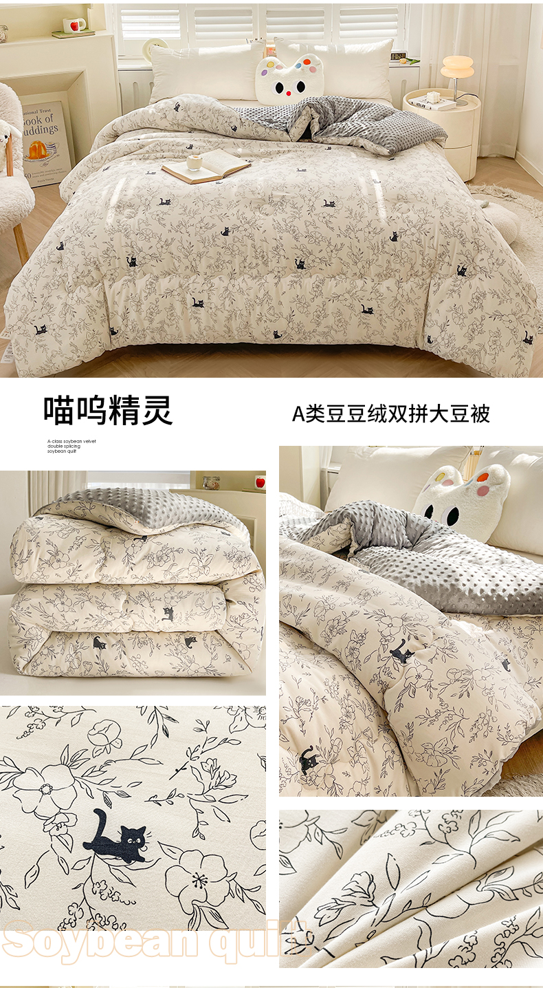(总)鑫缘家纺 2025新款亲肤舒适豆豆绒双面大豆被被子被芯,花园萌兔,可爱南瓜,喵呜精灵,熊猫盼盼