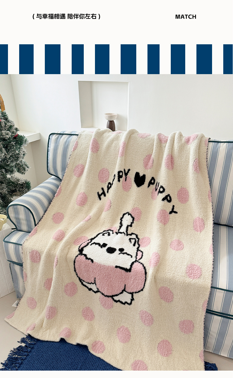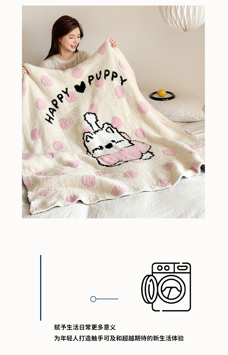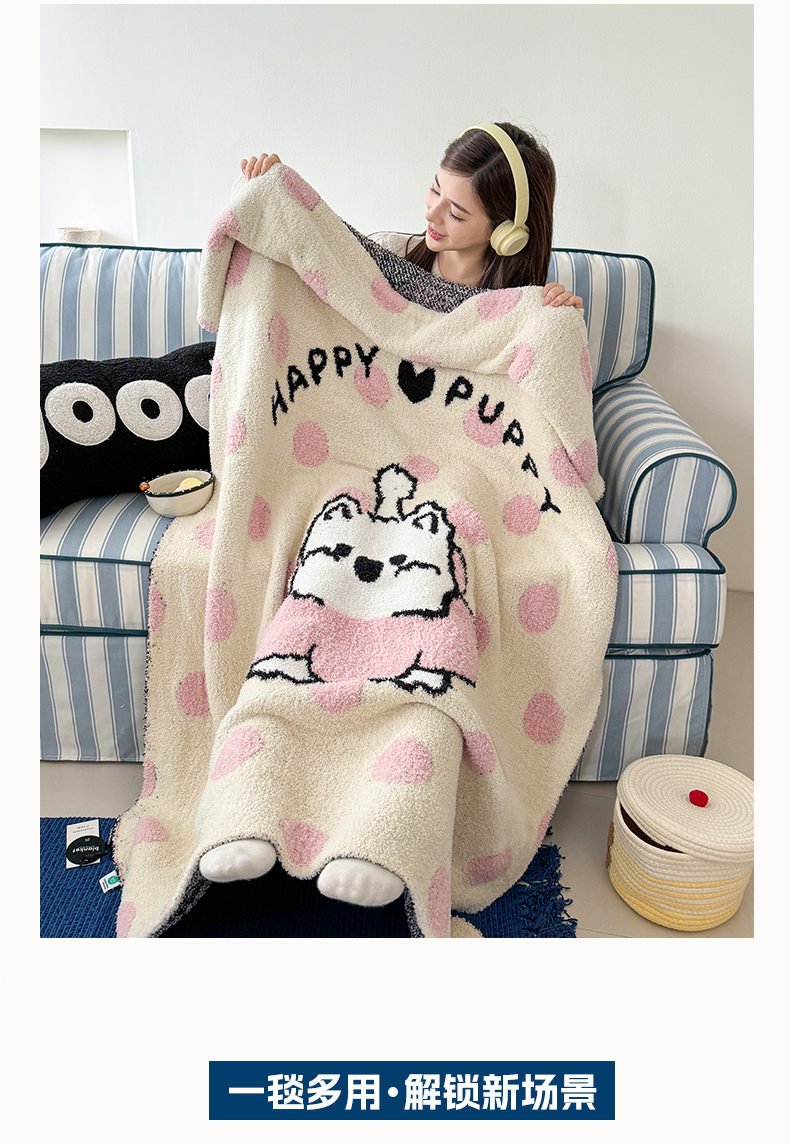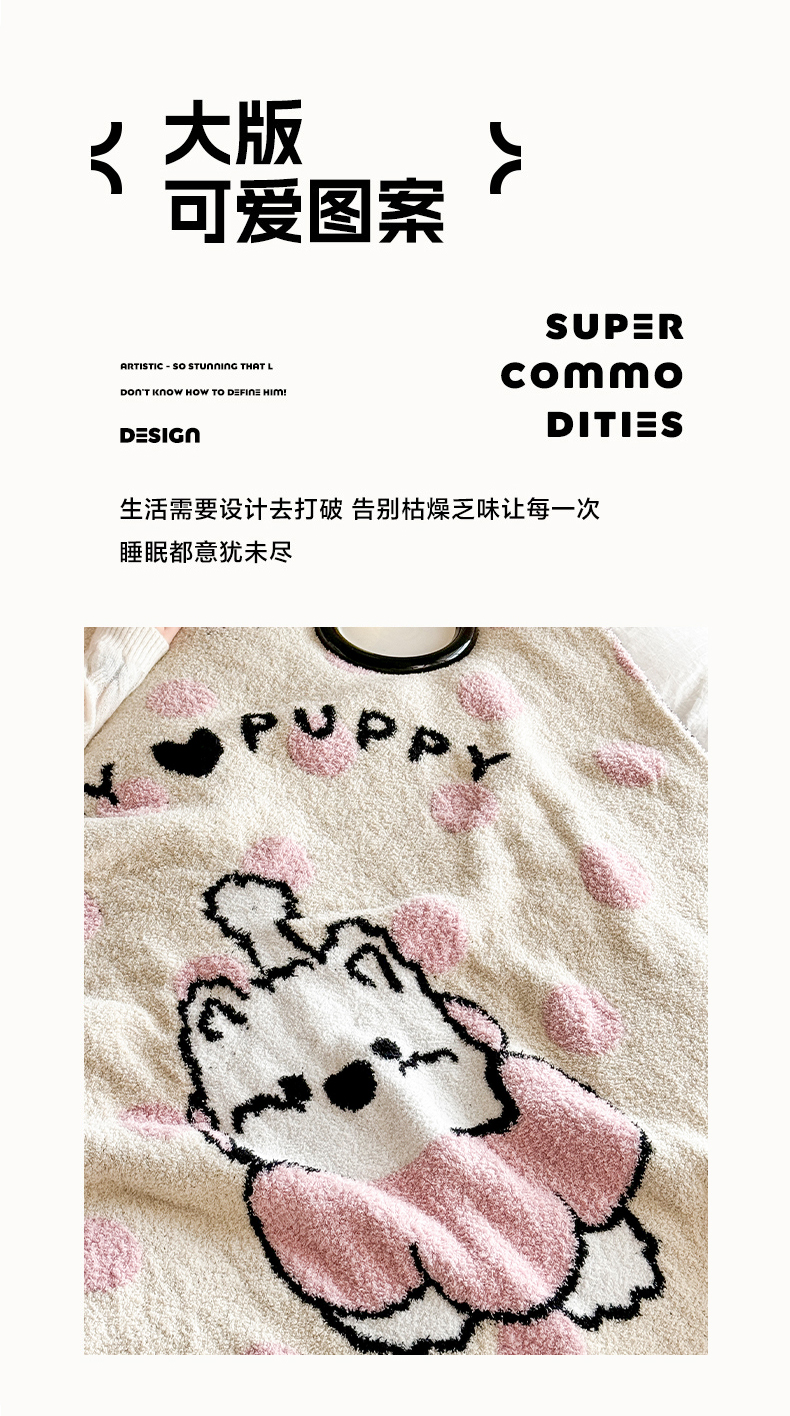 商品名称:丹本家纺 2025新款设计师原创多功能针织半边绒毛毯午休毯盖毯加厚毯子 快乐狗