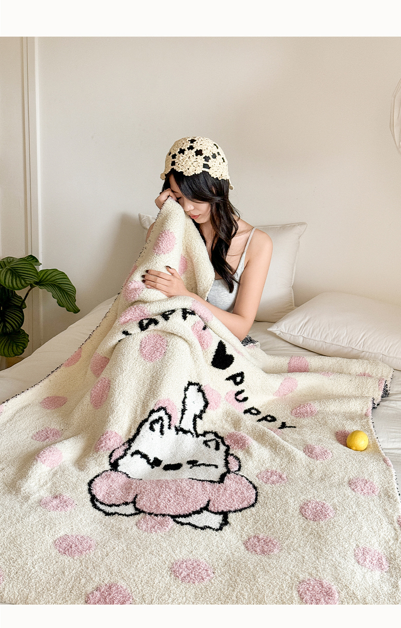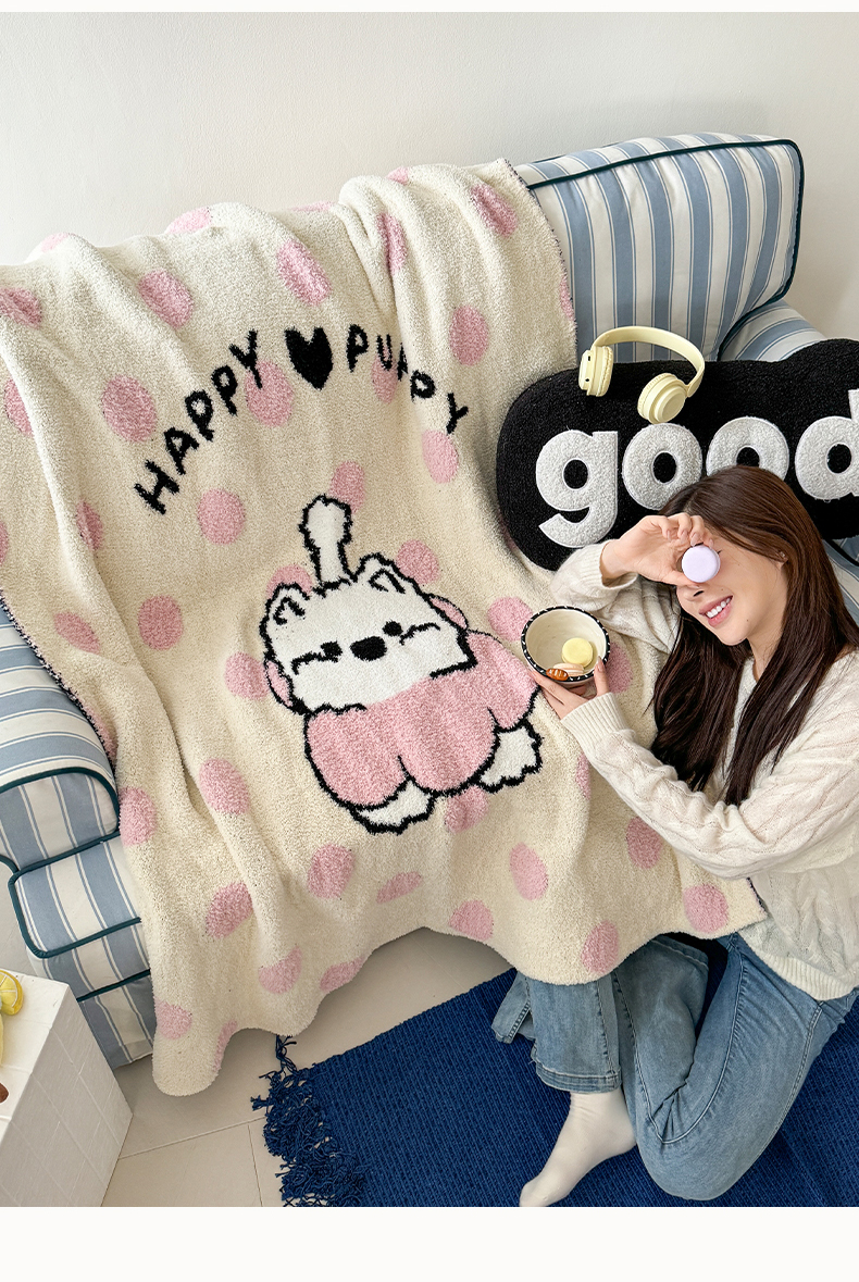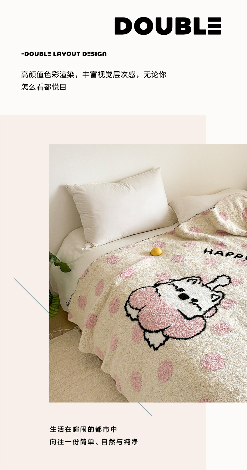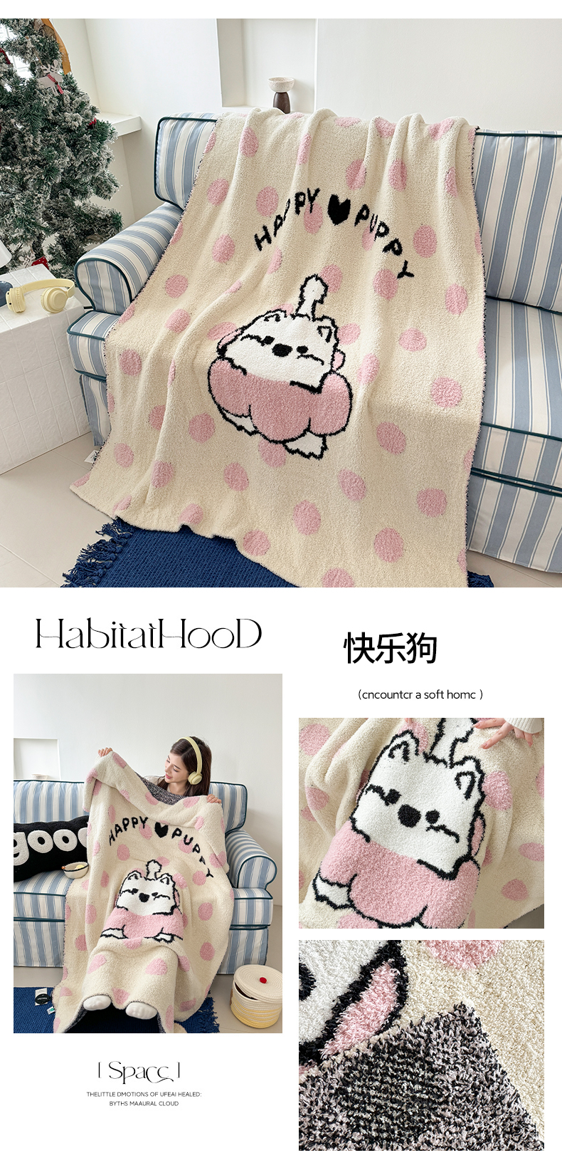 商品名称:丹本家纺 2025新款设计师原创多功能针织半边绒毛毯午休毯盖毯加厚毯子 快乐狗